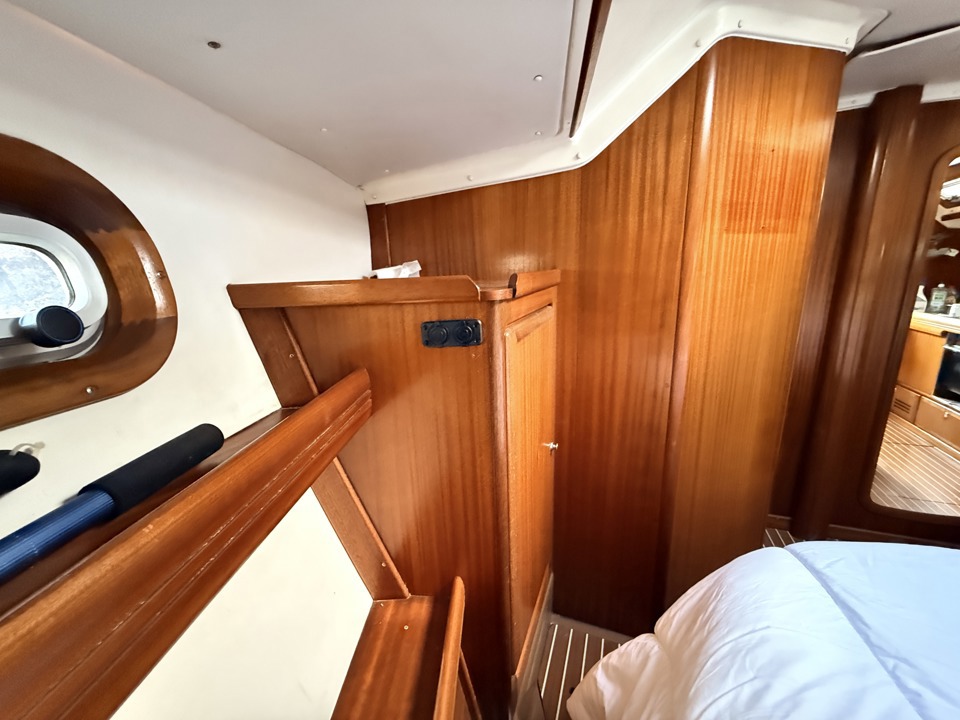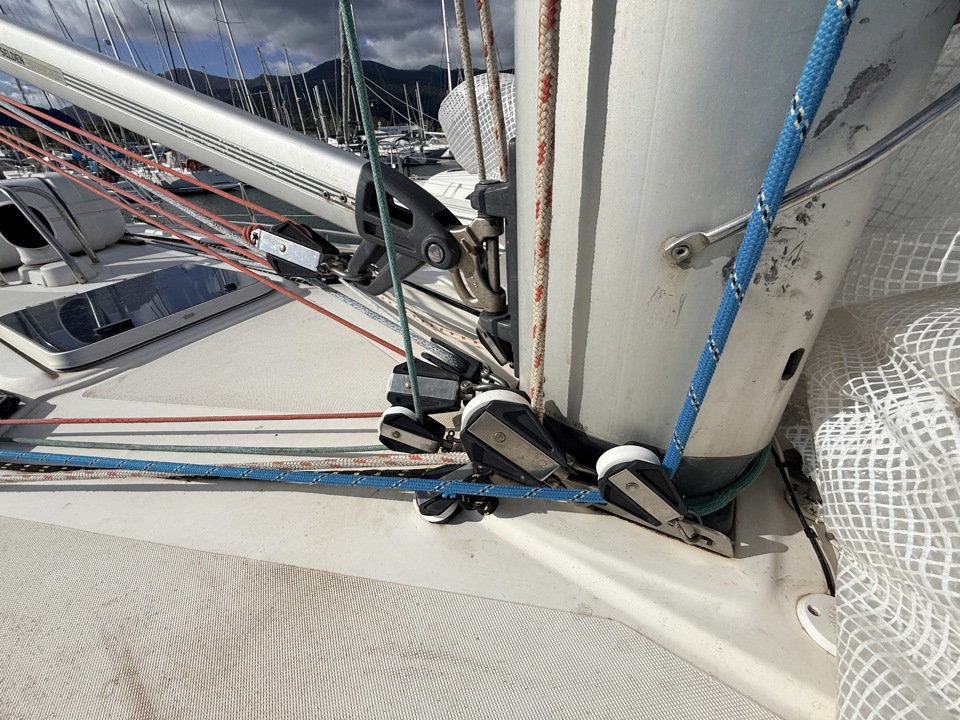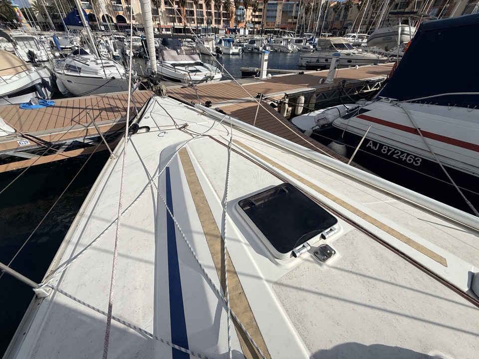 bande anti uvchariot gvenrouleur de génois Furlex 304Sgréement de spilazy jackmanivelle de winchrail gvrenvoi de drissetangon de spi carbone (2027)winch Harken ST (2x56 - 2x44 - 2 x32)génois (2015)spi (env 160 m2)gv full batten avec 3 ris automatiques (2015)tourmentintrinquette sur emmagasineur