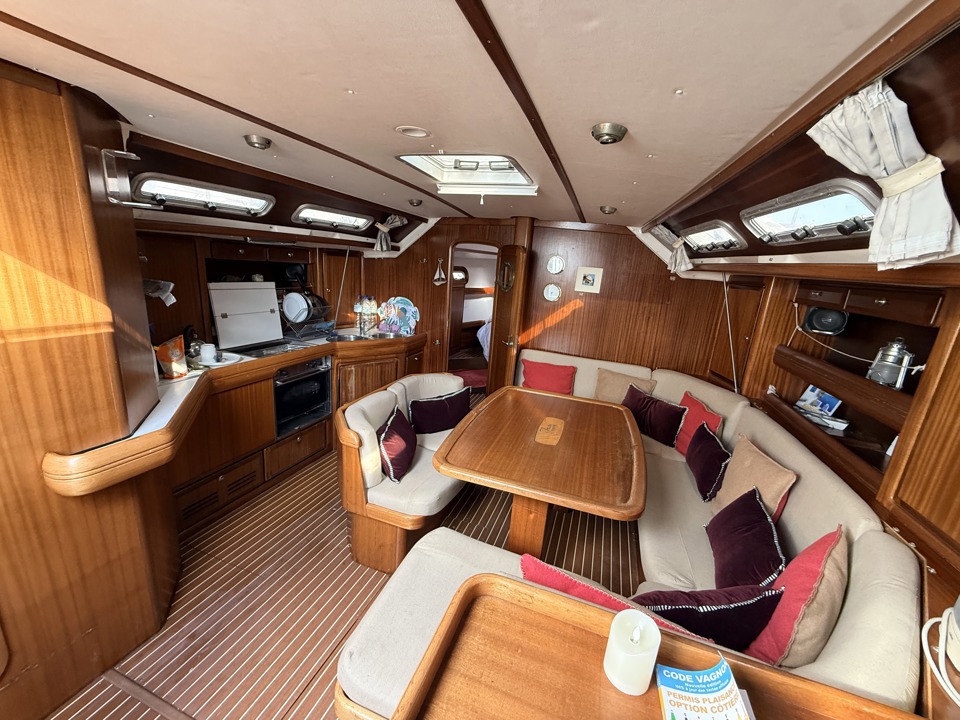 capacité eau noire (80 L)table à carteswc marin (x2)cuisinière 2 feuxfourréfrigerateur (groupe changé en 2018)Radio CD Alpine MP3 + 4HP