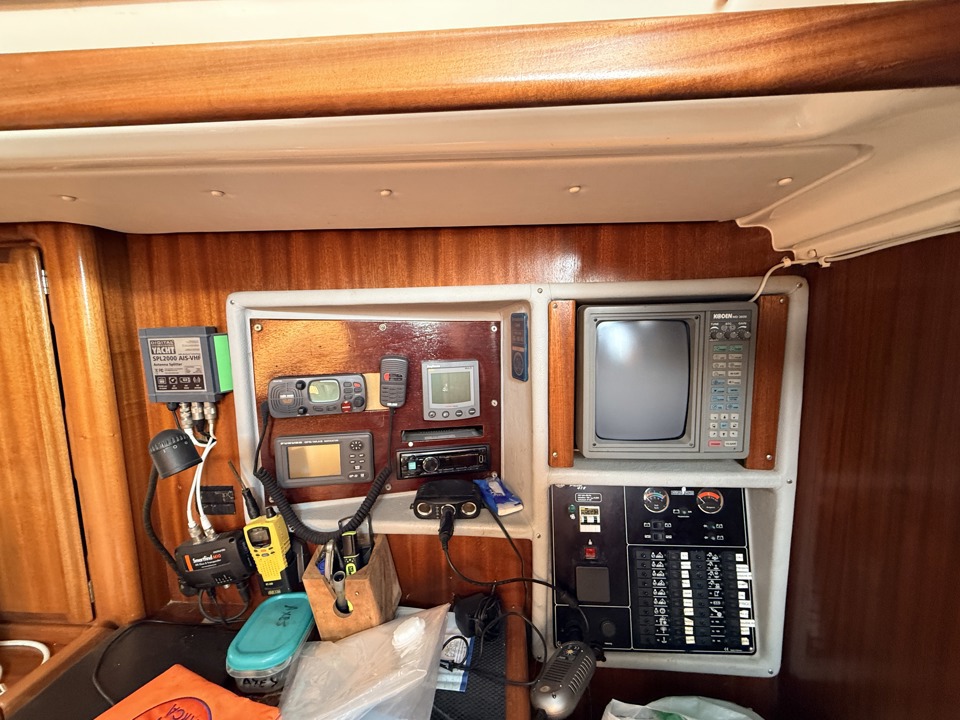 antenne VHFcentrale de navigation Raymarine Multi ST 60compasgirouette/anemometre Autohelm Windgps Furuno GP32loch speedo Autohelm Speedlogiciel de navigation Maxseapilote auto Raymarine ST6002sondeur Autohelm Depthvhf Fixe RO 4700ordinateurAIS Classe B Mc MurdoVHF portable Navicom RT250 & Cobra