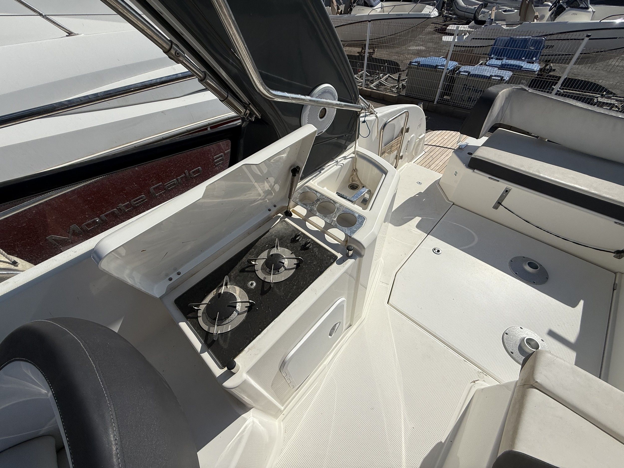 Plateforme de bainEchelle de bainDouchette de cockpitTable de cockpitEclairage de cockpitBain de soleil arrièreCoussins de cockpitTaud de soleilFlapsGuindeau électriquePompe de caleArmement CôtierAntifoulingLumière de cockpitHaut parleur Exterieur X 2Echelle de bain