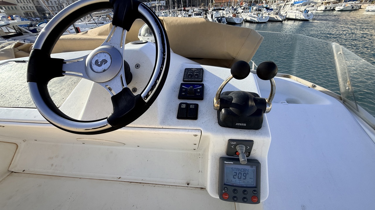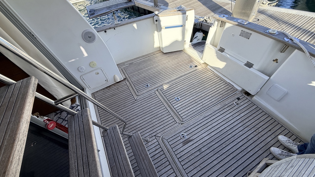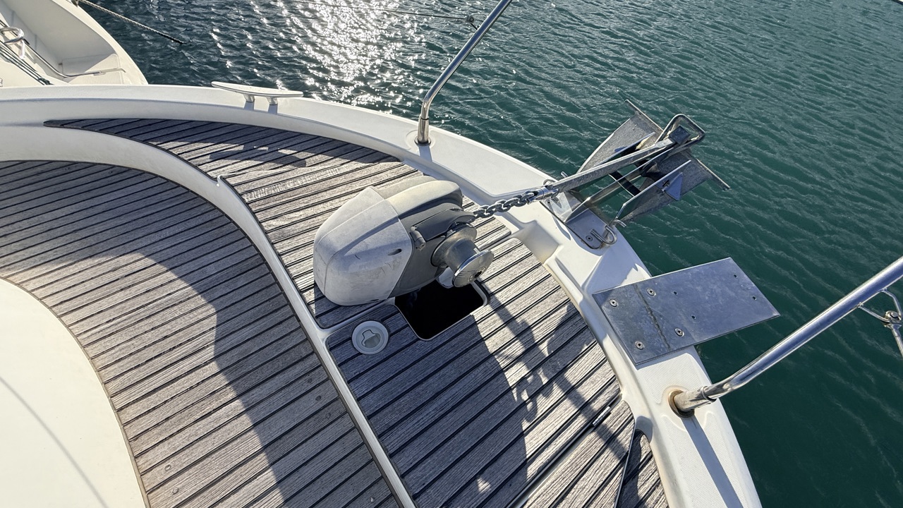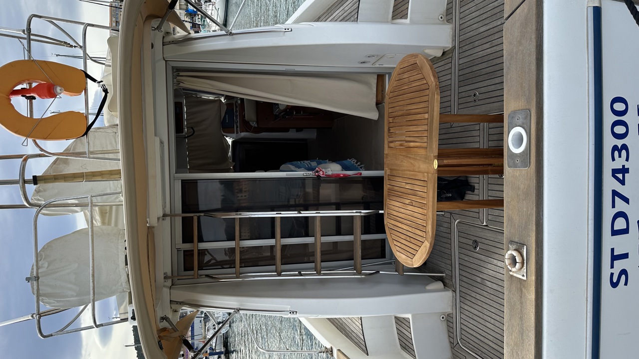 cockpit teckcoussin cockpitdouchette cockpitéclairage cockpittable cockpitbain de soleil avantbiminiéchelle de bainflapsplateforme de bainpont teckpropulseur d'étravetaud de flyfly bridgebain de soleil flyancreguindeau électriquesondeur pêche