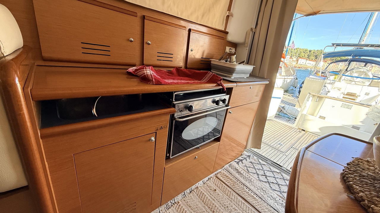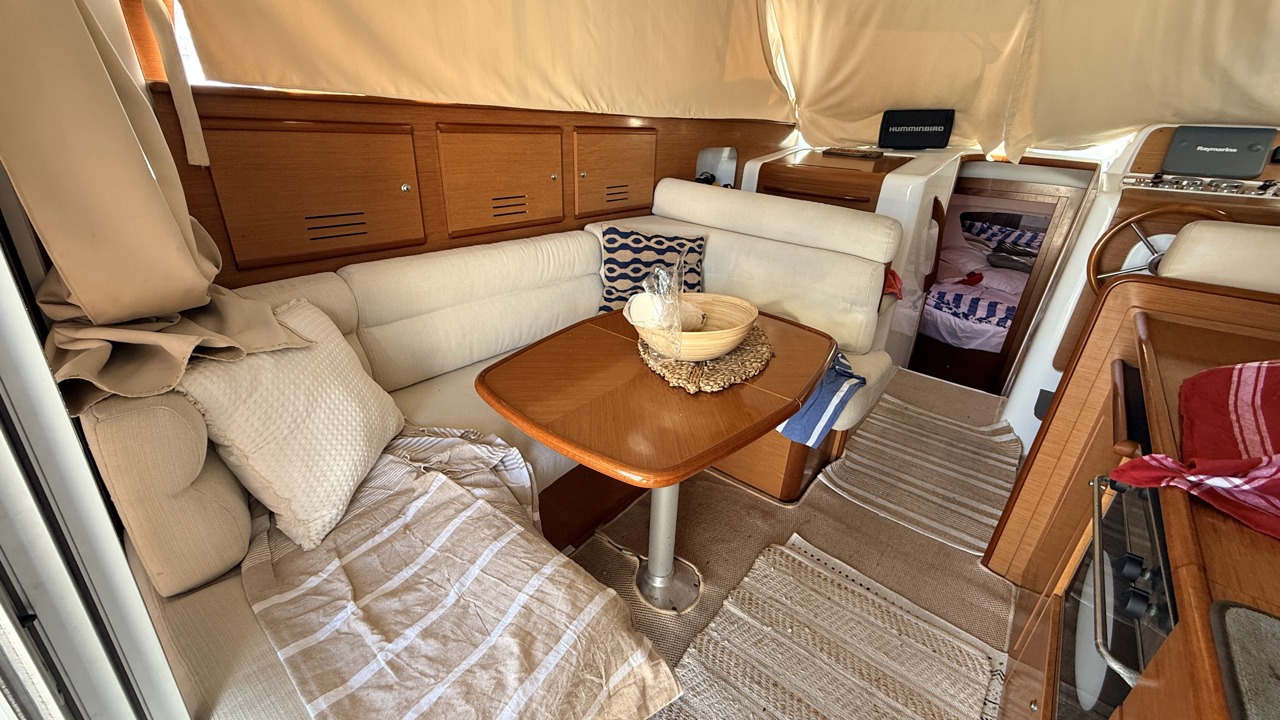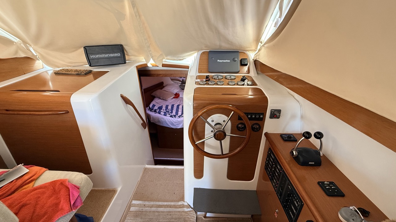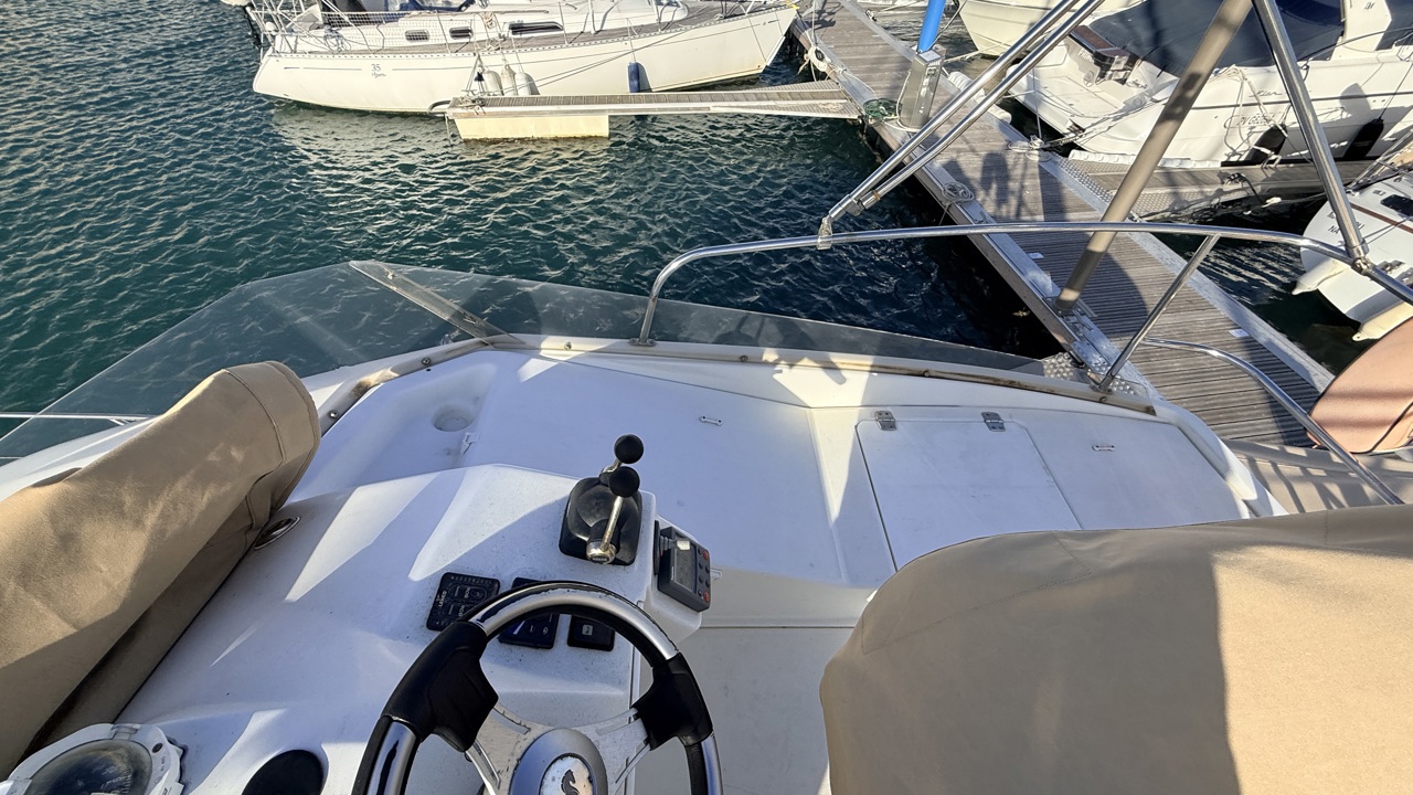 cockpit teckcoussin cockpitdouchette cockpitéclairage cockpittable cockpitbain de soleil avantbiminiéchelle de bainflapsplateforme de bainpont teckpropulseur d'étravetaud de flyfly bridgebain de soleil flyancreguindeau électriquesondeur pêche