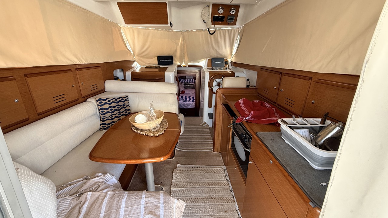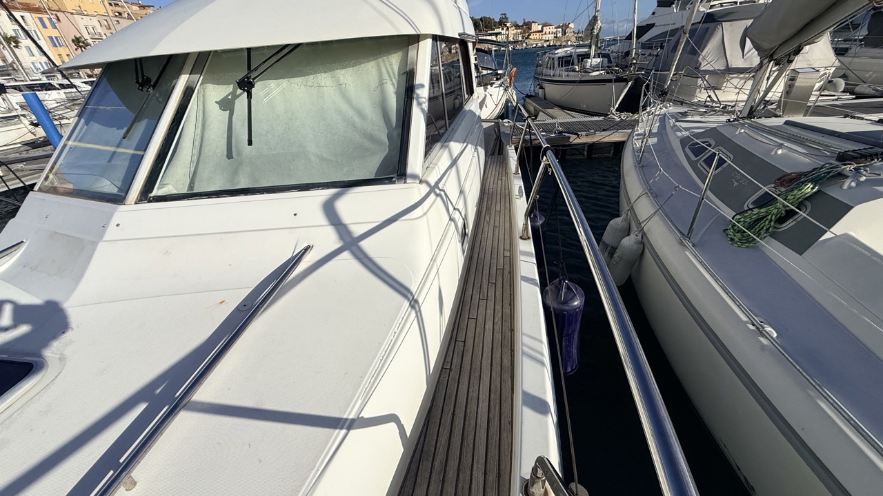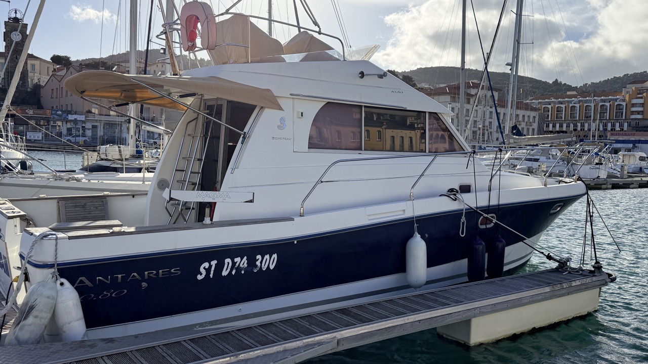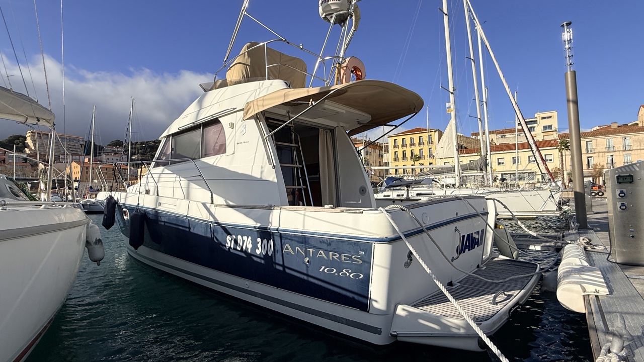 Le Beneteau Antares 10.80 est une vedette à flybridge reconnue pour sa robustesse, son excellent comportement marin et son confort à bord. Motorisée par 2 Volvo Penta D4-260 en ligne d’arbre (572 h), elle offre une navigation fiable, économique et sécurisante. Cette unité dispose de 2 cabines, d’un carré transformable (6 couchages), d’une cuisine équipée et d’un flybridge convivial avec bain de soleil. Très bien équipée (propulseur d’étrave, flaps, pont et cockpit teck, électronique complète avec radar et pilote automatique), elle est idéale pour la croisière familiale, les week-ends et les sorties côtières. Bateau entretenu, prêt à naviguer.