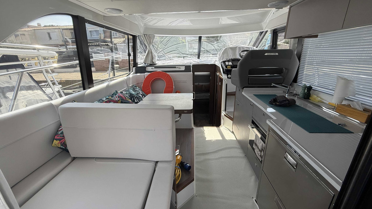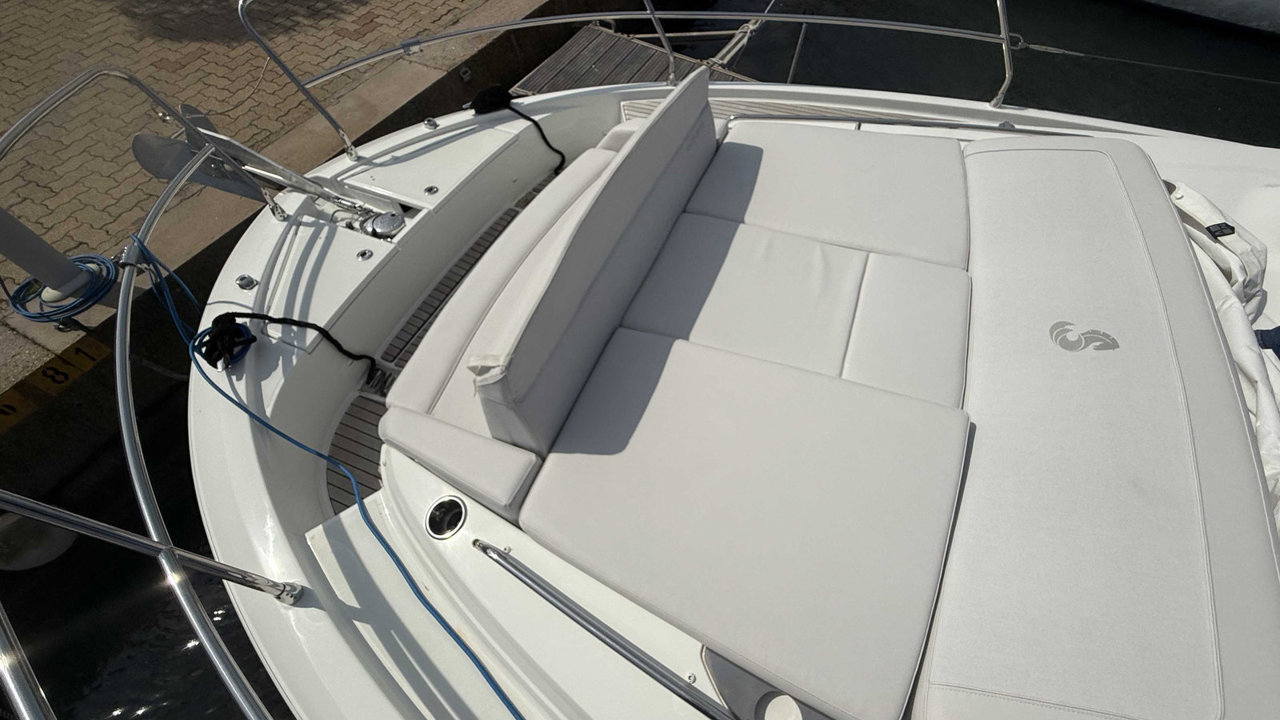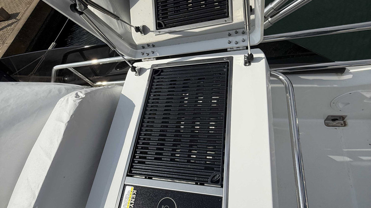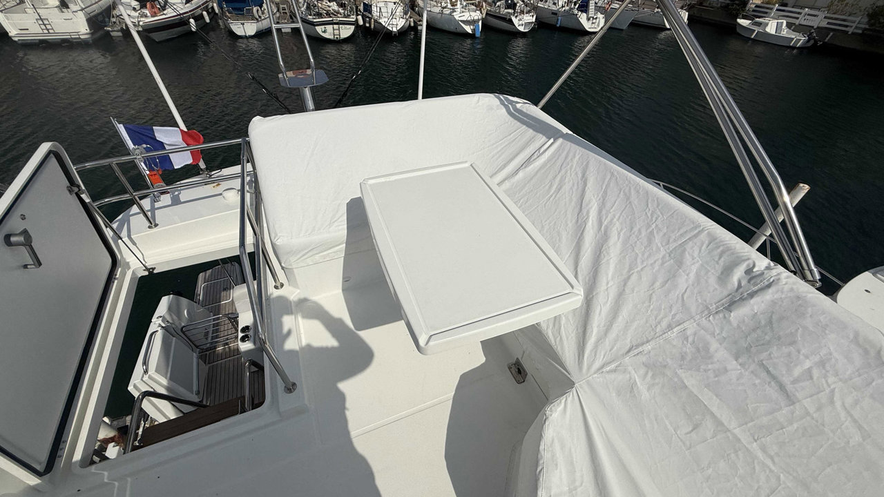 coussin cockpitcockpit teckdouchette cockpittable cockpitéclairage cockpitbain de soleil arrièrebain de soleil avantpropulseur d'étraveBimini au Flyfly bridgetaud fermeture arrièreplateforme de bainéchelle de bainflapsCuisine extérieur au Flybridgeancreguindeau électrique