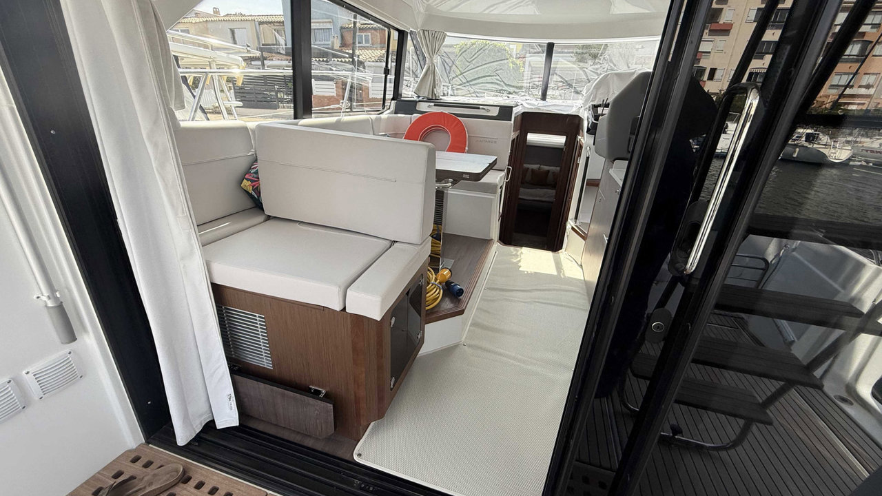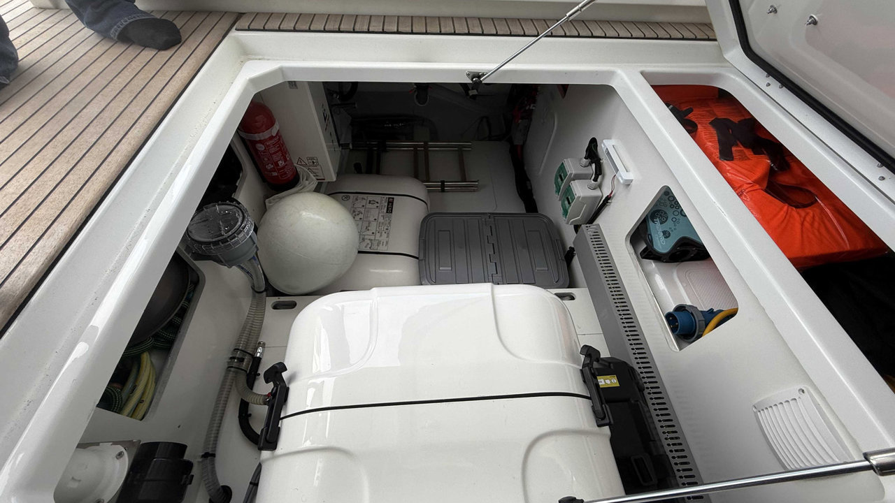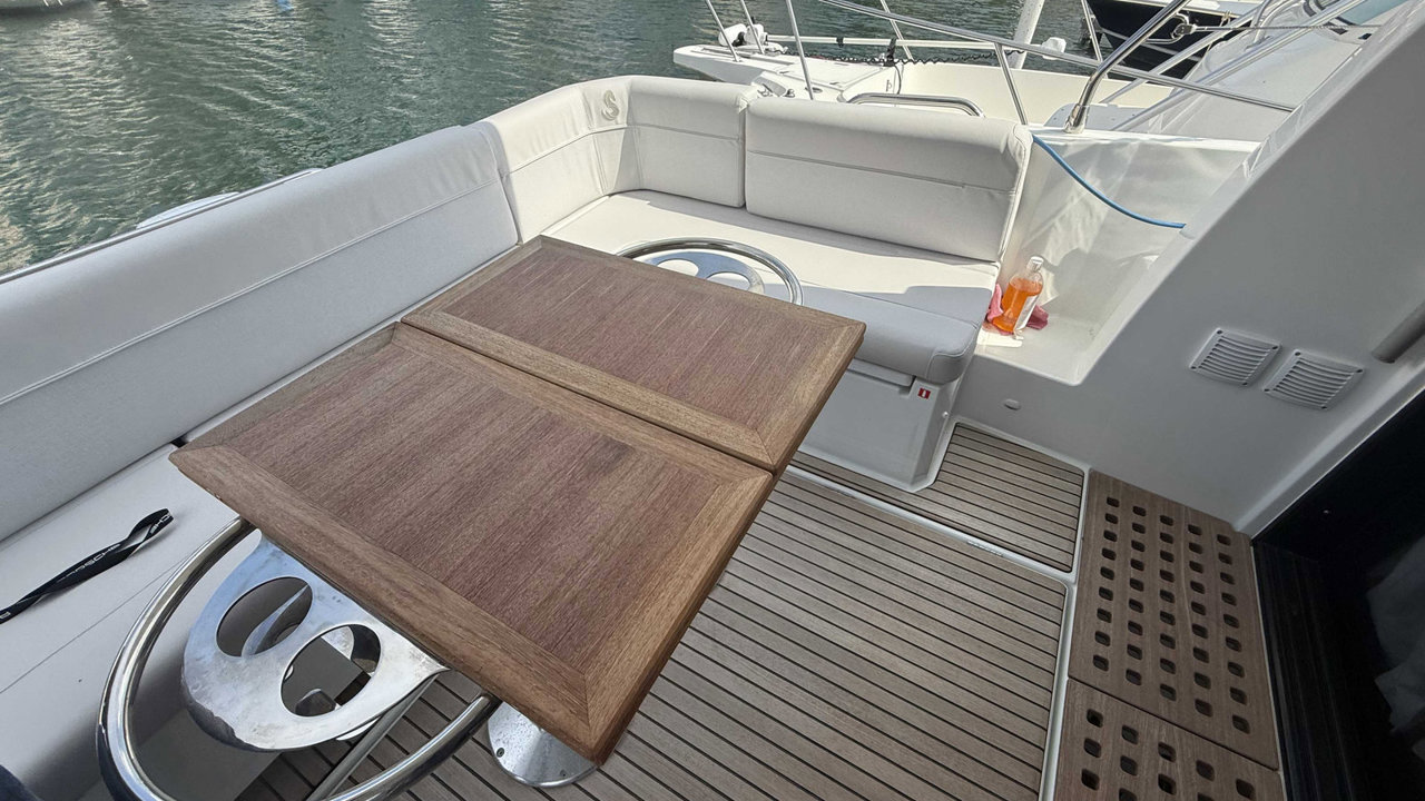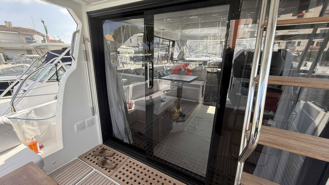 coussin cockpitcockpit teckdouchette cockpittable cockpitéclairage cockpitbain de soleil arrièrebain de soleil avantpropulseur d'étraveBimini au Flyfly bridgetaud fermeture arrièreplateforme de bainéchelle de bainflapsCuisine extérieur au Flybridgeancreguindeau électrique
