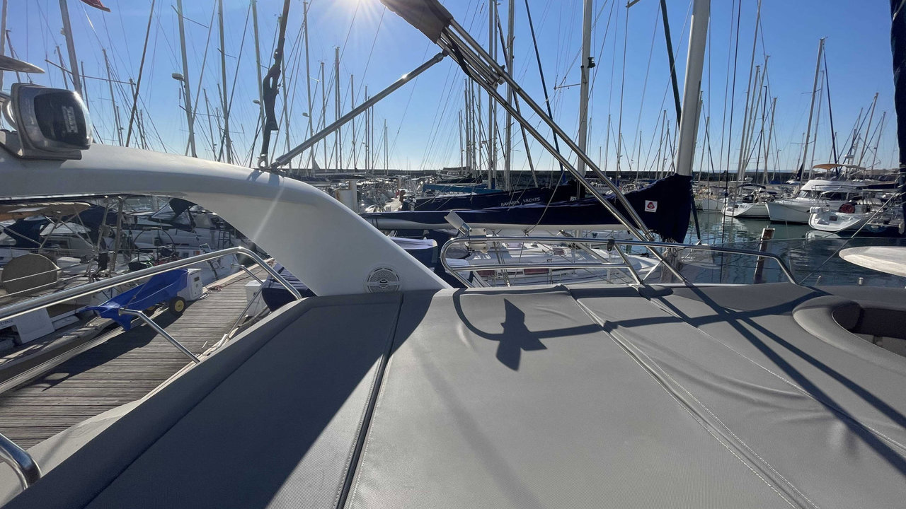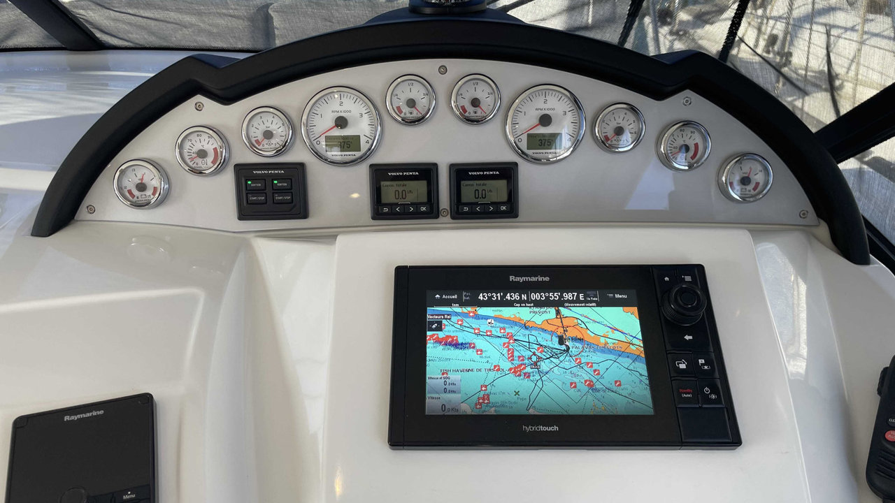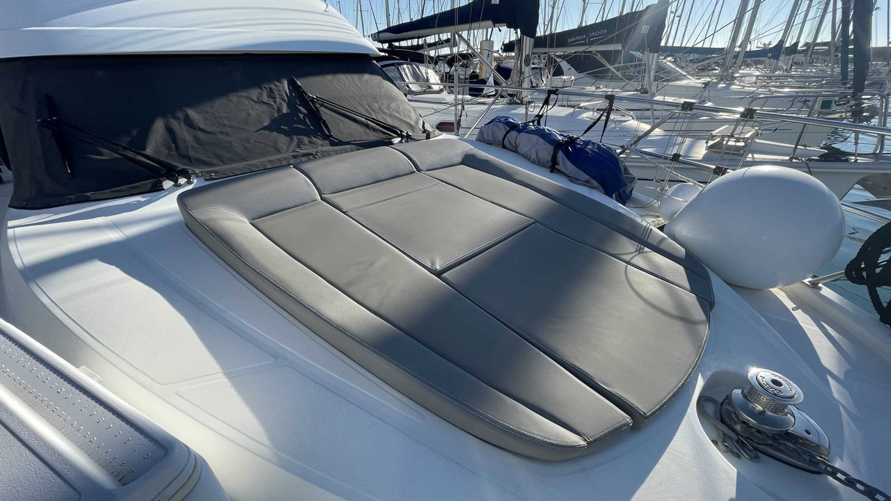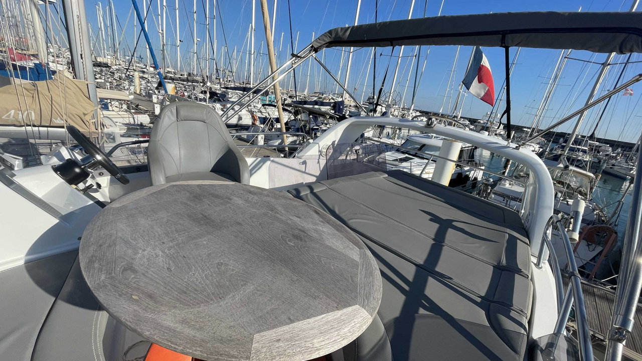 fly bridgepropulseur d'étraveflapsbiminitaud fermeture arrièreplateforme de bainéchelle de bainbain de soleil avantcockpit teckdouchette cockpittable cockpitcoussin cockpitéclairage cockpitancreportes cannescouleurmatériau de constructionantifouling