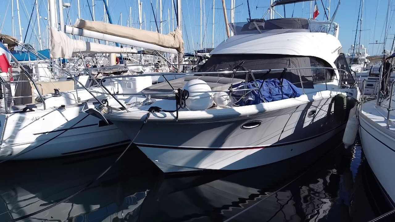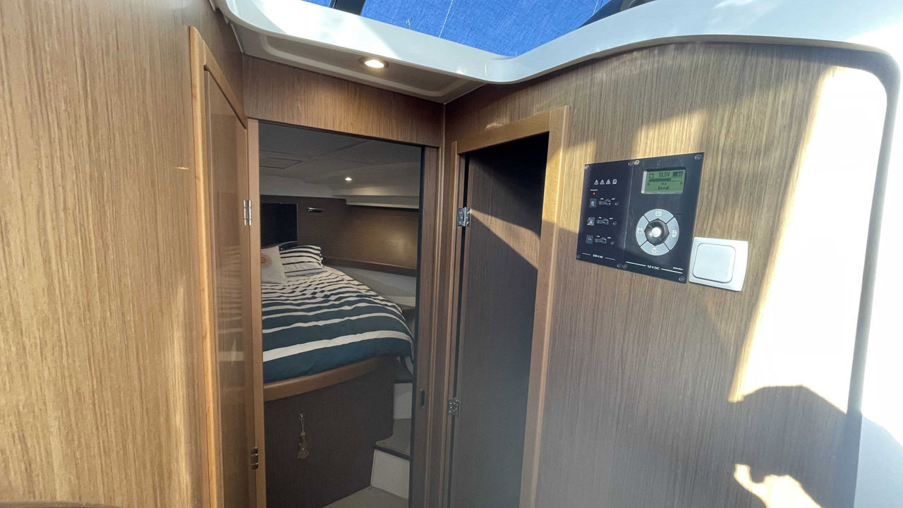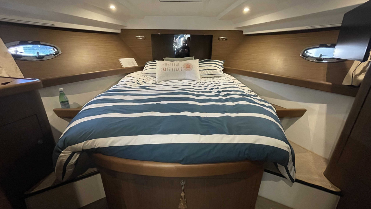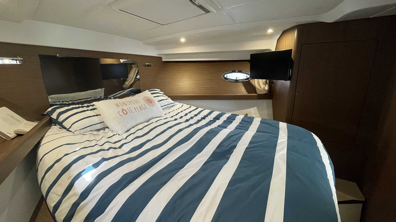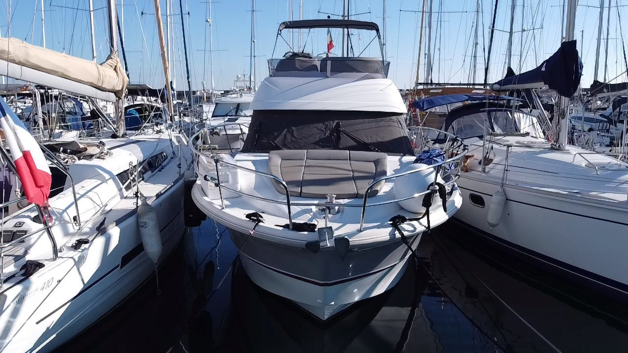L’Antares 36 mise sur le plaisir en navigation et au mouillage et dispose d’un flybridge généreux offrant un second poste de conduite, un véritable salon et un bain de soleil. Les aménagements intérieurs sont pensés pour être conviviaux et très fonctionnels, pour profiter d’un programme de croisière en famille en toute sécurité. Sa coque évasée fend confortablement tous les types de mer avec une stabilité remarquable.Marque Beneteau