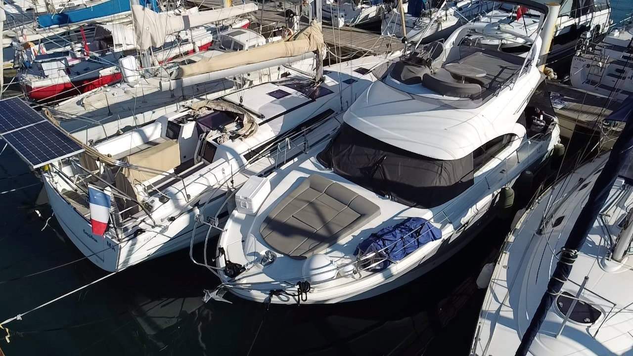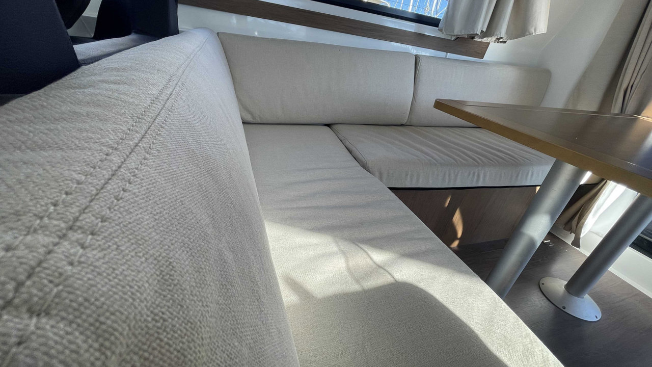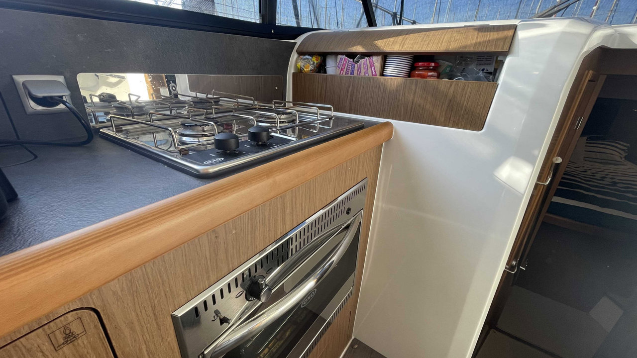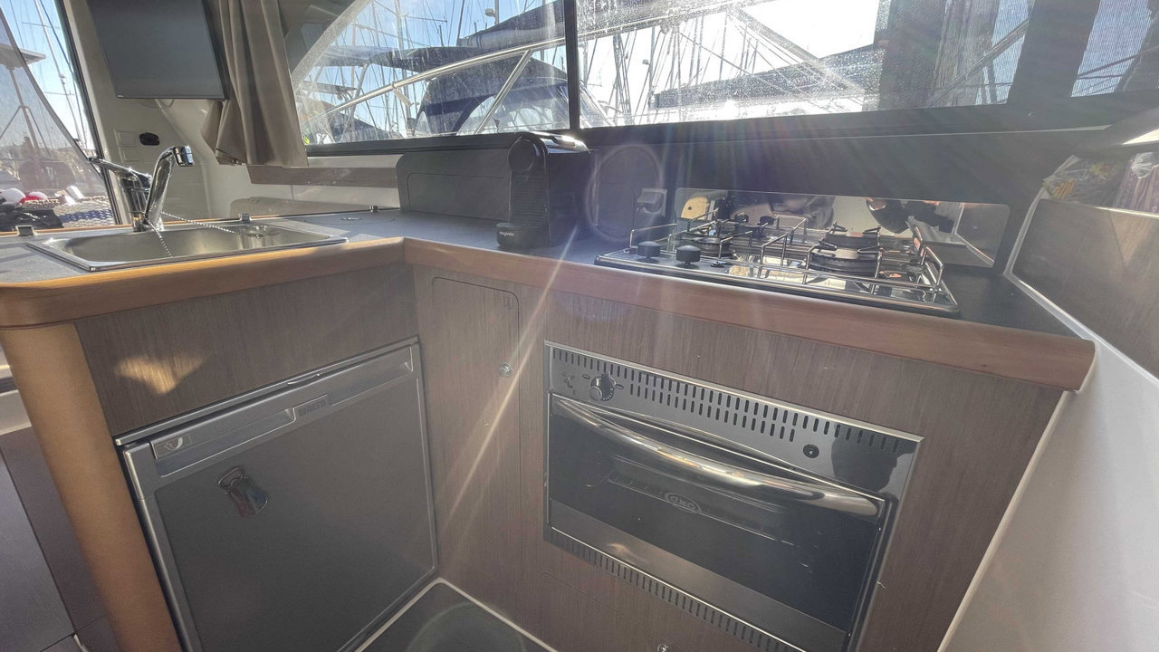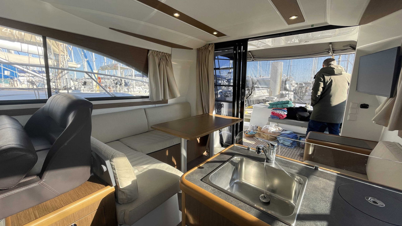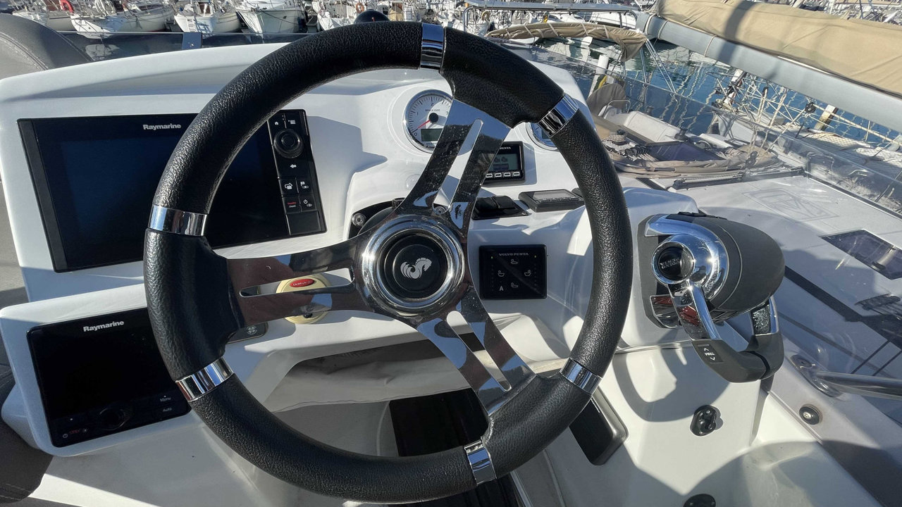 L’Antares 36 mise sur le plaisir en navigation et au mouillage et dispose d’un flybridge généreux offrant un second poste de conduite, un véritable salon et un bain de soleil. Les aménagements intérieurs sont pensés pour être conviviaux et très fonctionnels, pour profiter d’un programme de croisière en famille en toute sécurité. Sa coque évasée fend confortablement tous les types de mer avec une stabilité remarquable.Marque Beneteau