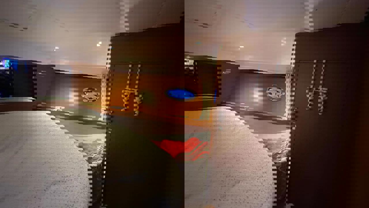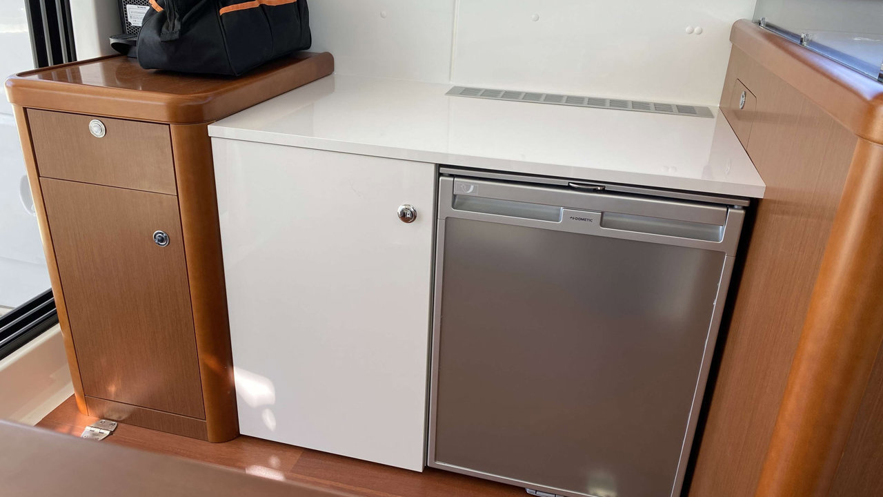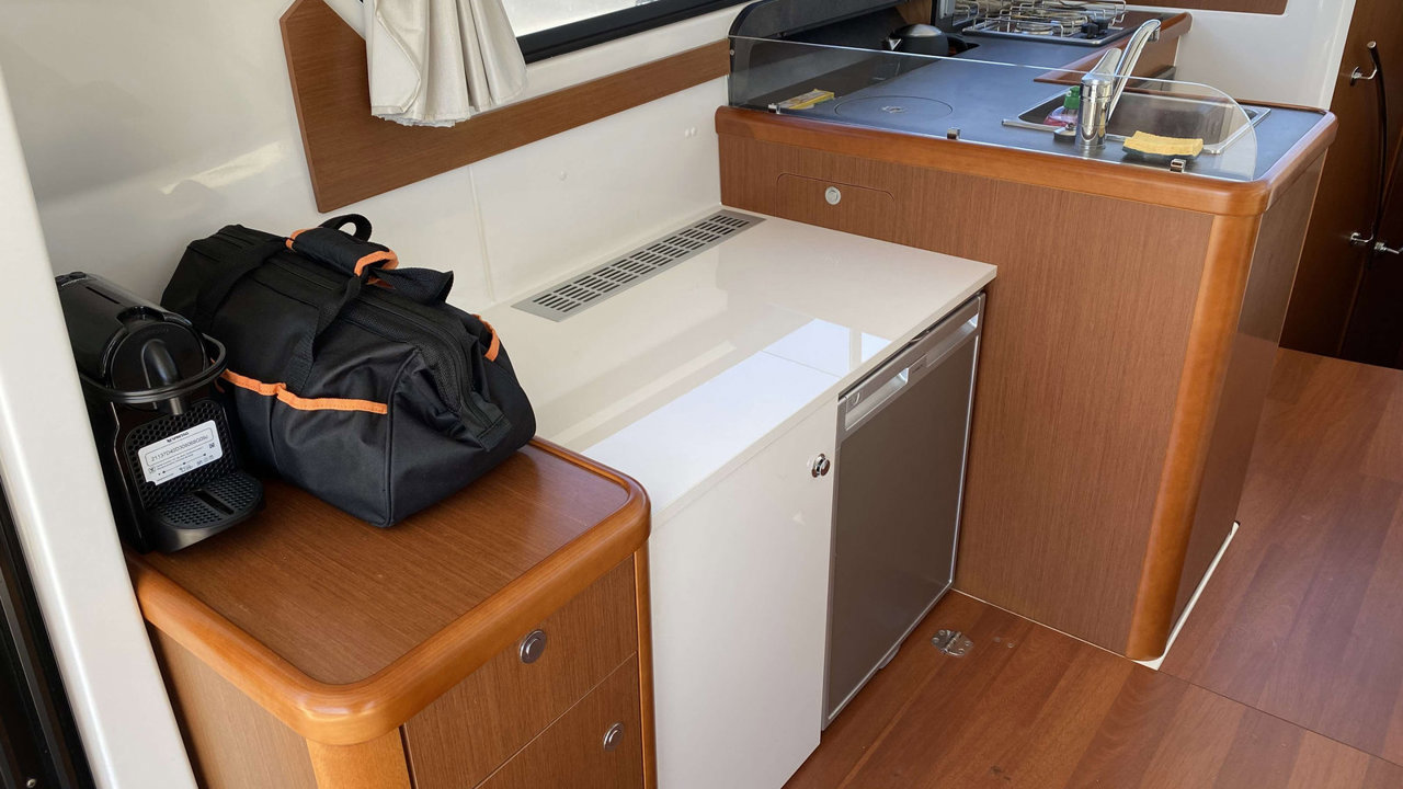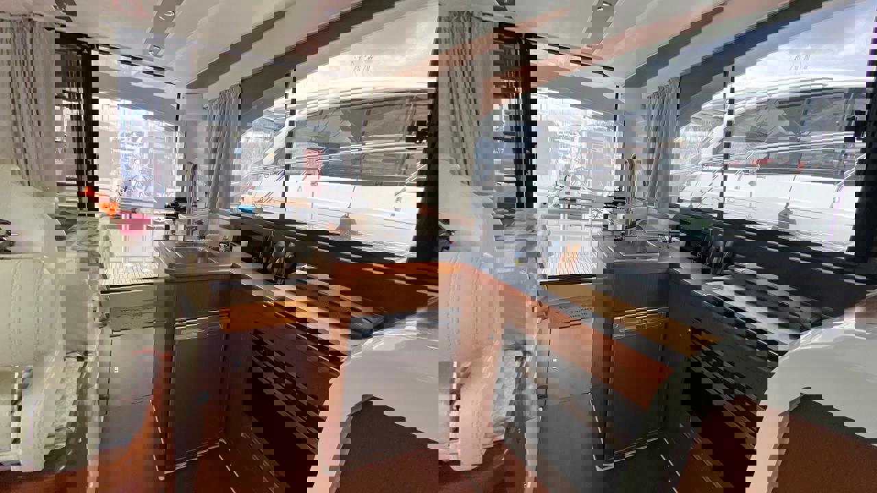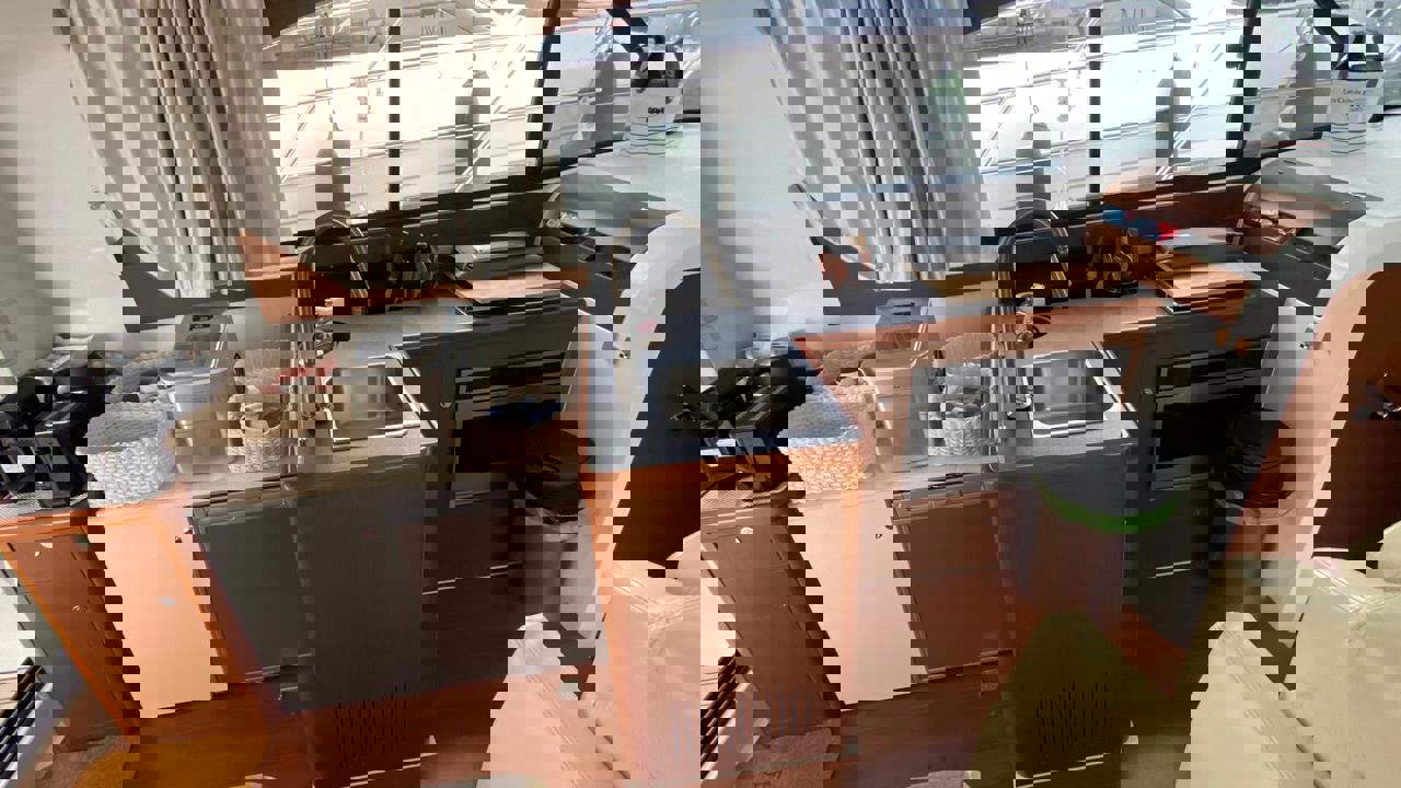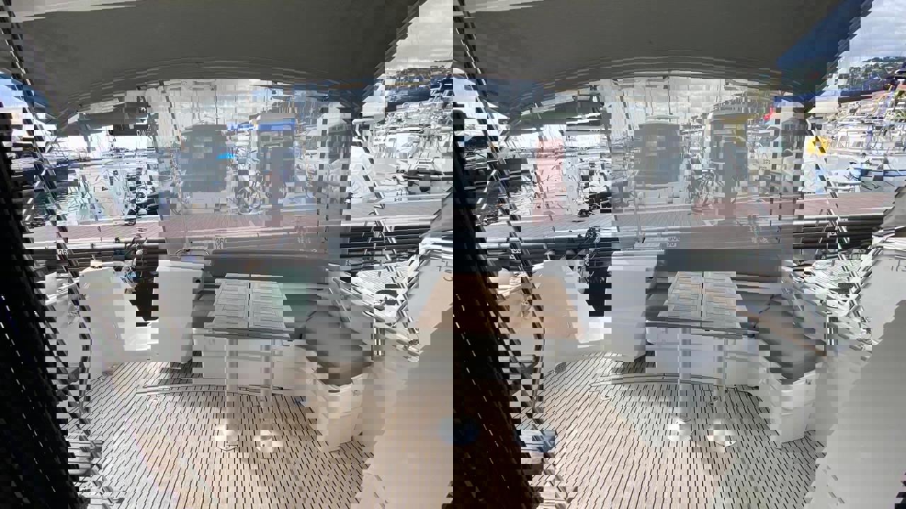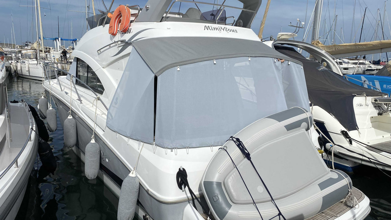fly bridgepont teckpropulseur d'étravebiminitaud fermeture arrièretaud de flyplateforme de bainéchelle de bainbain de soleil avantbain de soleil arrièrecockpit teckdouchette cockpittable cockpitcoussin cockpitéclairage cockpitancreguindeau électriquecapacité eau chaudecapacité eau froidepompe de calecouleurmatérieau constructionantifoulingheures bateauannexemoteur annexeréfrigérateurcuisinièrefourclimatisationchauffe-eauradio-cdhi-fidéssalinisaateurWC électriquepilote autocentrale de navigationcompasantenneVHFGPStraceursondeurrépetiteurchargeuralternateurgroupe électrogènebatteriesbatteries de servicecircuit 220Vcircuit 12Vprise de quai