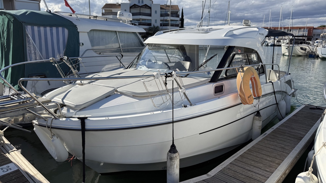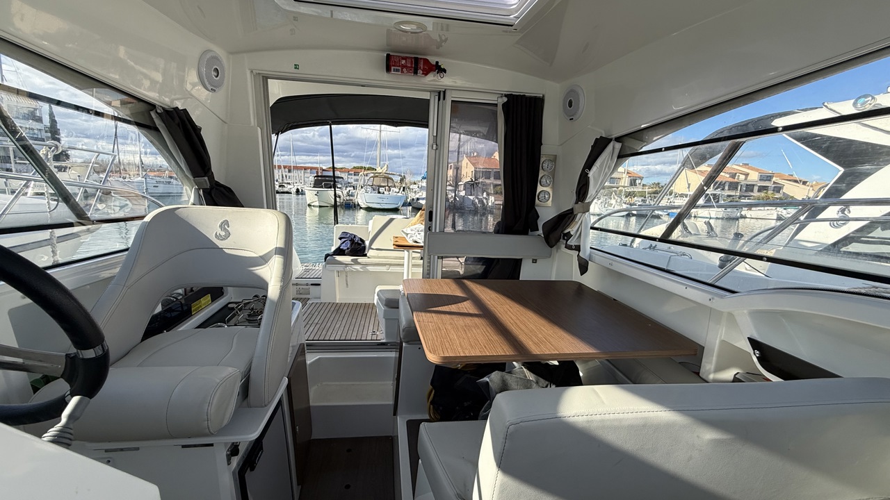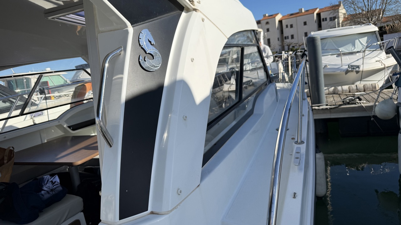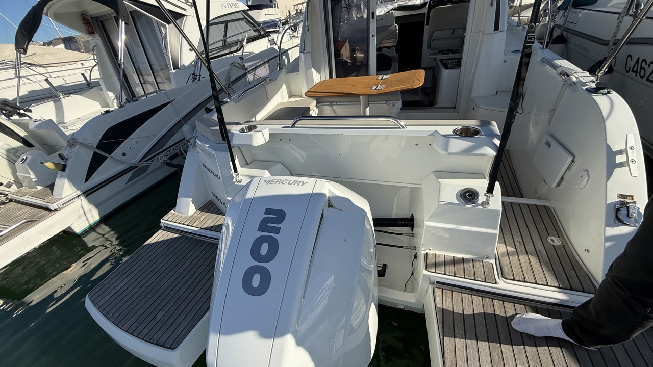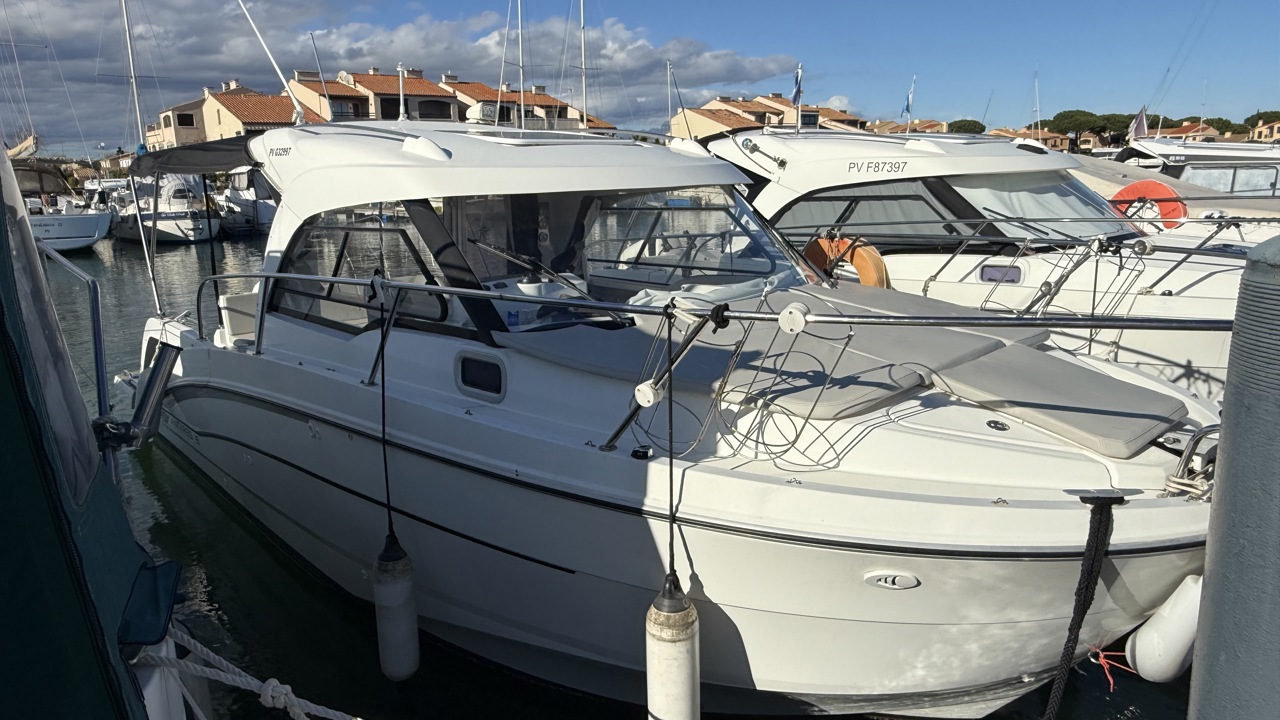 Esprit Bateau vous propose à la vente ce Beneteau Antares 8 OB de 2021, un modèle reconnu pour sa polyvalence, son confort à bord et sa sécurité en navigation. Idéal aussi bien pour les sorties à la journée que pour de belles escapades côtières en famille ou entre amis. Motorisé par un Mercury Verado 200 ch hors-bord, ce bateau offre une navigation souple et performante, avec une motorisation fiable et éprouvée totalisant seulement 159 heures de fonctionnement. Une configuration parfaite pour naviguer sereinement et profiter pleinement de chaque sortie. À bord, l’Antares 8 se distingue par ses aménagements intelligents et son habitabilité remarquable pour sa taille. La timonerie lumineuse donne accès à une cabine confortable, permettant de passer la nuit à bord, ainsi qu’à une salle d’eau équipée d’un WC marin, un vrai atout pour les sorties prolongées. Les espaces extérieurs sont pensés pour la détente et la convivialité : cockpit en teck, banquettes confortables, table de cockpit, bains de soleil avant et arrière, plateforme de bain avec échelle et douchette de cockpit. Le bimini et le taud de camping assurent une protection efficace pour profiter du bateau en toutes conditions. Côté équipement, ce Beneteau Antares 8 est particulièrement complet : propulseur d’étrave, flaps, GPS/traceur, sondeur, VHF, guindeau électrique, circuits 12V et 220V, prise de quai, chargeur, réfrigérateur et réchaud. Un bateau prêt à prendre la mer, sans compromis.Marque Beneteau