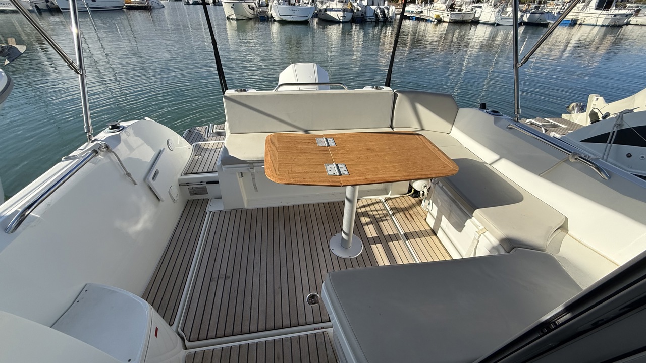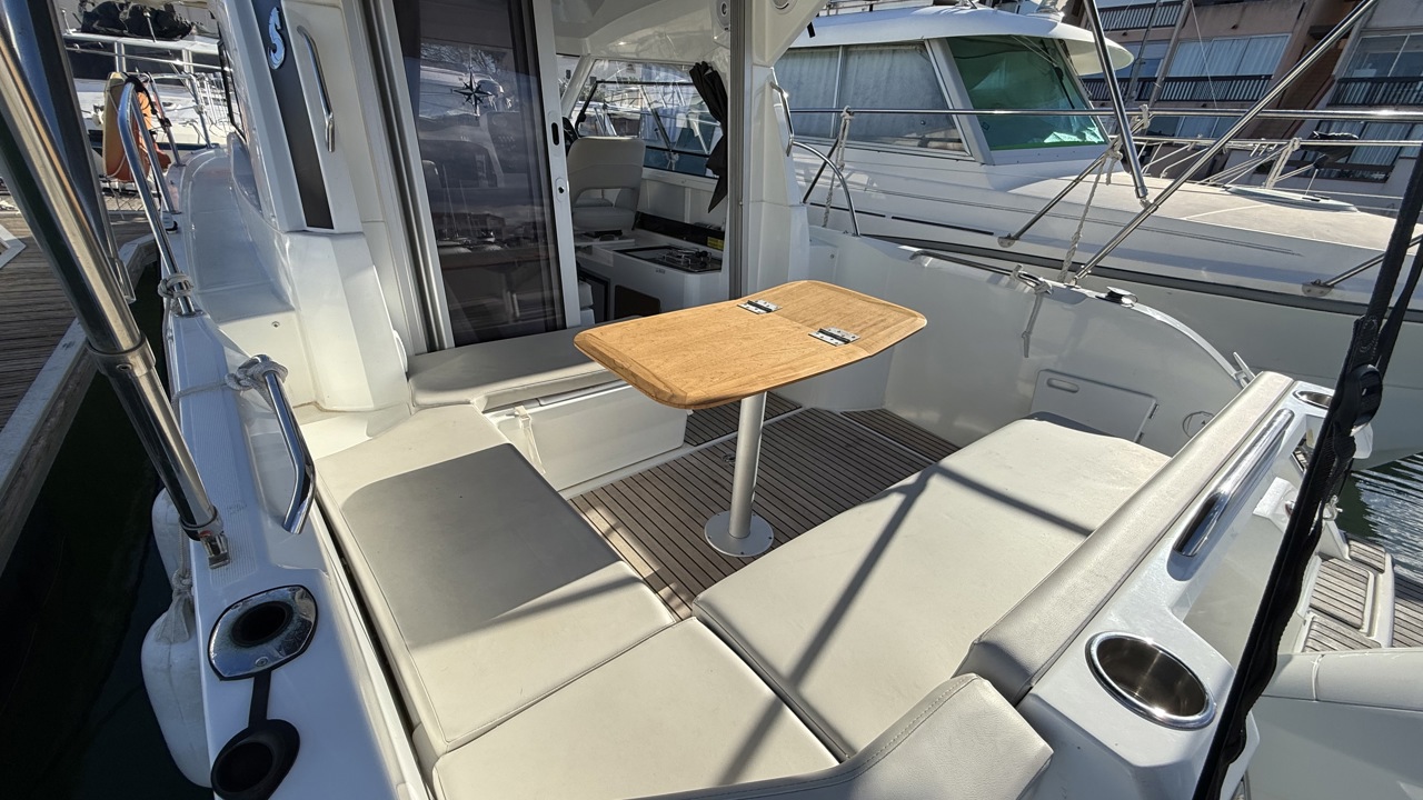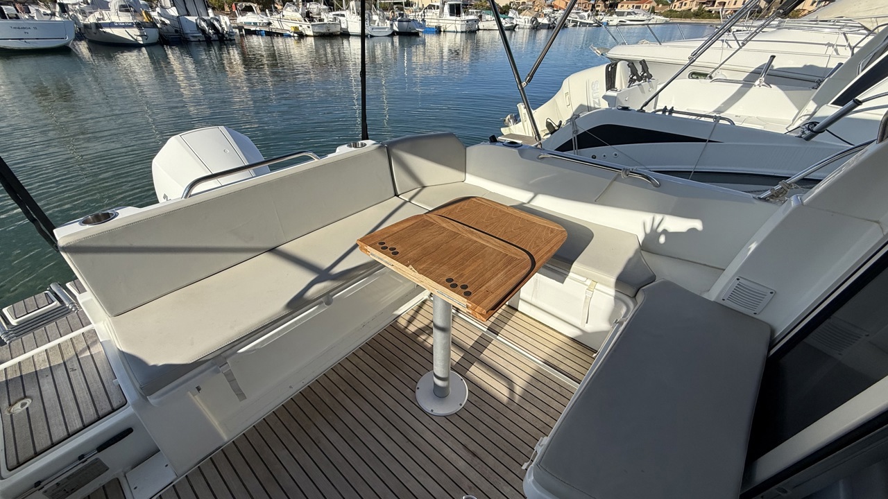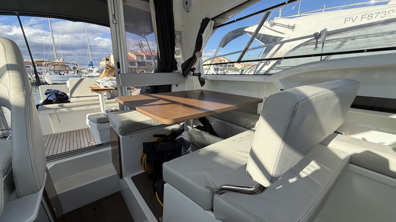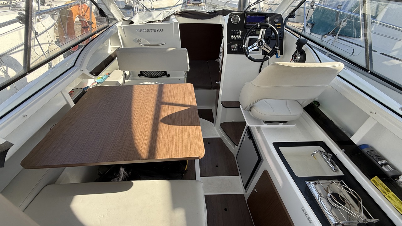 Esprit Bateau vous propose à la vente ce Beneteau Antares 8 OB de 2021, un modèle reconnu pour sa polyvalence, son confort à bord et sa sécurité en navigation. Idéal aussi bien pour les sorties à la journée que pour de belles escapades côtières en famille ou entre amis. Motorisé par un Mercury Verado 200 ch hors-bord, ce bateau offre une navigation souple et performante, avec une motorisation fiable et éprouvée totalisant seulement 159 heures de fonctionnement. Une configuration parfaite pour naviguer sereinement et profiter pleinement de chaque sortie. À bord, l’Antares 8 se distingue par ses aménagements intelligents et son habitabilité remarquable pour sa taille. La timonerie lumineuse donne accès à une cabine confortable, permettant de passer la nuit à bord, ainsi qu’à une salle d’eau équipée d’un WC marin, un vrai atout pour les sorties prolongées. Les espaces extérieurs sont pensés pour la détente et la convivialité : cockpit en teck, banquettes confortables, table de cockpit, bains de soleil avant et arrière, plateforme de bain avec échelle et douchette de cockpit. Le bimini et le taud de camping assurent une protection efficace pour profiter du bateau en toutes conditions. Côté équipement, ce Beneteau Antares 8 est particulièrement complet : propulseur d’étrave, flaps, GPS/traceur, sondeur, VHF, guindeau électrique, circuits 12V et 220V, prise de quai, chargeur, réfrigérateur et réchaud. Un bateau prêt à prendre la mer, sans compromis.Marque Beneteau