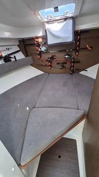 Le Beneteau Antares 8 OB est une vedette hors-bord moderne, reconnue pour sa polyvalence, sa facilité de prise en main et son excellent confort à bord. Idéale pour les sorties à la journée comme pour les week-ends en mer, elle offre un parfait compromis entre navigation et vie à bord. Motorisée par un Suzuki DF250 de 250 CV (250 heures), elle garantit des performances dynamiques tout en conservant une consommation maîtrisée. Son plan de pont bien pensé propose un cockpit convivial avec bain de soleil avant, table, douchette et plateforme de bain. L’intérieur dispose d’une cabine avec 2 couchages, d’un carré transformable, d’un WC marin et d’un réfrigérateur, permettant de profiter pleinement de séjours à bord. Très bien équipée (propulseur d’étrave, GPS/traceur, sondeur, VHF, guindeau électrique), cette unité est prête à naviguer immédiatement. Un bateau récent, fiable et parfaitement adapté à un programme balade, pêche et croisière côtière.Marque Beneteau