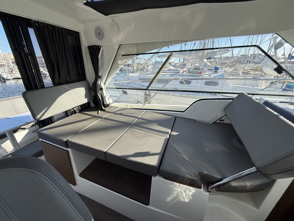 Beneteau Antares 9 OB (2023) – 2x200cv Yamaha – État proche du neuf Esprit Bateau a le plaisir de vous présenter ce magnifique Beneteau Antares 9 OB de 2023, une référence incontournable sur le marché des timoniers hors-bord, reconnu pour son confort, sa polyvalence et ses excellentes performances en mer. Ce modèle est équipé de 2 x 200cv Yamaha totalisant seulement 95 heures, offrant puissance, fiabilité et faible consommation. Son état est irréprochable, proche du neuf, avec un entretien rigoureux et une utilisation soignée. Pensé pour la croisière comme pour les sorties à la journée, cet Antares 9 OB bénéficie d’un excellent niveau d’équipements : propulseur d’étrave, teck, flaps Zipwake, bain de soleil avant, GPS sondeur… garantissant confort et facilité de navigation. L’intérieur propose un carré lumineux, une cabine propriétaire spacieuse, une seconde cabine ainsi qu’une salle d’eau, faisant de ce bateau un véritable compromis entre day-boat et croiseur familial. Bateau prêt à naviguer (carénage et révision moteur effectuer 03/2026) – dossier complet sur demande – place de port possible.Marque Beneteau