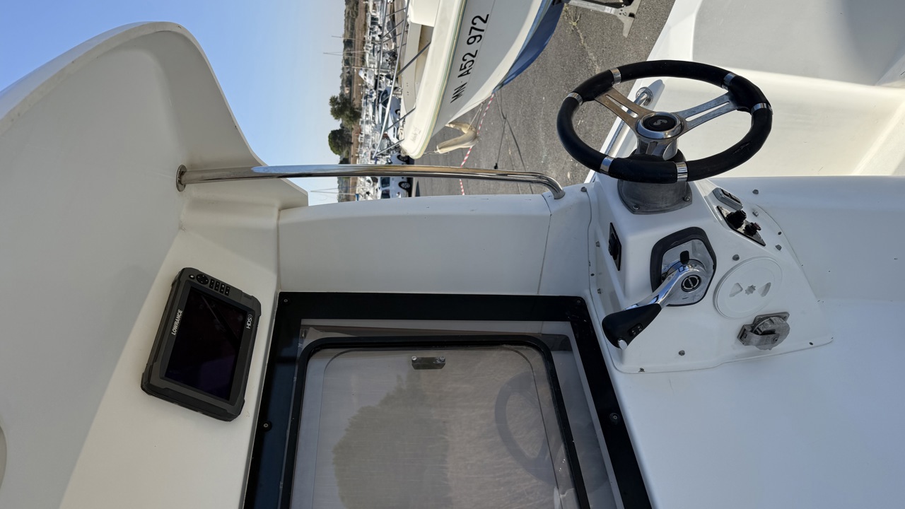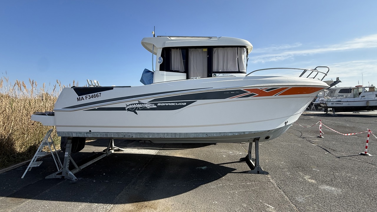 Beneteau BARRACUDA 7 – millésime 2015, équipé d’un moteur hors-bord de 200 chevaux installé en 2022, offrant puissance, fiabilité et confort de navigation. Ce bateau est une opportunité rare, notamment grâce à son second poste de pilotage extérieur, idéal pour les manœuvres en pêche ou en navigation côtière. Ce bateau de deuxième main a été soigneusement entretenu et conservé en stockage à sec, garantissant une coque préservée des agressions marines et un état général remarquable. Il sera vendu avec un carénage complet, antifouling neuf, ainsi que l’entretien moteur effectué pour la vente, vous assurant une prise en main immédiate et sereine. Le Barracuda 7 est reconnu pour sa carène performante, son design moderne et sa polyvalence. Il offre une excellente tenue en mer, même dans des conditions agitées, tout en conservant un confort appréciable à bord. Le cockpit spacieux et modulable permet de pratiquer la pêche sportive ou de profiter de sorties en famille. Le poste de pilotage intérieur est bien équipé, avec une visibilité optimale, tandis que le poste extérieur ajoute une dimension pratique et agréable à la navigation. À l’intérieur, vous trouverez une cabine lumineuse avec couchette double, rangements, et un espace pouvant accueillir un WC marin. Le bateau est homologué pour 8 personnes, ce qui en fait un excellent choix pour les sorties conviviales ou les excursions prolongées. Parmi les équipements, on retrouve : GPS traceur, sondeur, guindeau électrique, taud de soleil, porte-cannes, et bien plus selon les options installées. La capacité du réservoir de carburant est de 200 litres, assurant une belle autonomie, et un réservoir d’eau douce de 100 litres est disponible en option. Ce Barracuda 7 est prêt à naviguer, sans frais à prévoir. Il combine les avantages d’un bateau robuste, bien pensé, et d’un moteur récent, le tout dans un état irréprochable. Idéal pour les passionnés de pêche, les amateurs de balades en mer ou ceux qui recherchent un bateau fiable et bien équipé.Marque Beneteau
