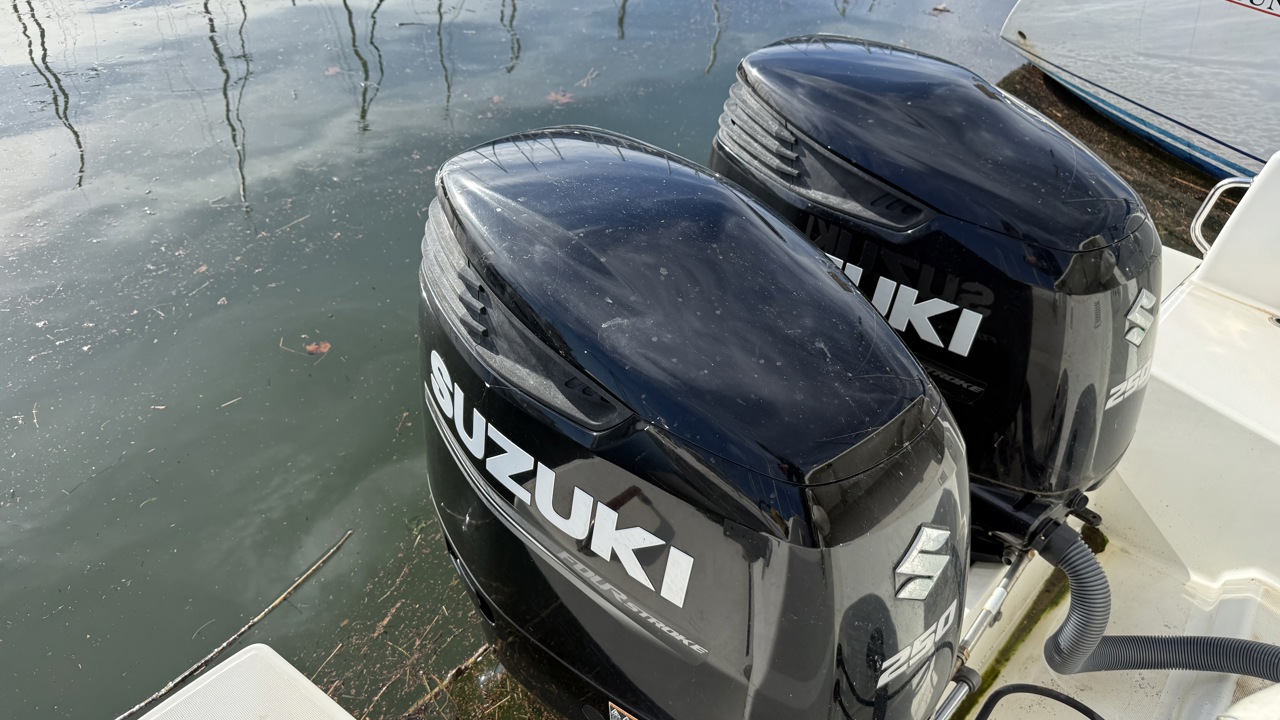 Ce modèle de 2019 bénéficie d’un équipement complet, incluant une électronique de navigation moderne, garantissant sécurité et sérénité en mer. La double motorisation Suzuki 250 CV assure des reprises franches, une navigation souple et une redondance très appréciée en termes de sécurité.