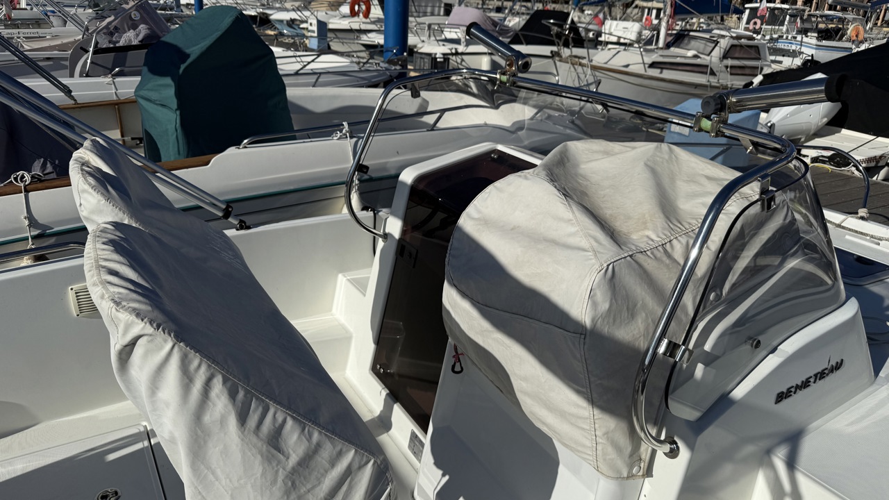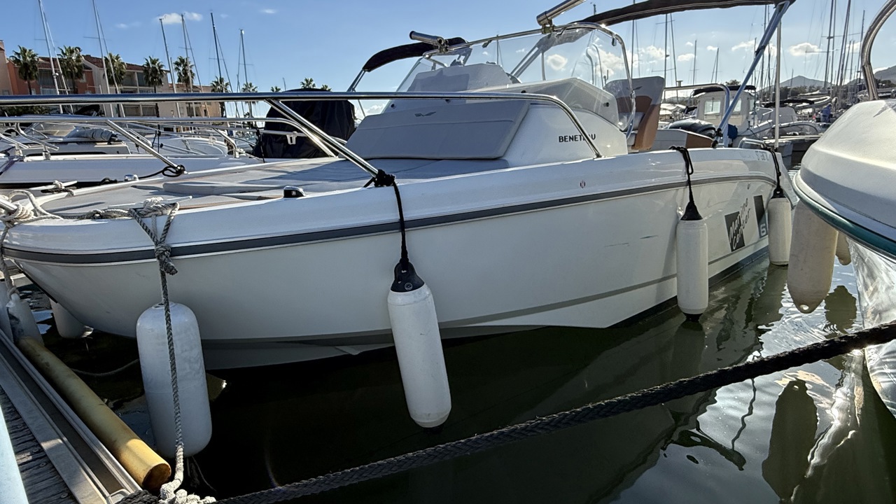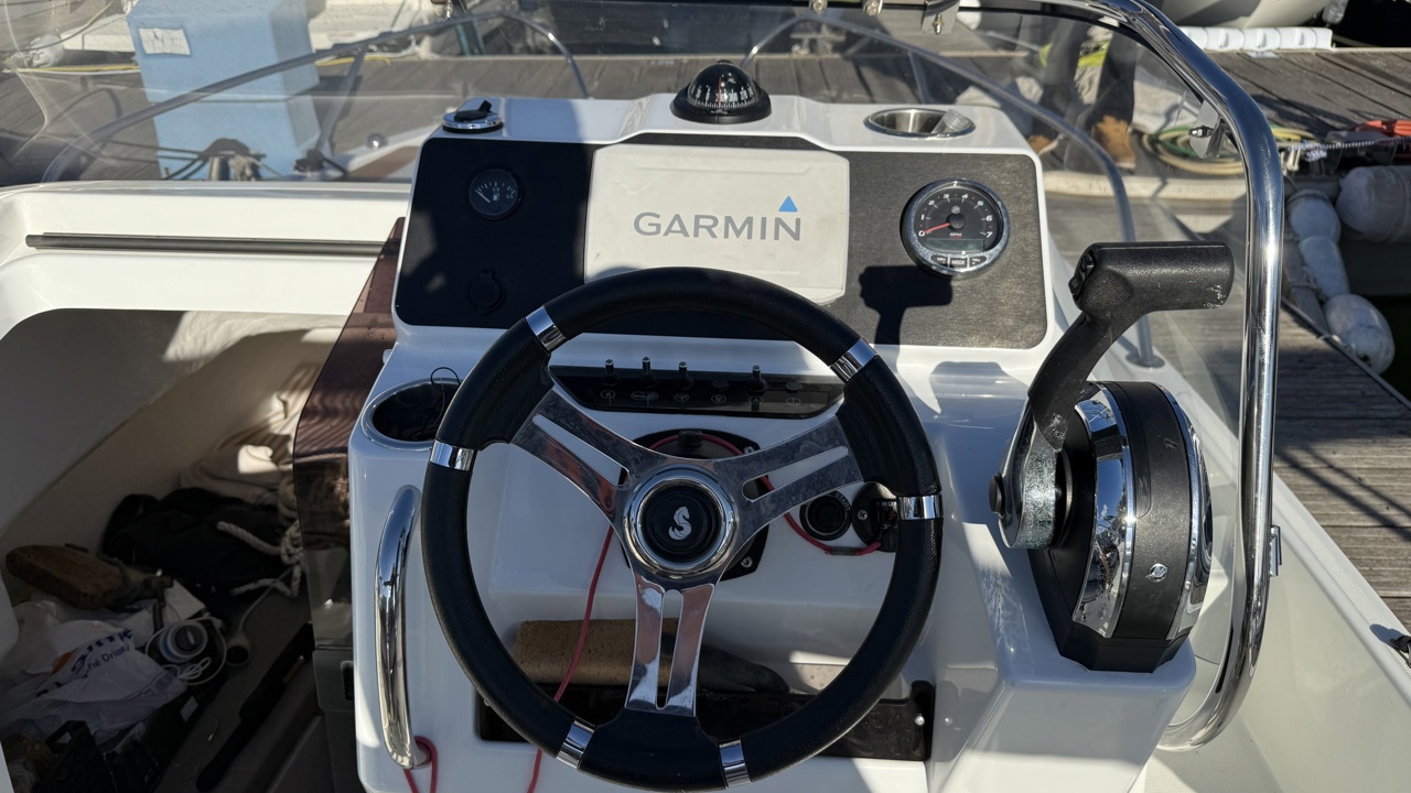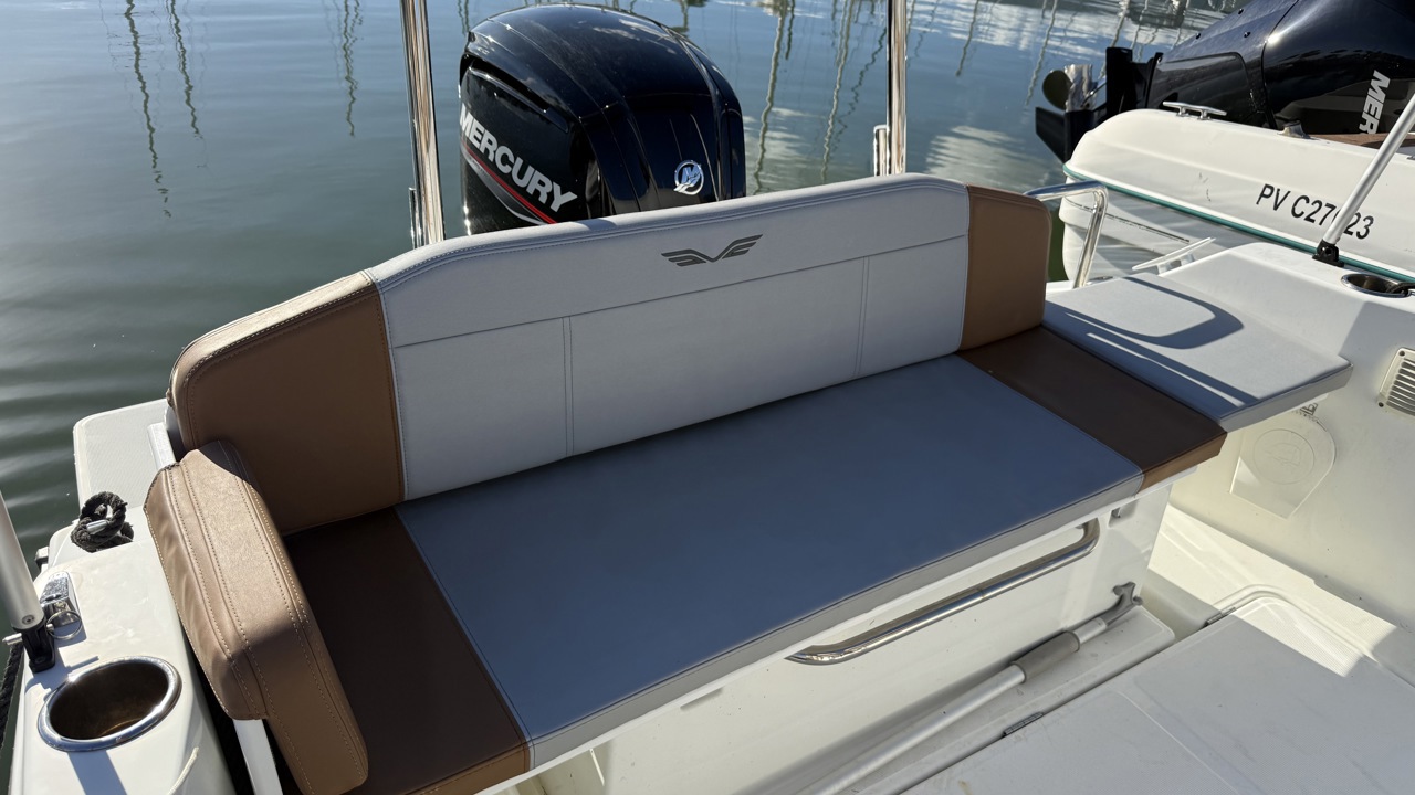 La cabine avant offre un espace de rangement pratique ou un couchage d’appoint pour vos escales. Grâce à son plan de pont ergonomique, l’accès à bord est simple et sécurisé. La motorisation Mercury 115 CV assure une navigation souple et agréable, avec une consommation maîtrisée et une maintenance simple Place de port possible Entretien moteur et carénage réalisée lors de la vente!