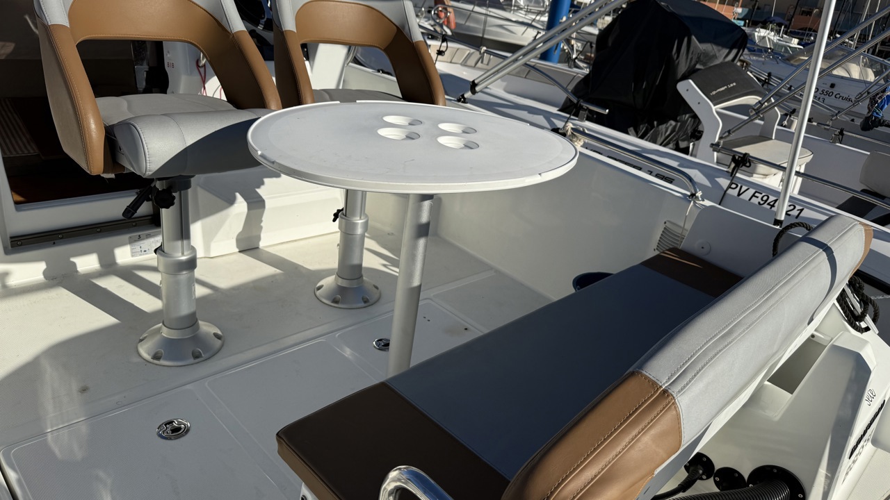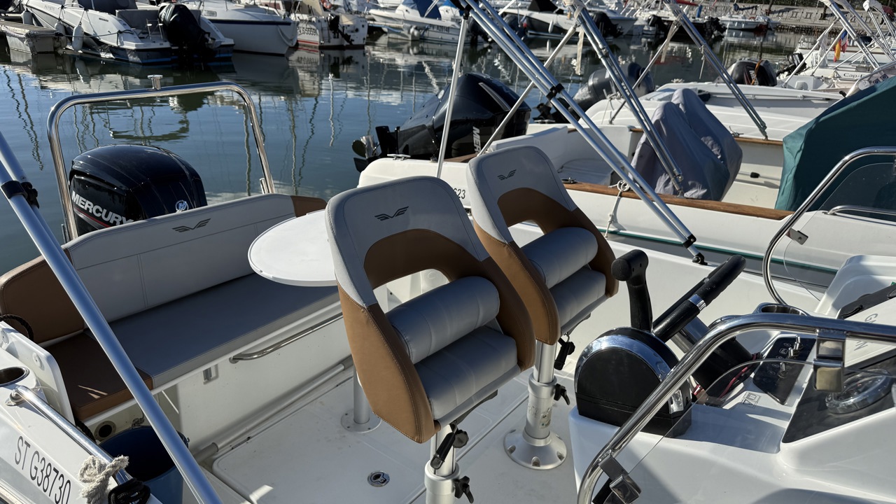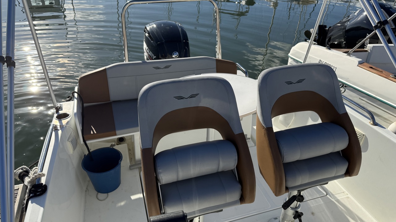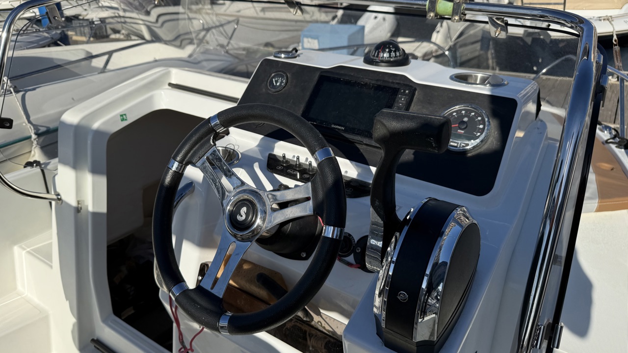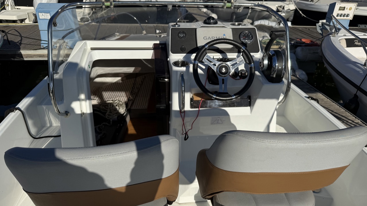 La cabine avant offre un espace de rangement pratique ou un couchage d’appoint pour vos escales. Grâce à son plan de pont ergonomique, l’accès à bord est simple et sécurisé. La motorisation Mercury 115 CV assure une navigation souple et agréable, avec une consommation maîtrisée et une maintenance simple Place de port possible Entretien moteur et carénage réalisée lors de la vente!