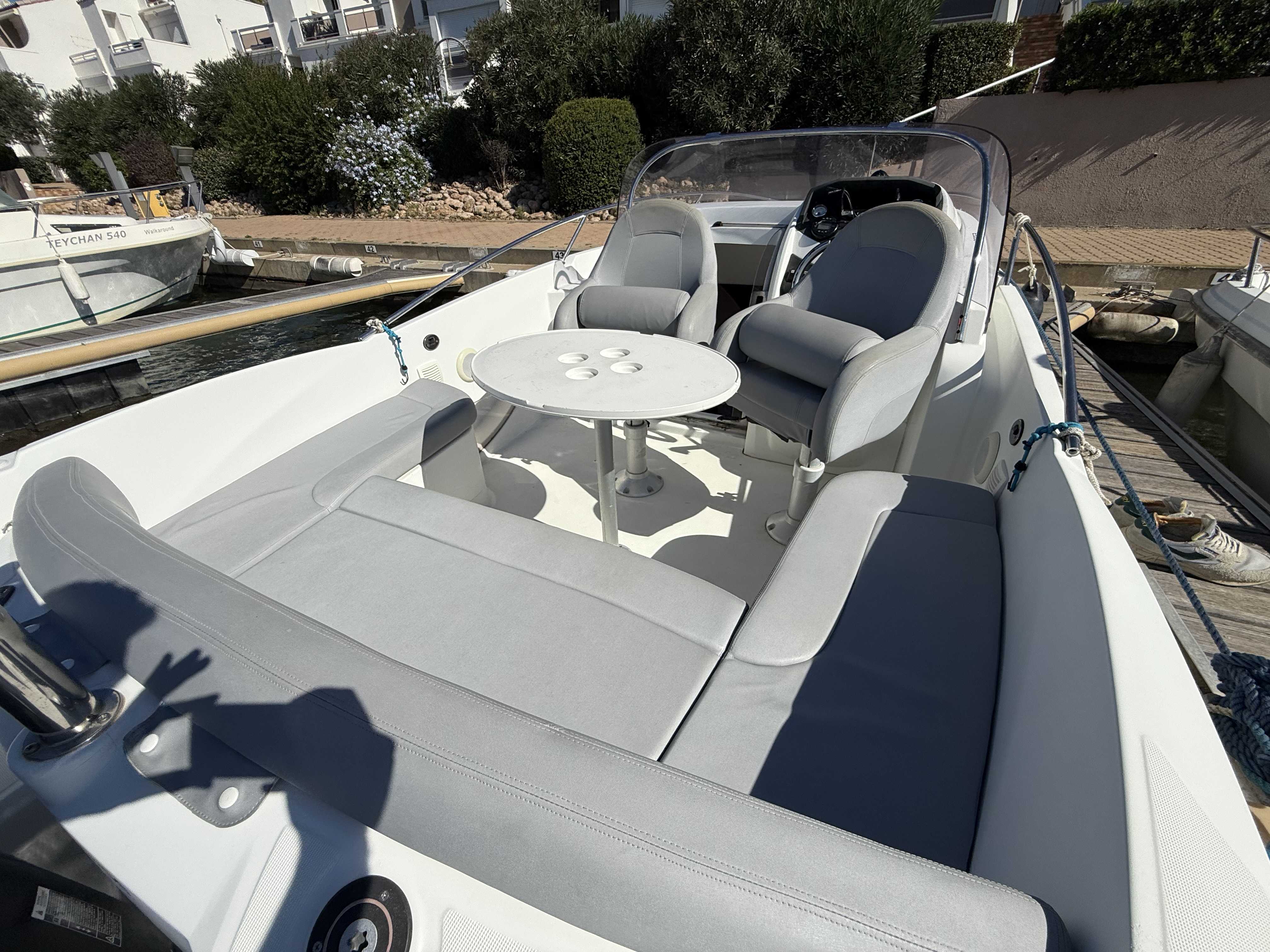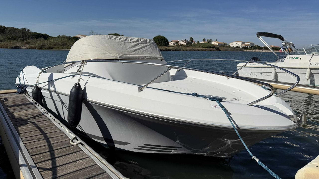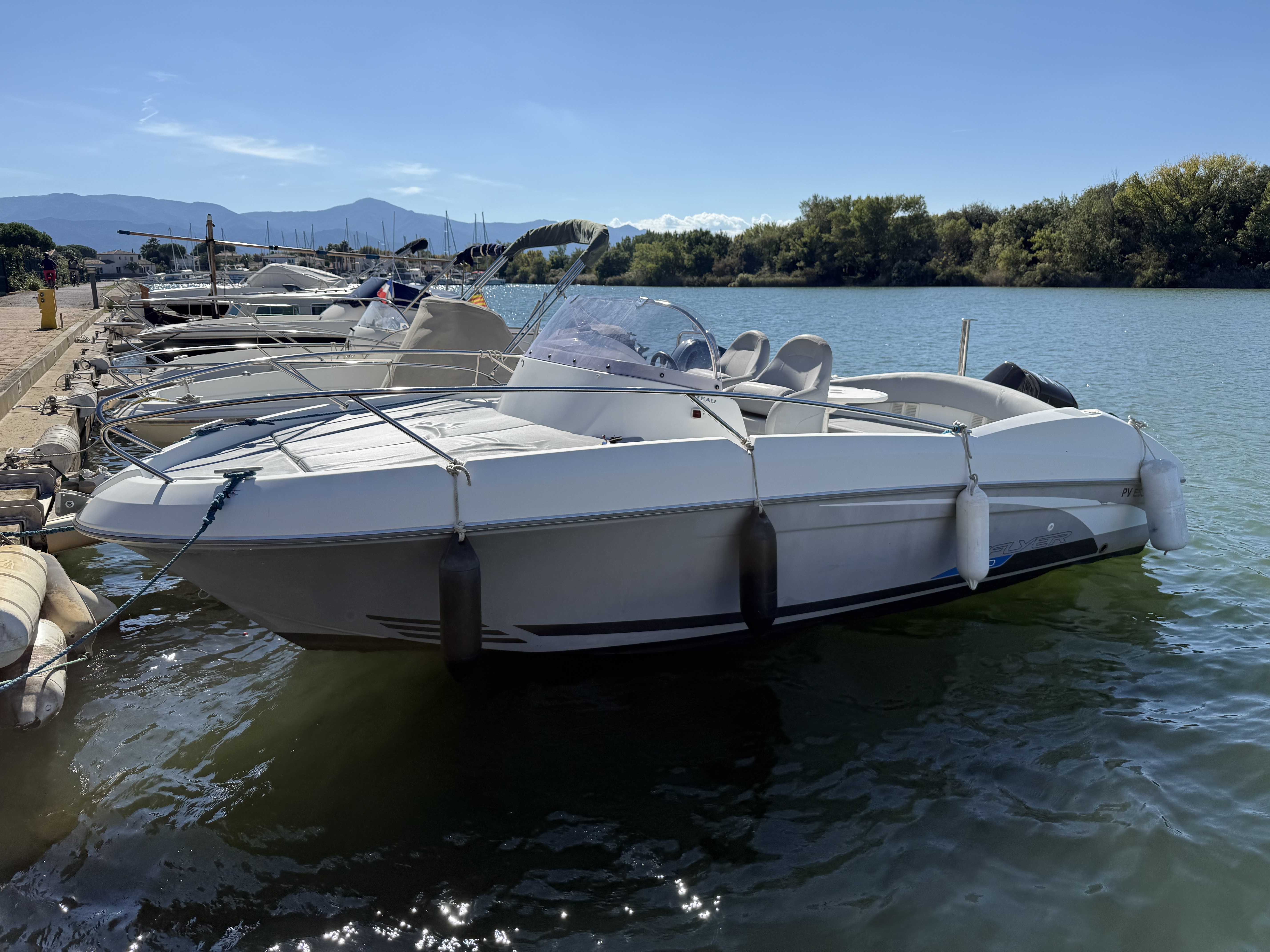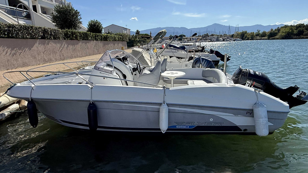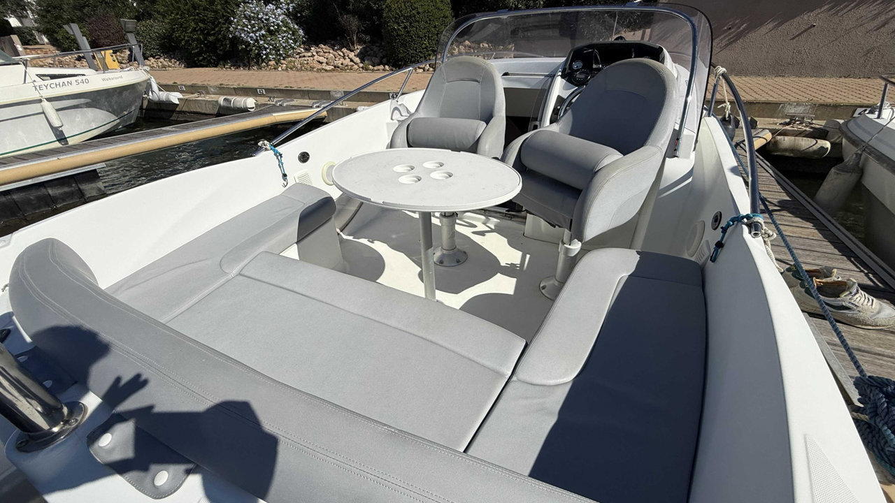 Le Bénéteau Flyer 650 Sundeck 2010 est un bateau de plaisance polyvalent de 6,11 mètres, conçu pour des sorties à la journée en mer. Avec une motorisation hors-bord de 150 CV et un réservoir de 136 litres, il offre de bonnes performances et une stabilité optimale. Son design sportif inclut un grand bain de soleil à l'avant, un cockpit bien agencé, et une petite cabine sous le pont avant. Idéal pour la détente, les sports nautiques et la pêche, il combine confort et maniabilité, bien qu'il soit mieux adapté pour des séjours courts en raison de son espace de cabine limité. entretien à jour place de port disponibleMarque Beneteau