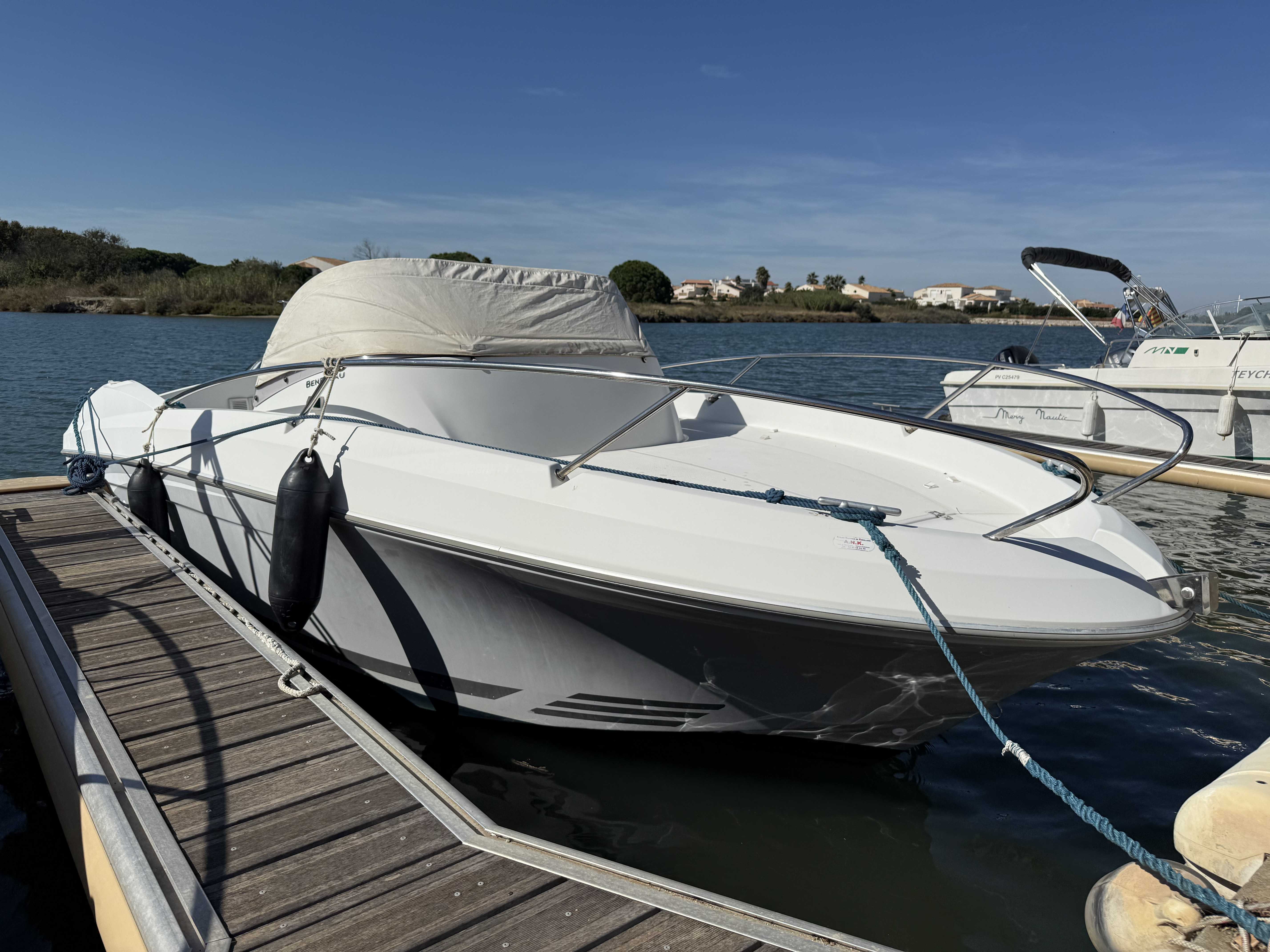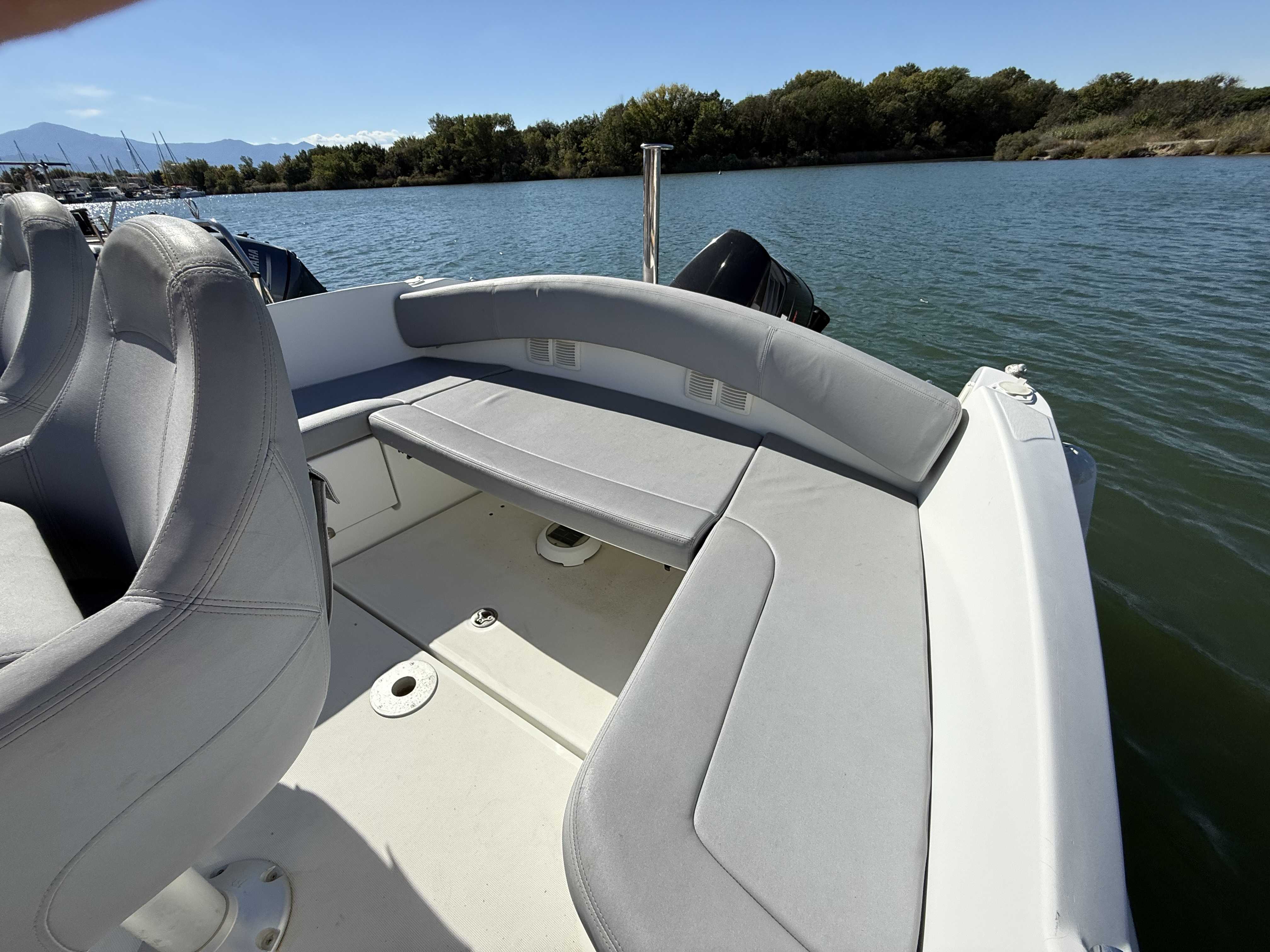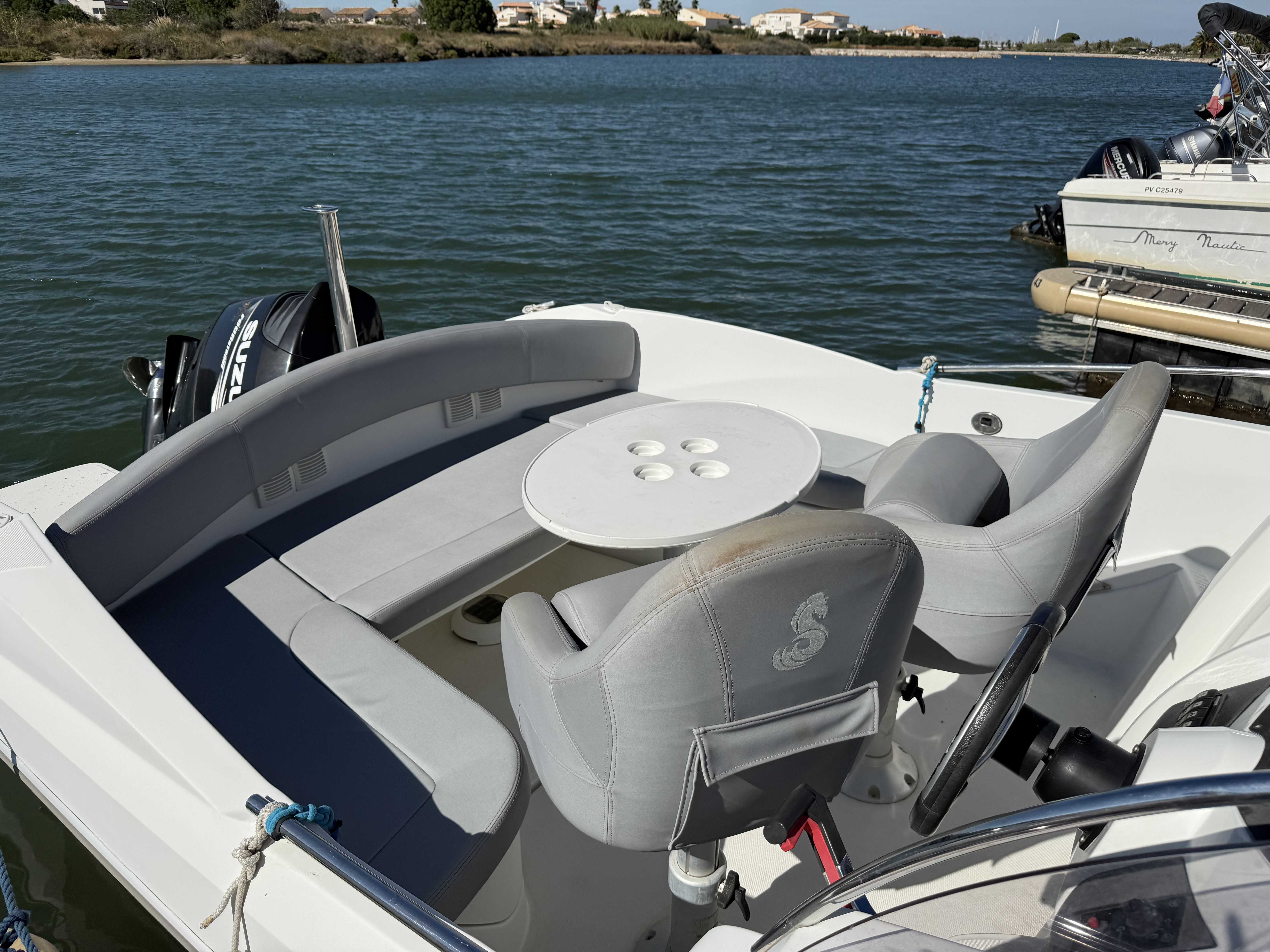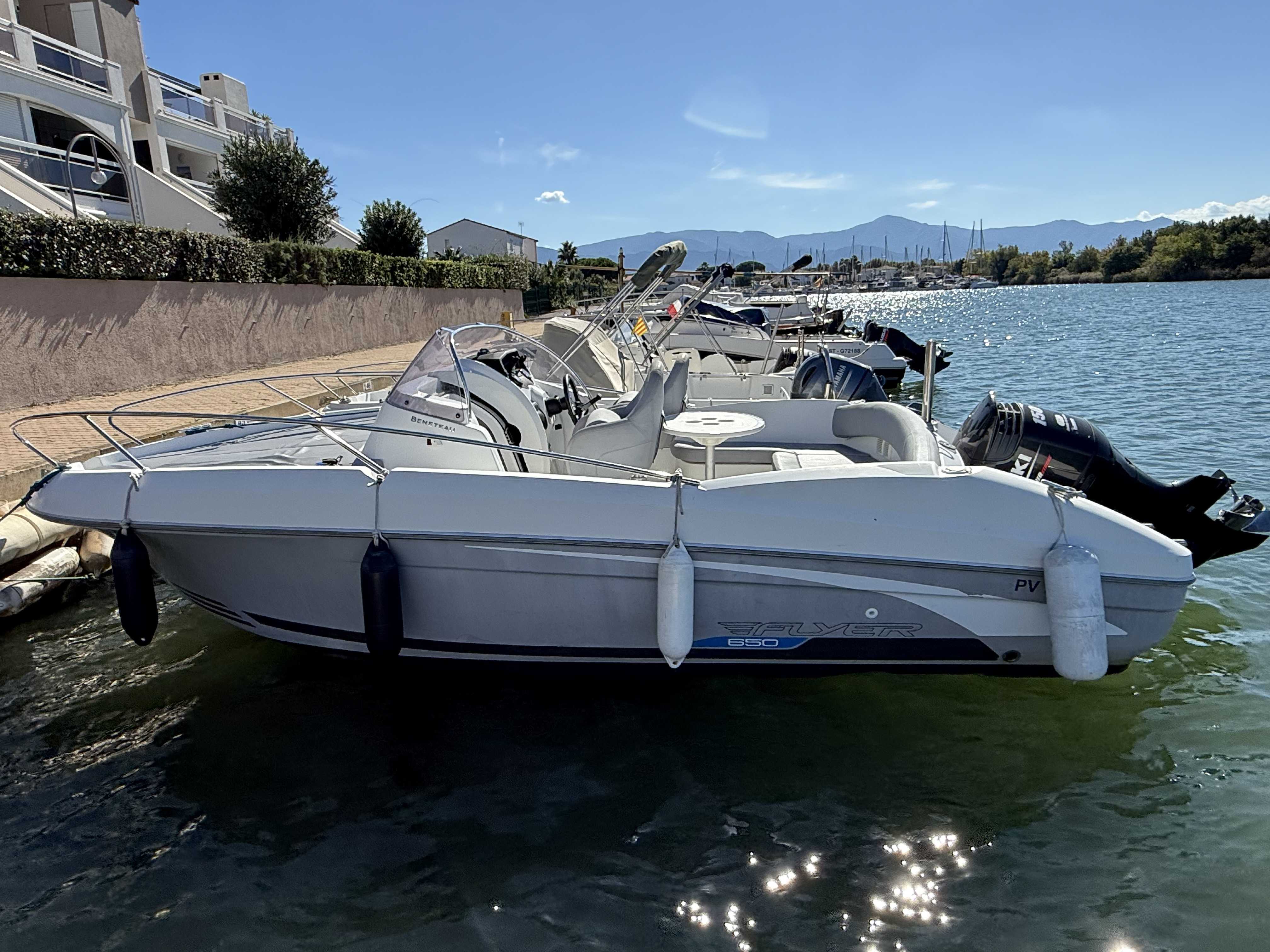 Le Bénéteau Flyer 650 Sundeck 2010 est un bateau de plaisance polyvalent de 6,11 mètres, conçu pour des sorties à la journée en mer. Avec une motorisation hors-bord de 150 CV et un réservoir de 136 litres, il offre de bonnes performances et une stabilité optimale. Son design sportif inclut un grand bain de soleil à l'avant, un cockpit bien agencé, et une petite cabine sous le pont avant. Idéal pour la détente, les sports nautiques et la pêche, il combine confort et maniabilité, bien qu'il soit mieux adapté pour des séjours courts en raison de son espace de cabine limité. entretien à jour place de port disponibleMarque Beneteau