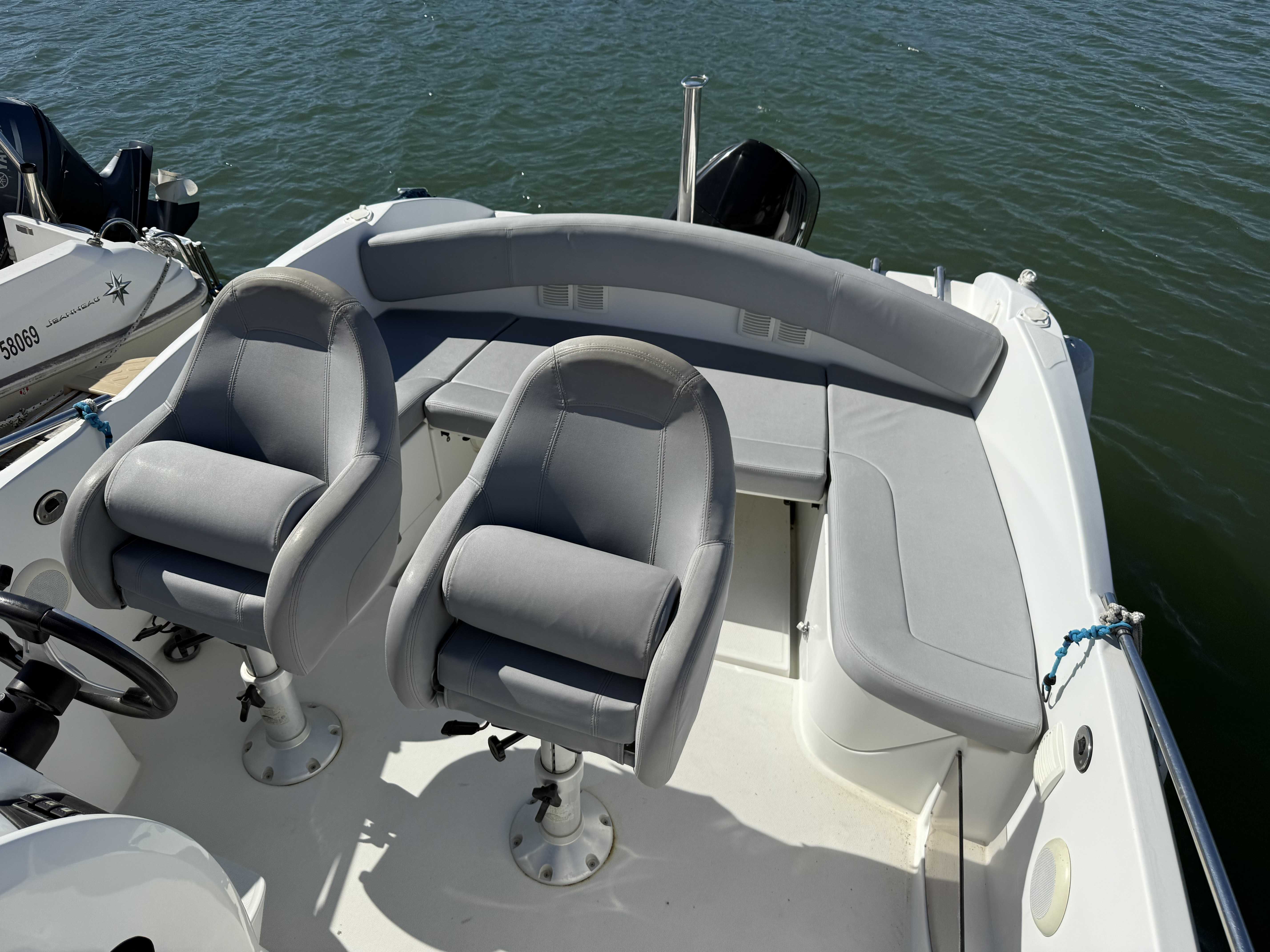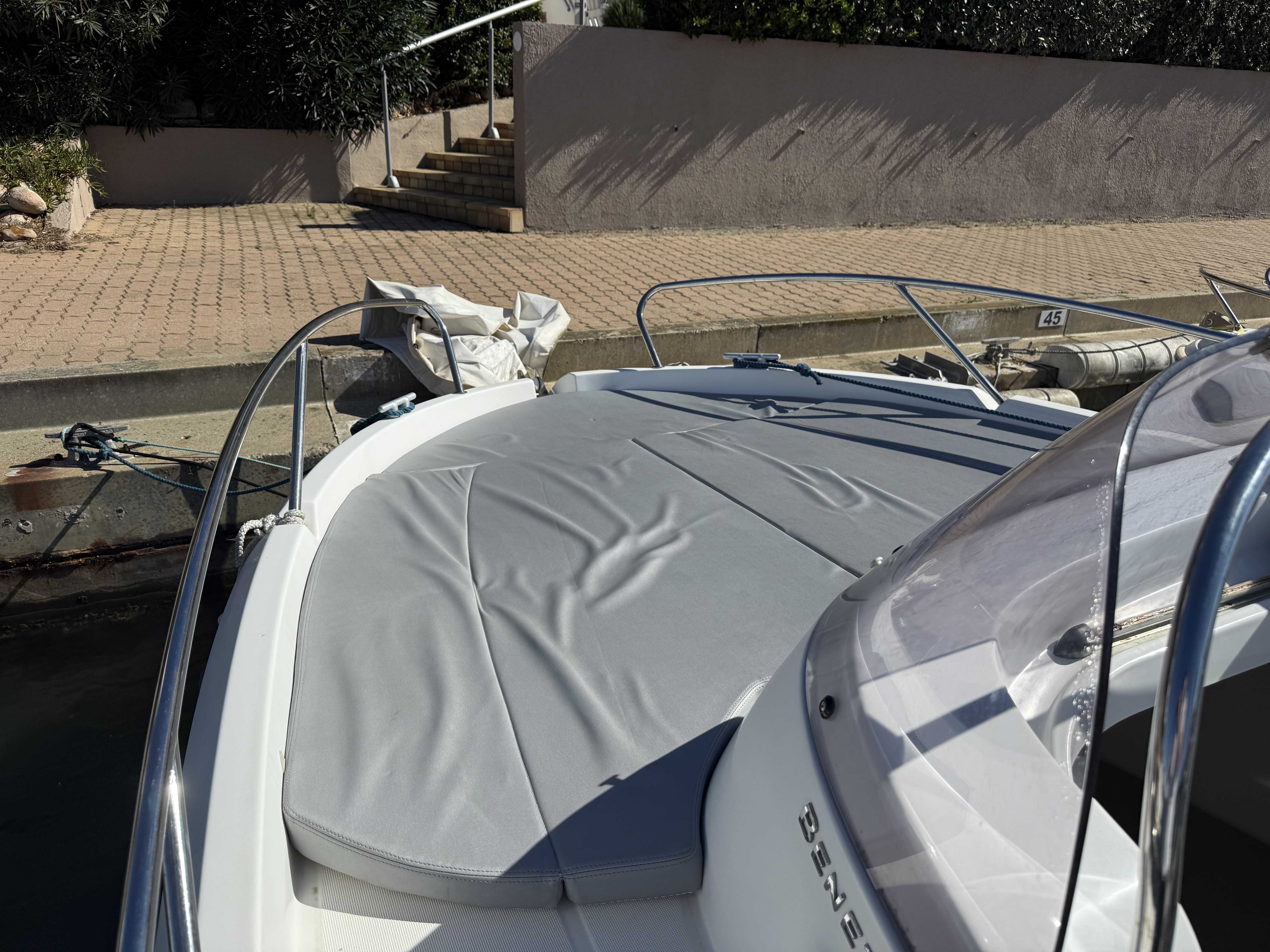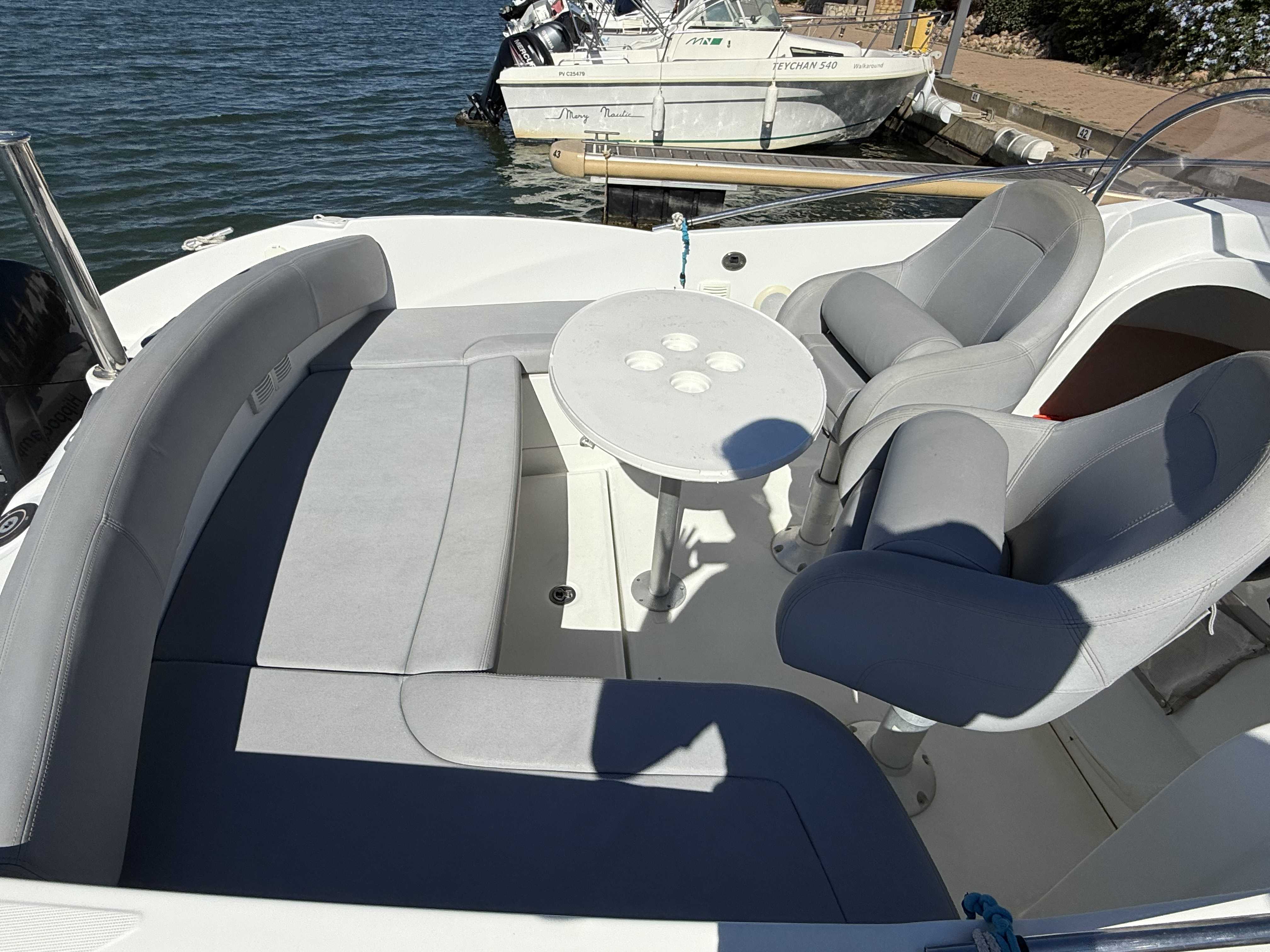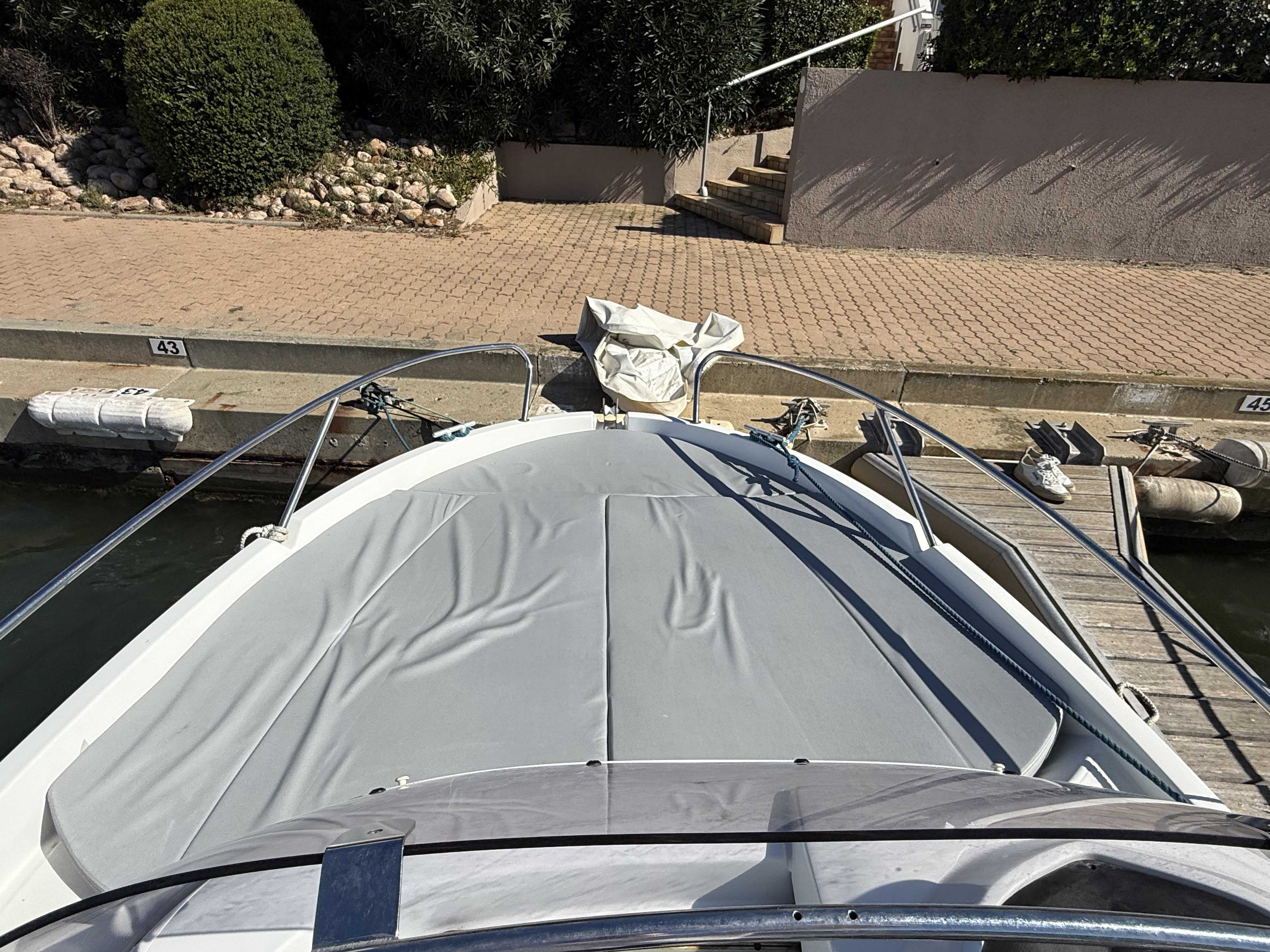 Echelle de bainDouchette de cockpitTable de cockpitBain de soleil avantCoussins de cockpithouse de consolleAncreGuindeau manuelPompe de caleArmement