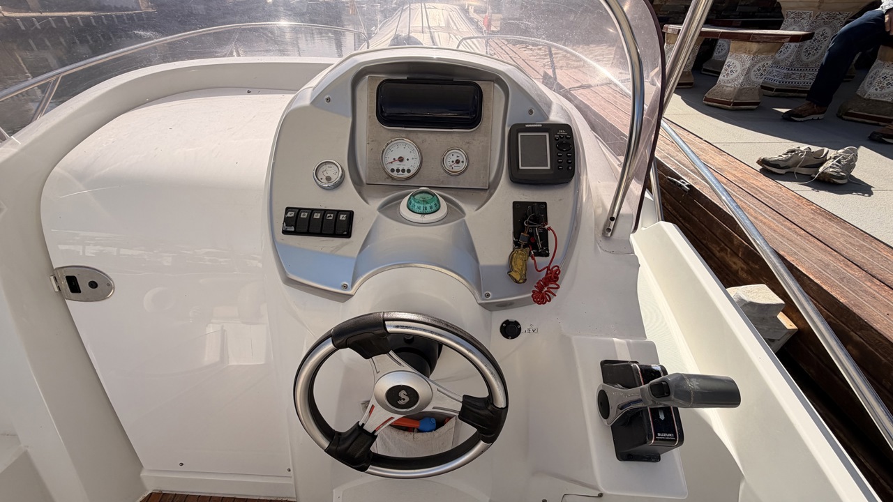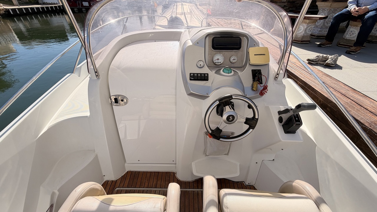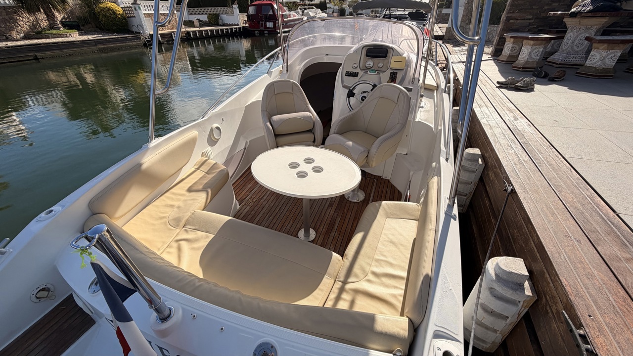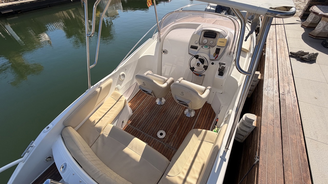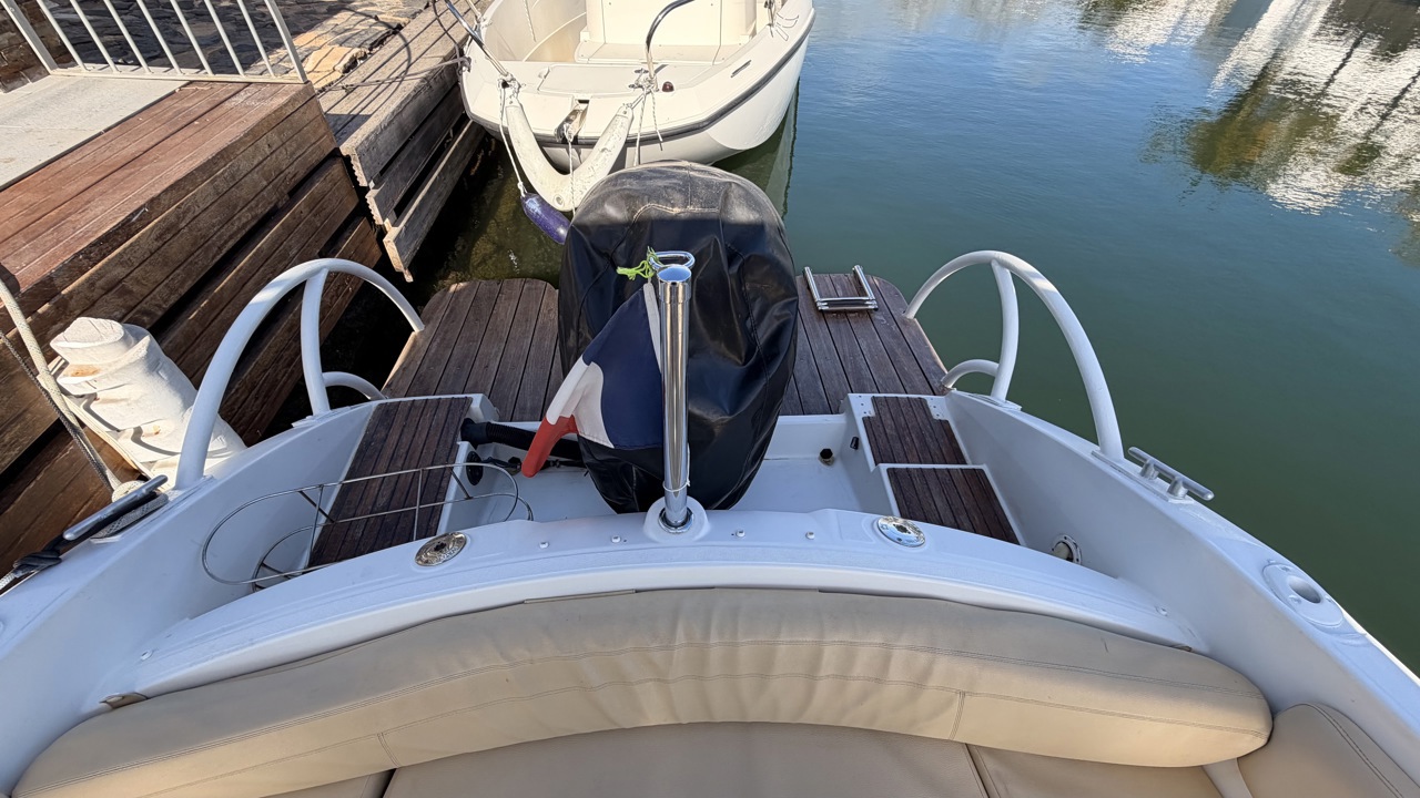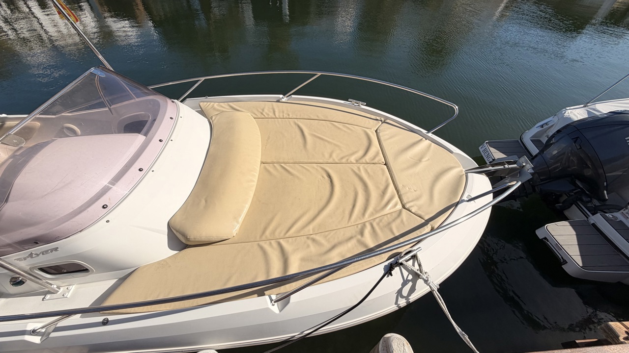 Magnifique Bénéteau Flyer 750 Sun Deck de 2008, en très bon état général, prêt à naviguer. Motorisé par un Suzuki DF250 de 250 ch affichant environ 950 h, avec un entretien complet réalisé chaque année avec factures. Bateau fiable, polyvalent et agréable en navigation. Belle configuration confort : cabine, WC, bain de soleil avant, bâche de cockpit, hard top inox, douchette arrière. Équipements appréciables : guindeau électrique, réfrigérateur, plateforme arrière inox, plancher teck entretenu, sellerie récente coloris beige, batteries changées récemment. Unité habitable et polyvalente, idéale pour les sorties à la journée comme pour les petites escapades côtières. BÉNÉTEAU FLYER 750 SUN DECK – 2008 – Suzuki 250 CV – Remorque possible en supplément – Visible à EmpuriabravaMarque Beneteau