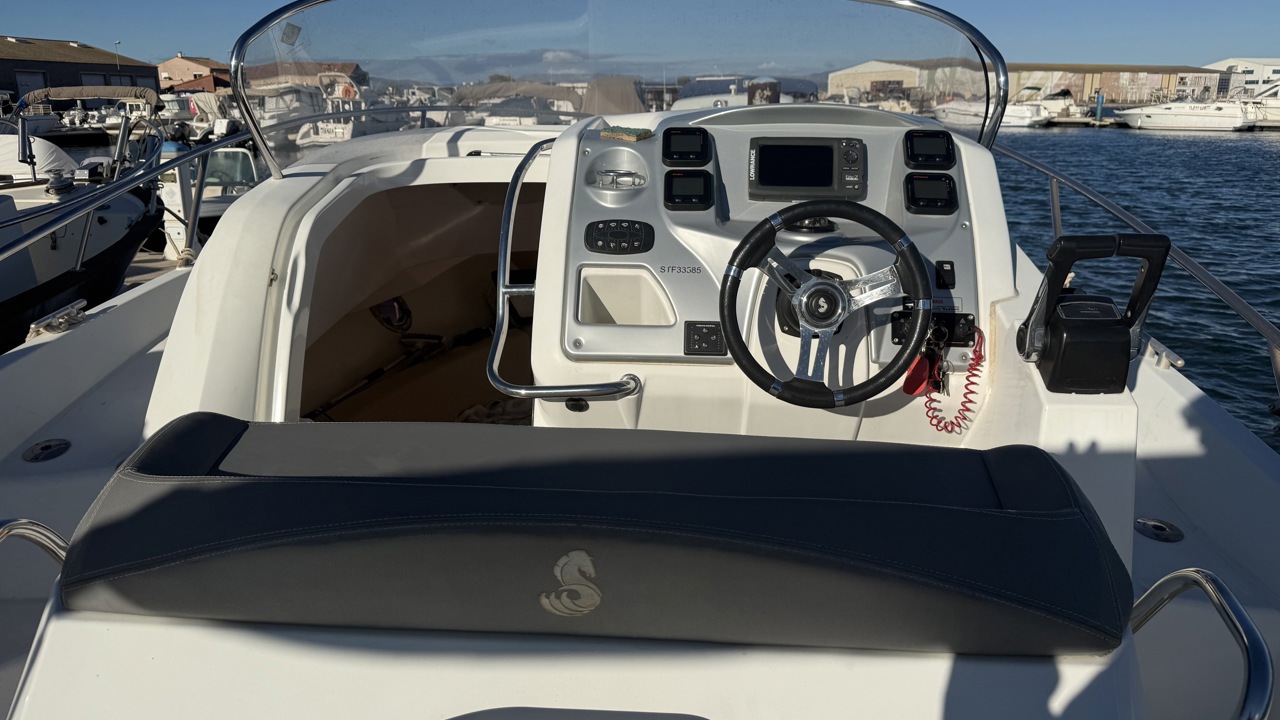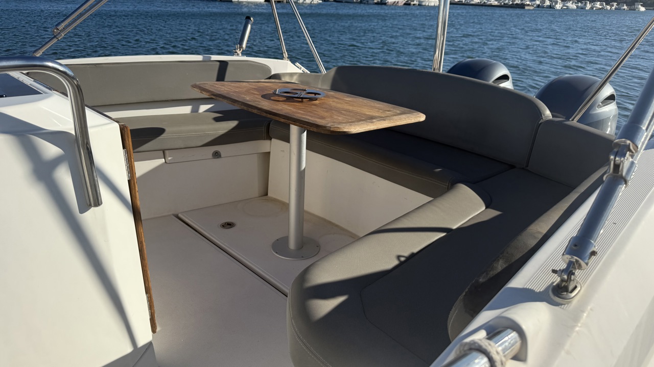 ????️ Bénéteau Flyer 850 de 2013 équipé de 2x200 Yamaha, proposé en très bon état général. Idéal pour les sorties en mer, la balade côtière et les loisirs nautiques, ce Flyer 850 offre une carène fiable, confortable et reconnue pour sa stabilité. Bateau bien entretenu, prêt à naviguer pour la saison. Il dispose d’un grand cockpit convivial, d’un bain de soleil avant, d’un poste de pilotage ergonomique et d’une cabine avec couchage, coin repas et salle d’eau. Équipé d’une électronique de navigation Lawrence, douchette, rangements et protections de pont. Excellent choix pour ceux qui recherchent un Flyer 850 fiable, polyvalent et performant avec une double motorisation Yamaha.