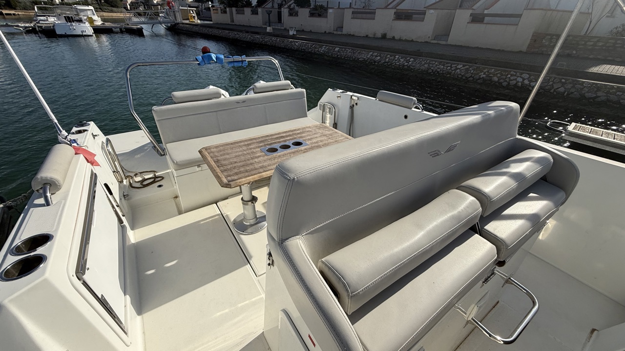 coussin cockpitdouchette cockpitéclairage cockpittable cockpitbain de soleil arrièrebain de soleil avantbiminiéchelle de bainplateforme de baintaud de soleiltaud de mouillageancreguindeau électriqueantifoulingportes cannessondeur pêche