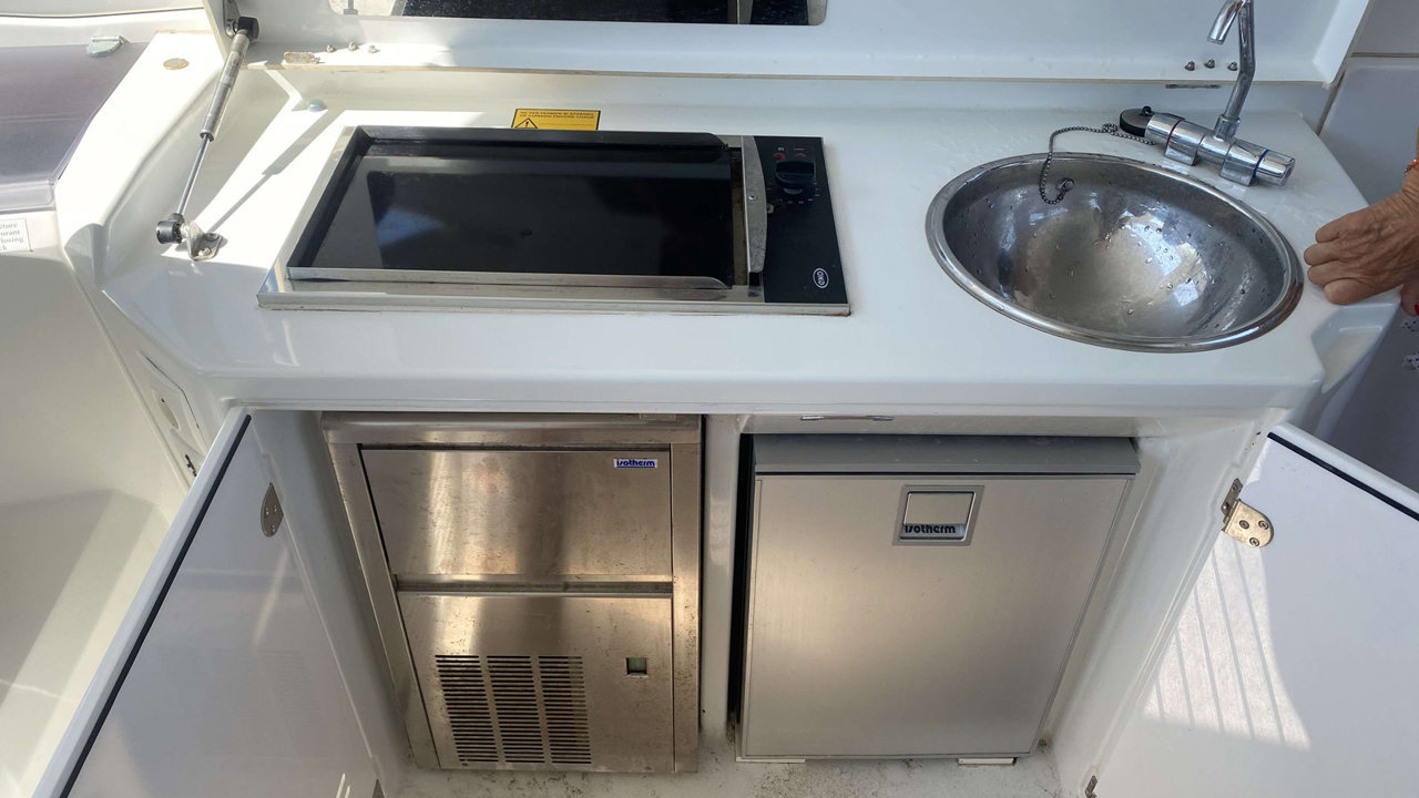 passerelle hydrauliquepropulseur d'étravetaud fermeture arrièreplateforme de bainéchelle de bainbain de soleil avantbain de soleil arrièrecockpit teckdouchette cockpittable cockpitcoussin cockpitéclairage cockpitguindeau électriquematériau de constructionannexemoteur annexe