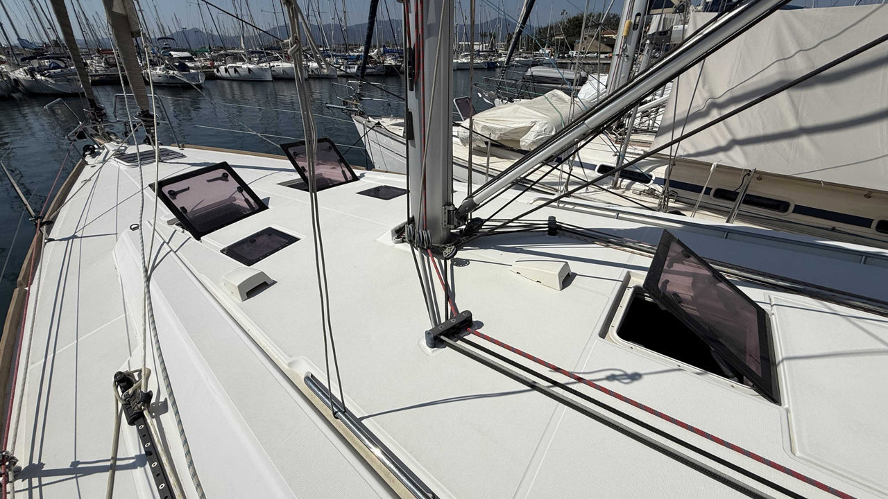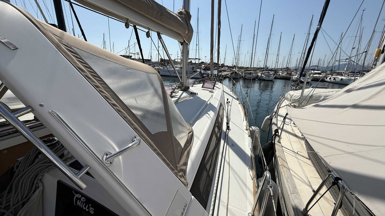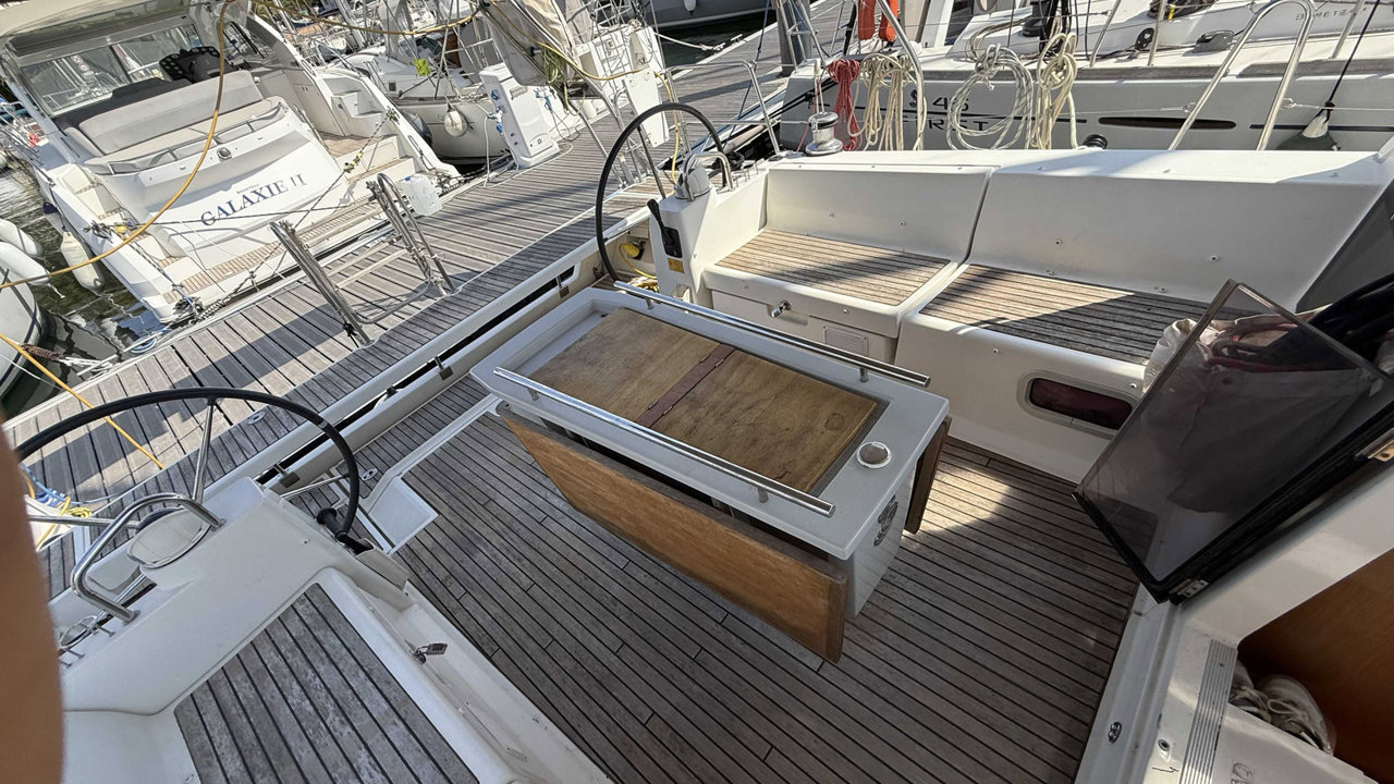 bateau disponible en septembre L’Oceanis 45 incarne l’esprit de la croisière moderne : une combinaison réussie entre confort raffiné, design soigné et belles performances en mer. Dessiné pour séduire aussi bien les marins aguerris que les plaisanciers en quête d’évasion, ce voilier offre une navigation fluide, sécurisante et particulièrement agréable, même par mer formée. Sa silhouette contemporaine et ses lignes tendues lui confèrent une allure à la fois sportive et élégante. Le pont spacieux et épuré, la double barre à roue, ainsi que le cockpit accueillant renforcent l’impression d’espace et de liberté à bord. On s’y sent immédiatement bien, que ce soit à la barre, en navigation ou au mouillage, bercé par le clapot. L’Oceanis 45 est un bateau pensé pour vivre la mer pleinement, sans compromis entre plaisir et sérénité. Il séduit par son équilibre naturel entre performance sous voile et confort à bord. Facile à manœuvrer, stable et réactif, il inspire confiance dès les premières milles parcourus. Naviguer à bord de l’Oceanis 45, c’est choisir une expérience de croisière fluide, élégante et conviviale, où chaque instant passé en mer devient un moment privilégié.Marque Beneteau