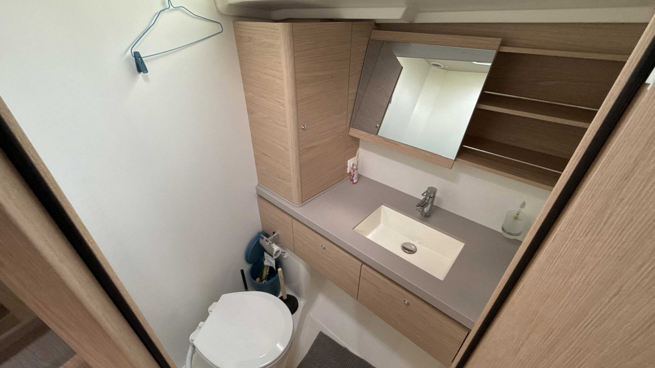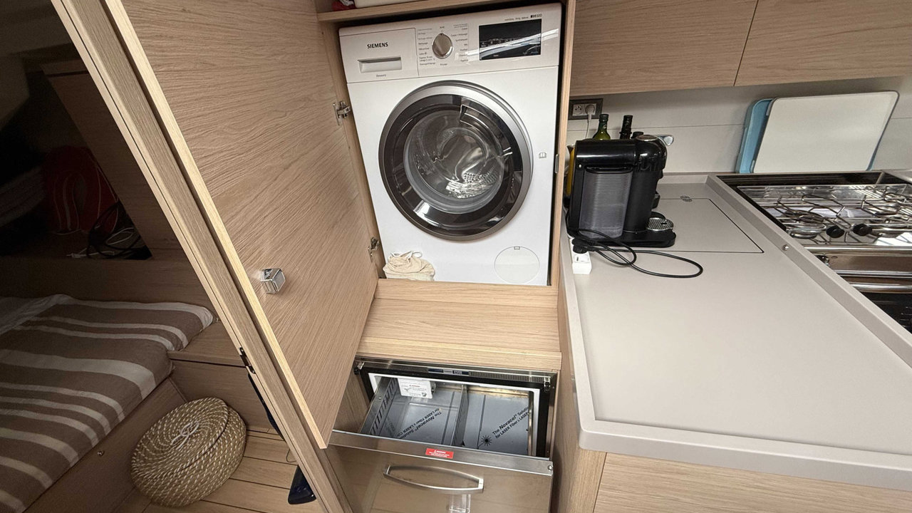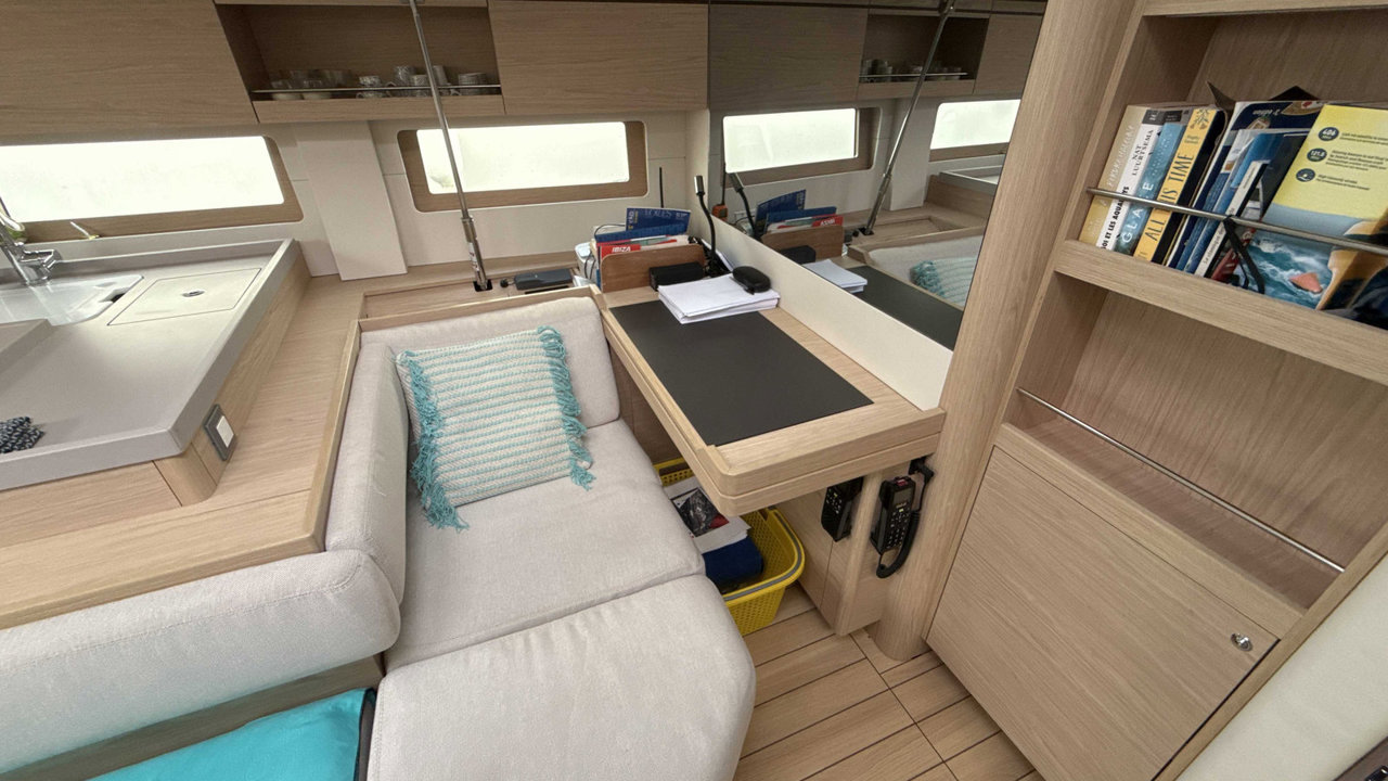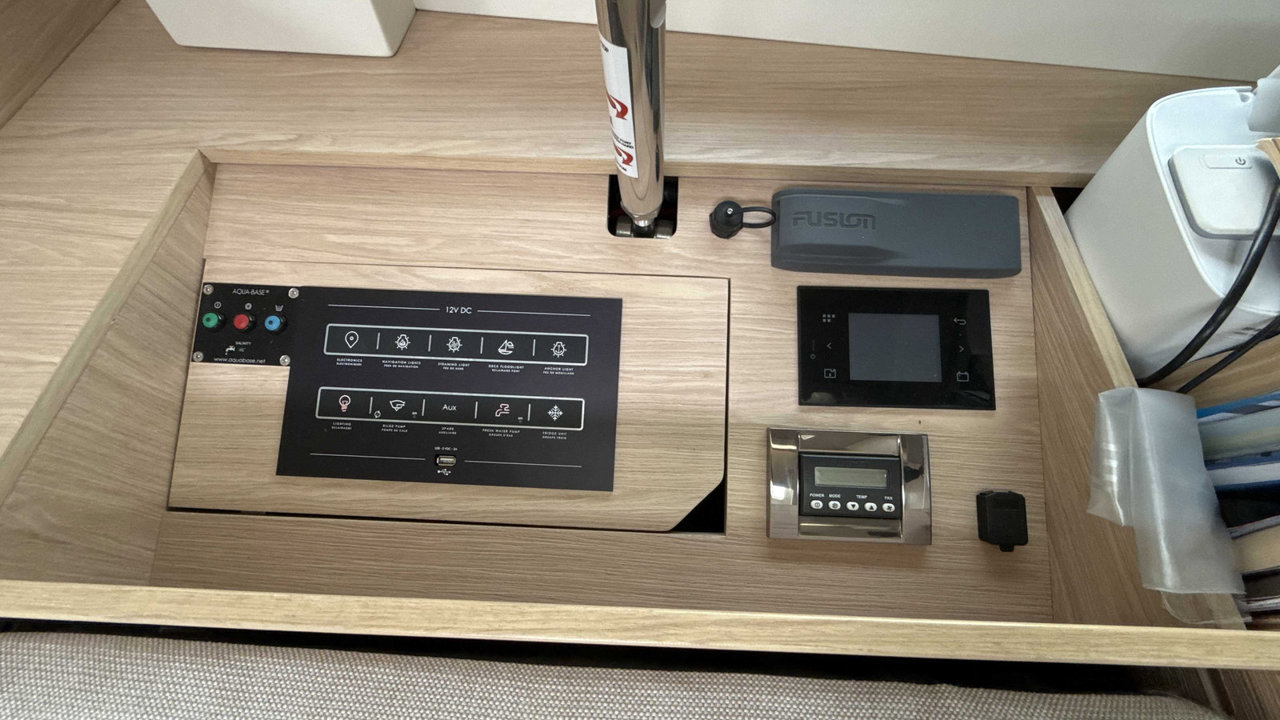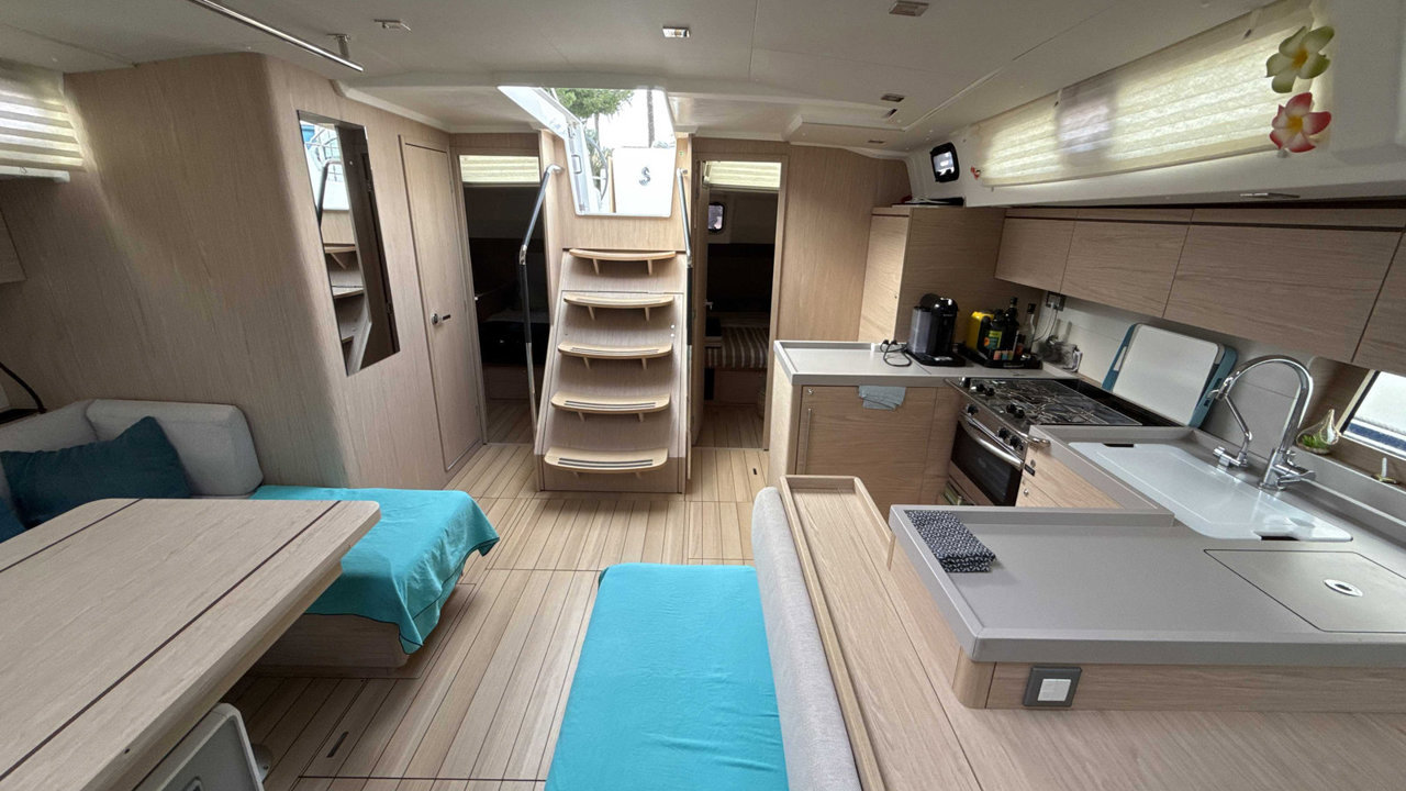capacité eau froidecapacité eau noirecarré transformabletable à carteslave-lingeclimatisationchauffagedessalinisateurwc marinréfrigerateurcongélateurmachine à glaçonscuisinièreréchaudmicro ondeshi-fitélévision