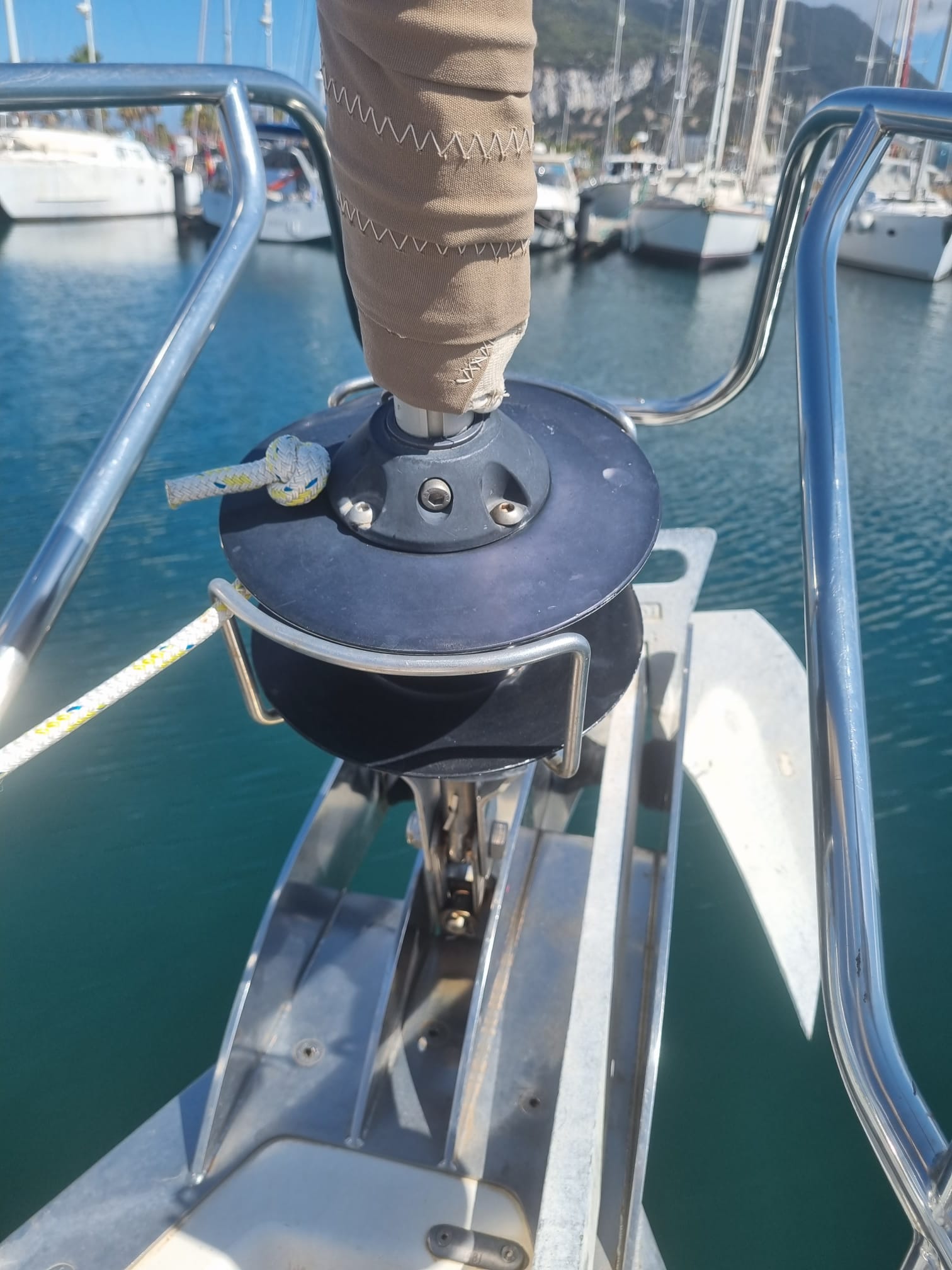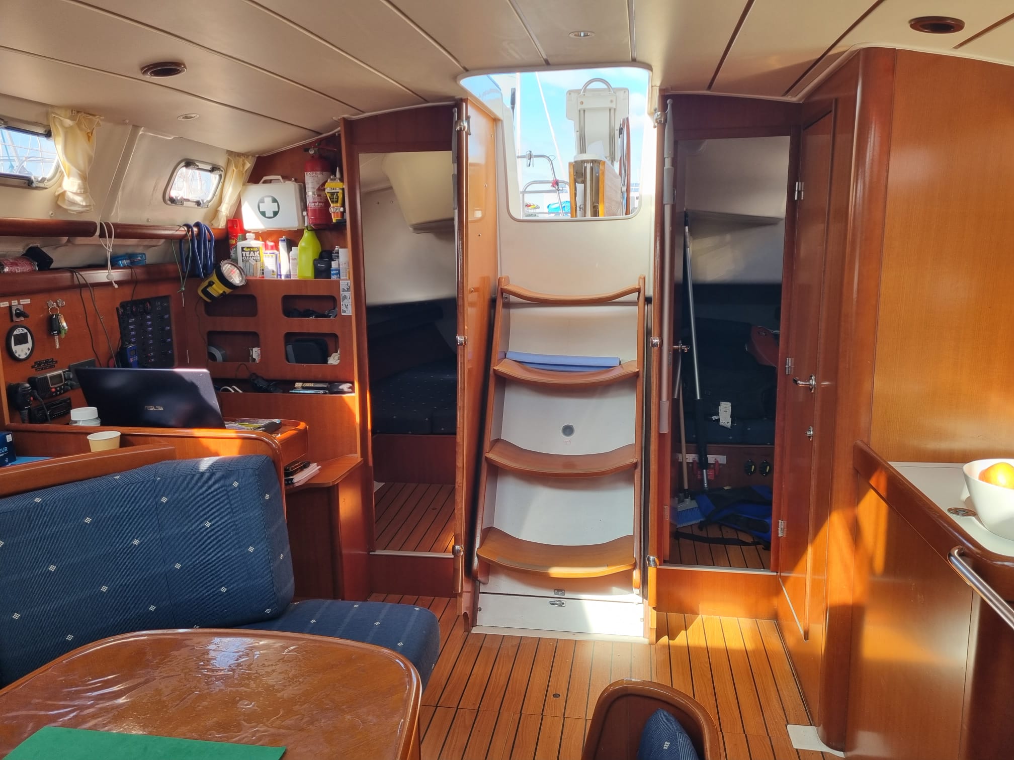 Chariot de grand voileRail d'écoute de grand voileRenvoi de drisse au cockpitEtai largablePataras DOUBLEWinchManivelle de winchWinch électriqueBarre à roue2 PHARES DE RECHERCHES SUR LE MATKLAXON DANS LE MATEnrouleur de génois FACNOR SD 180Génois REVISE EN 2022Grand voile semi-lattée REVISE EN 2022Lazy bagLazy jack