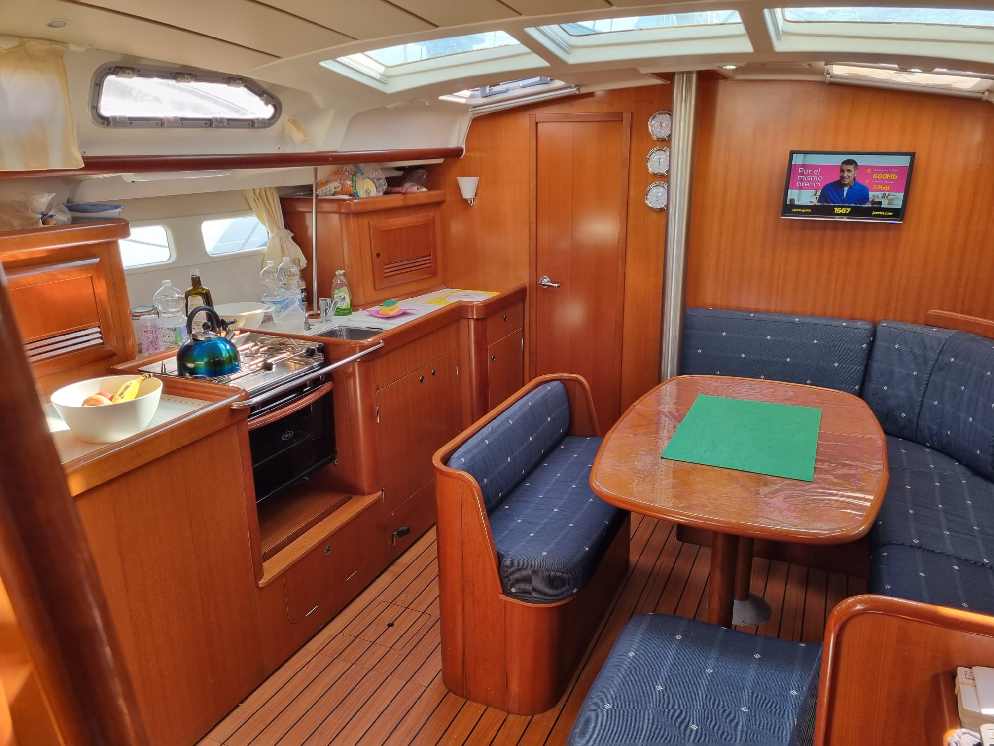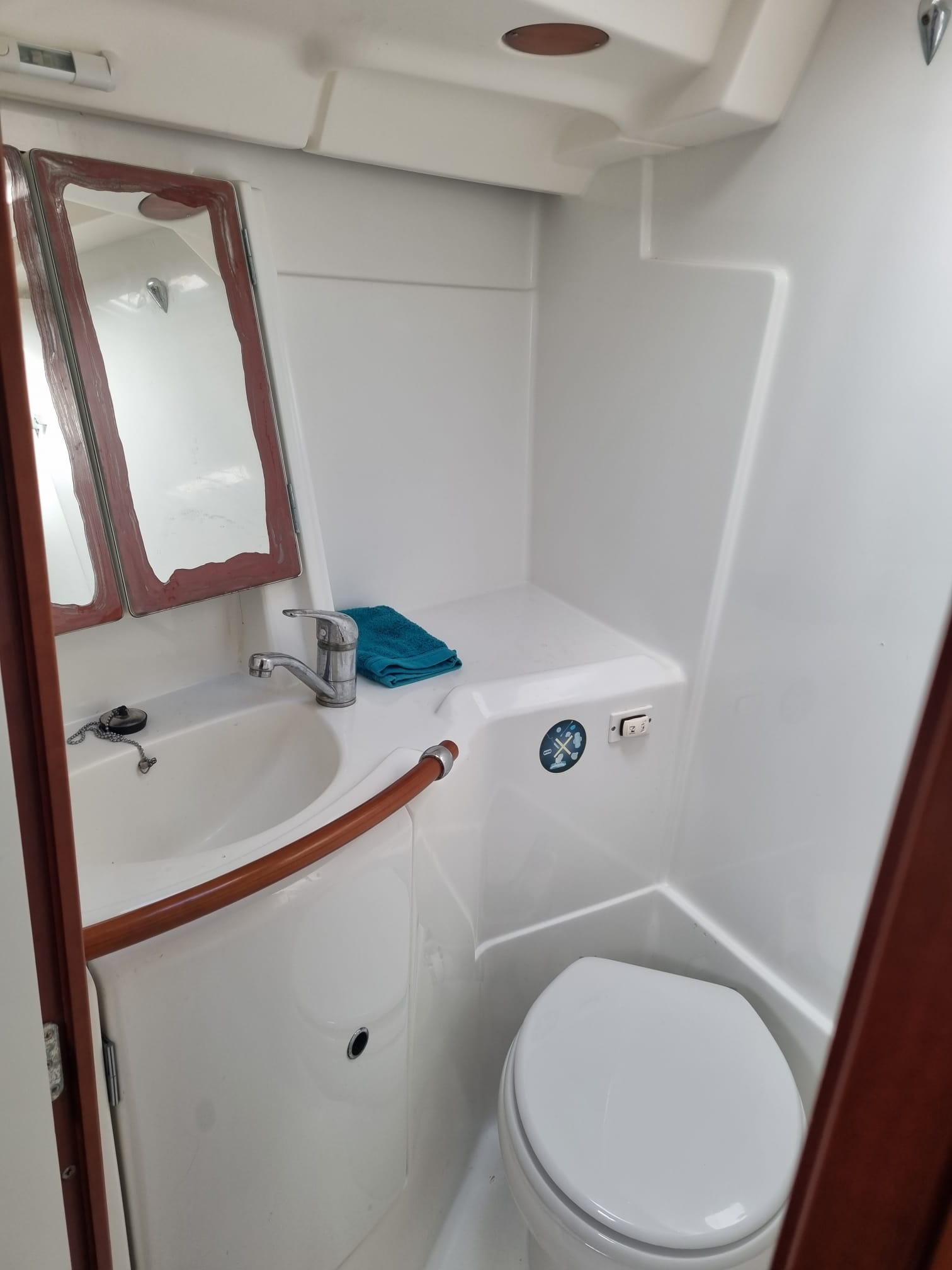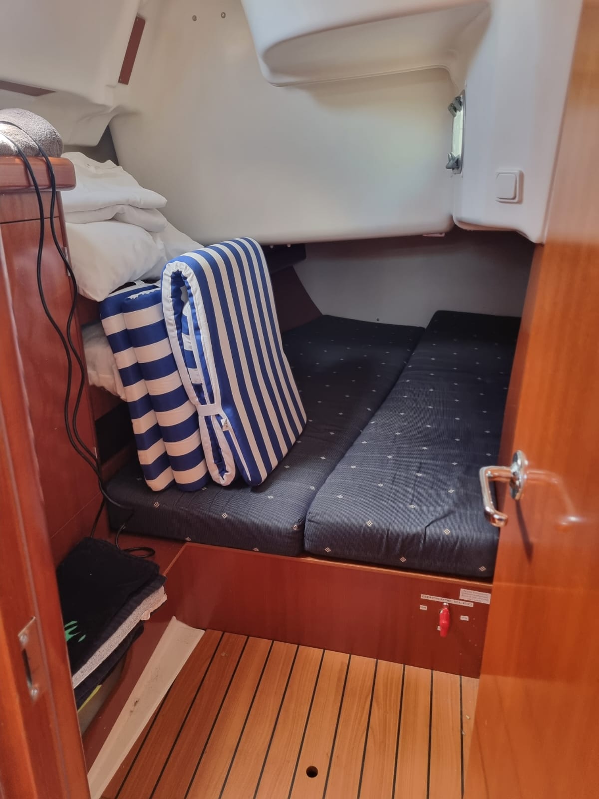 BossoirsCockpit teckPont teckPlateforme de bainEchelle de bainDouchette de cockpitTable de cockpitEclairage de cockpitCoussins de cockpitBimini topPropulseur d'étraveAncreGuindeau électriquePompe de caleCoupe-orinsArmement HAUTURIERAntifouling