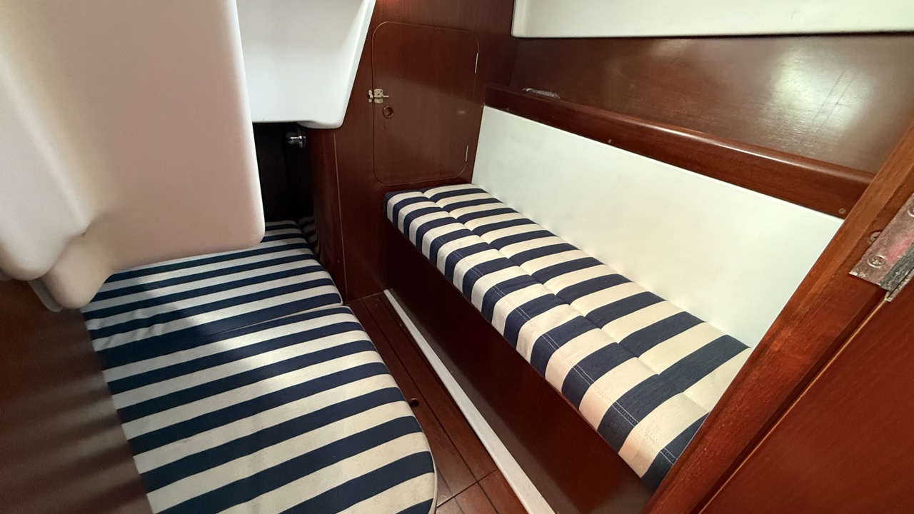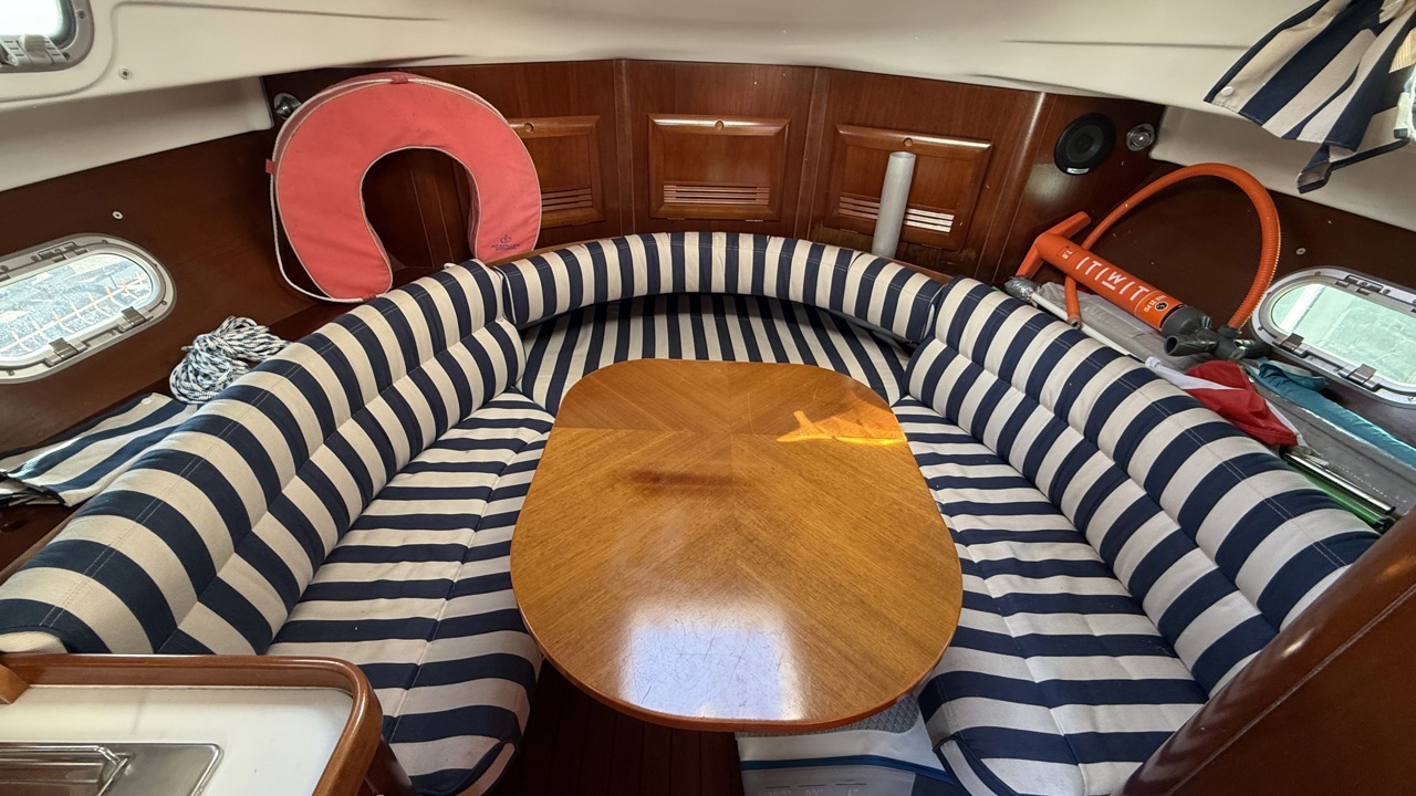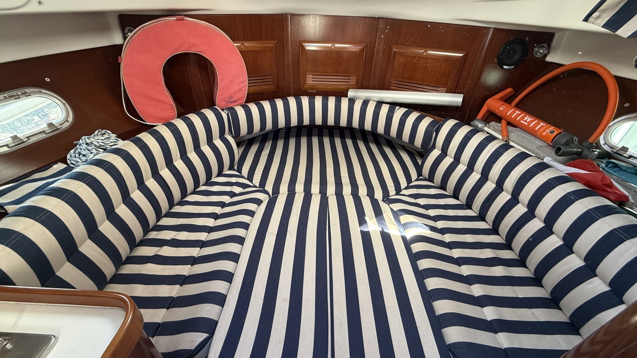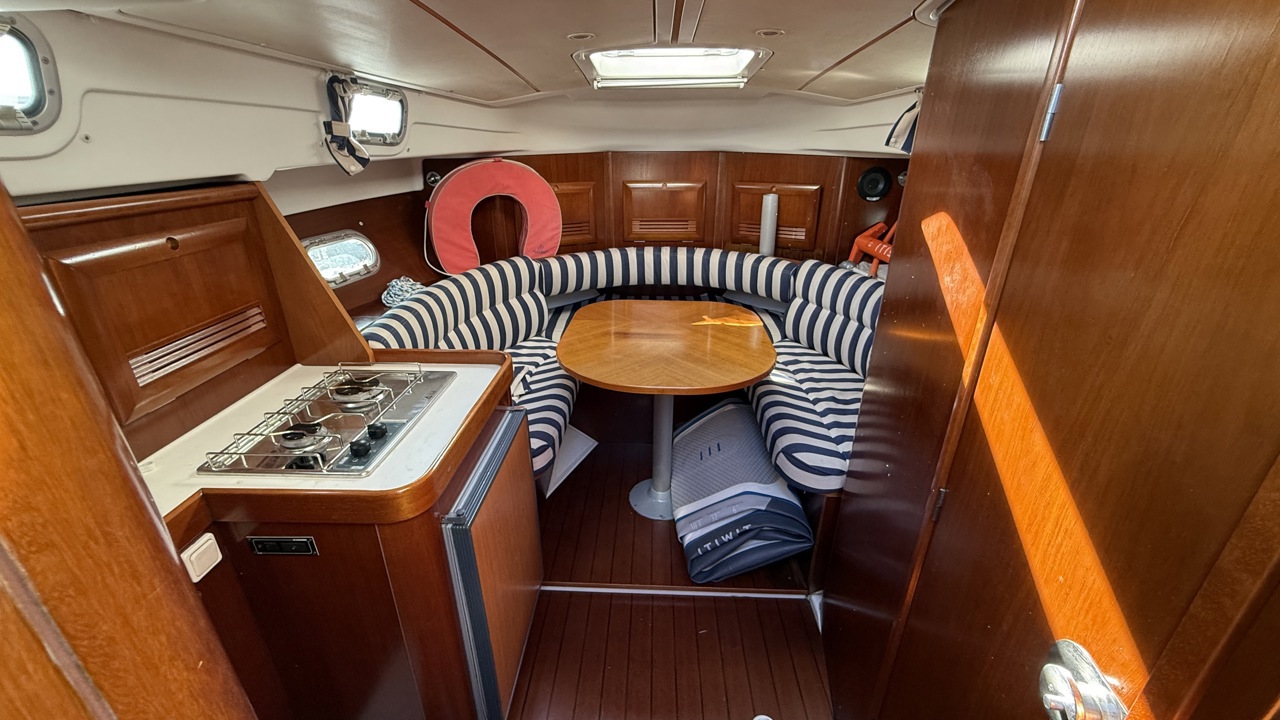 pompe de caleeau froidecockpit teckcoussin cockpitdouchette cockpittable cockpitbatteries de servicebatteries Moteurcircuit 12Vcircuit 220Vprise de quaicompasgpssondeurtraceurcapote descenteéchelle bainplateforme bainpropulseur étraveTaud de protection hivercarré transformablechauffe eauhi-firéchaudréfrigerateurwc marinsguindeau électriqueporte cannechargeur