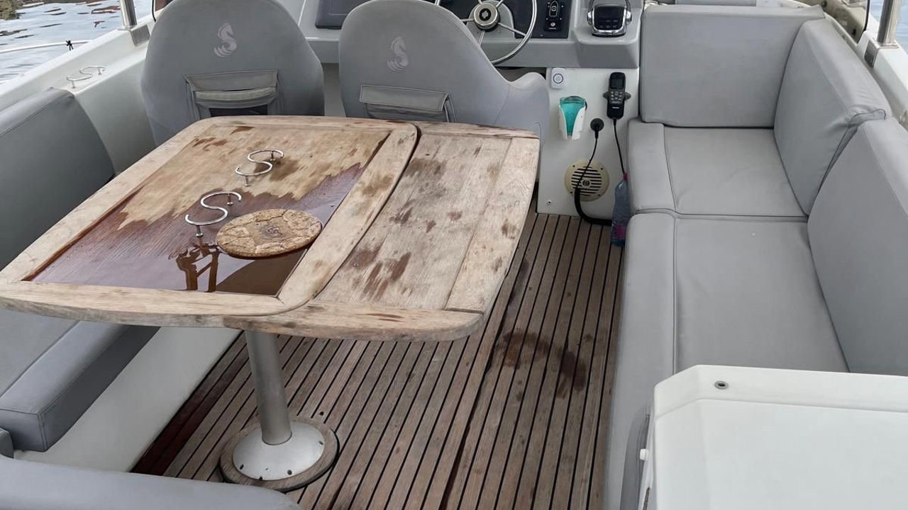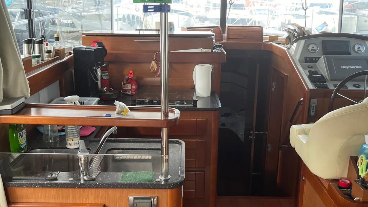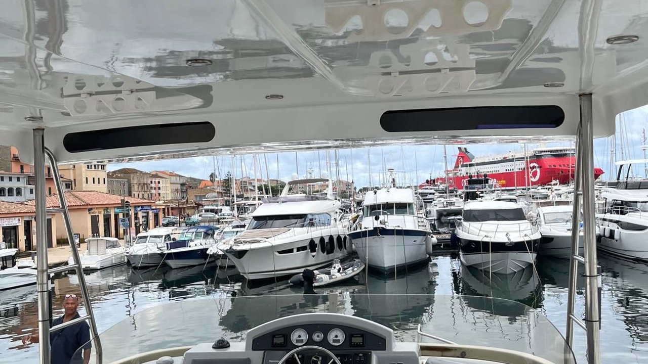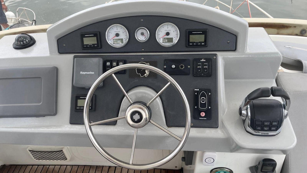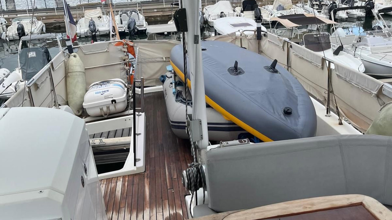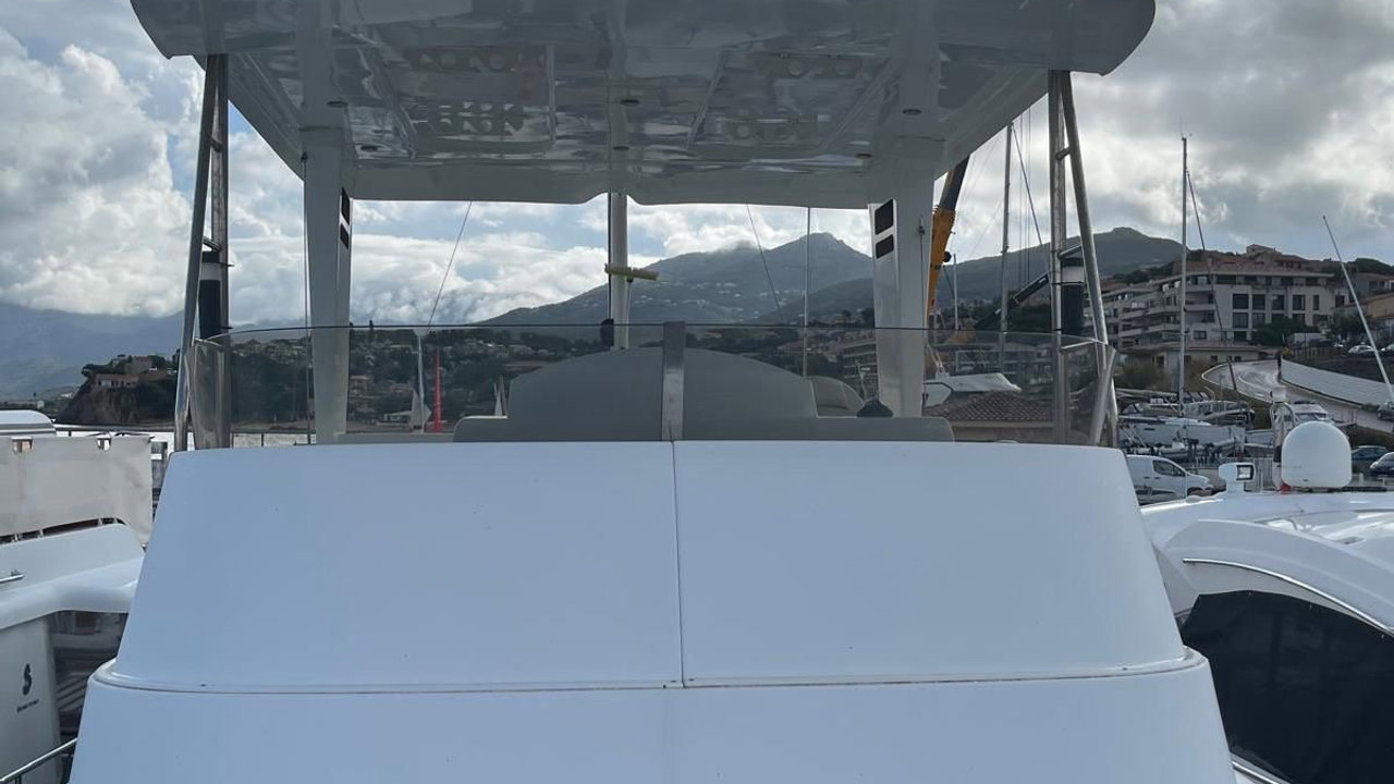 fly bridgepont teckpasserelle hydrauliquepropulseur d'étravepropulseur de poupeflapstaud fermeture arrièretaud de soleilplateforme de bainéchelle de bainbain de soleil avantcockpit teckdouchette cockpittable cockpitcoussin cockpitéclairage cockpitancreguindeau électriqueportes cannescapacité eau froidepompe de calecouleurmatérieau constructionpeinture coqueantifoulingheures bateaucarré transformableréfrigérateurcongélateurcuisinièrefourlave-lingeclimatisationchauffe-eauhi-fitélévisiondéssalinisaateurWC marinspilote autocompasVHFGPSsondeurrépetiteurradarchargeurgroupe électrogènebatteriesbatteries de servicecircuit 220Vcircuit 12Vprise de quai