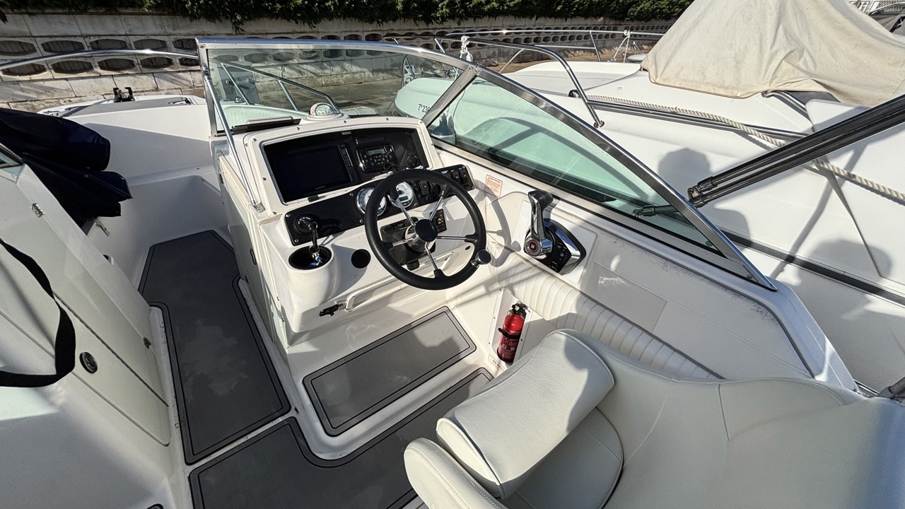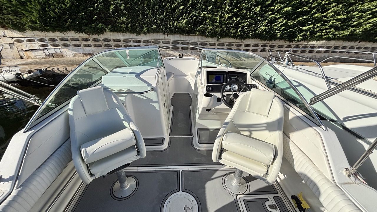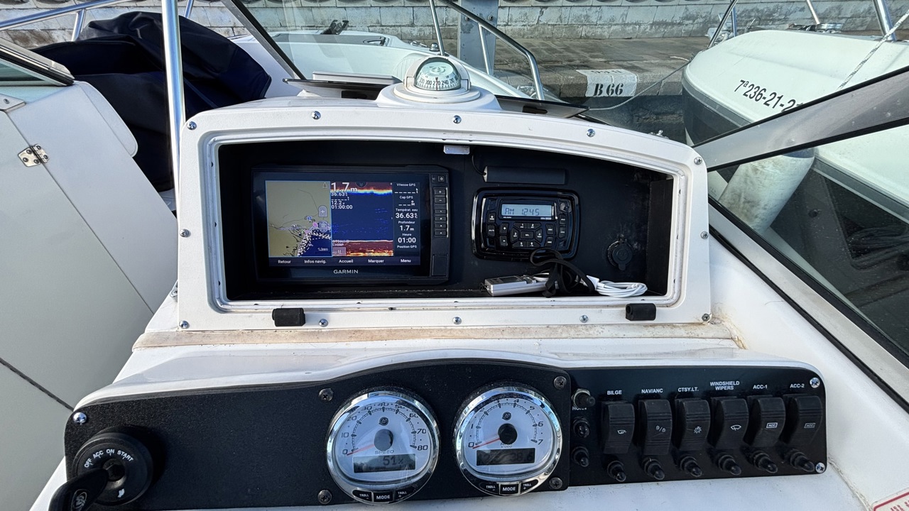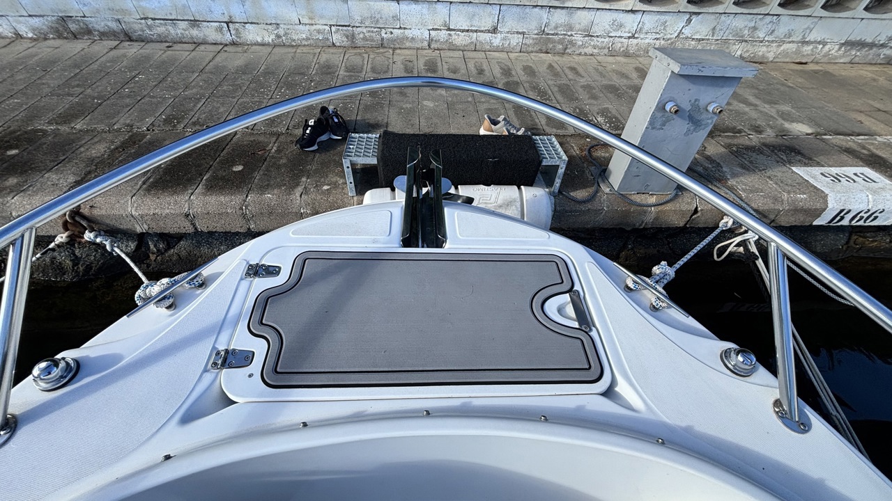 douchette cockpitcoussin cockpitRevêtement de pont réalisé en 2024biminitaud d'hivernageéchelle de bainancre et chaine 25m le tout en inoxguindeau électriquesondeur pêche