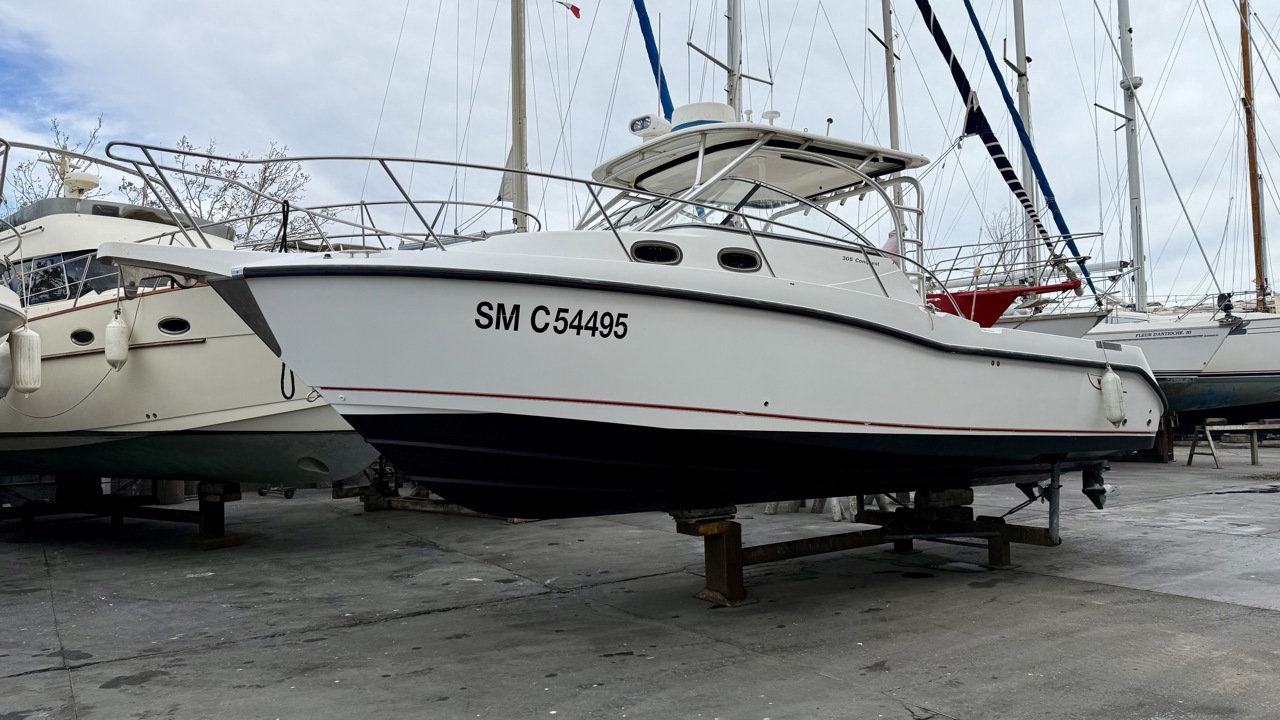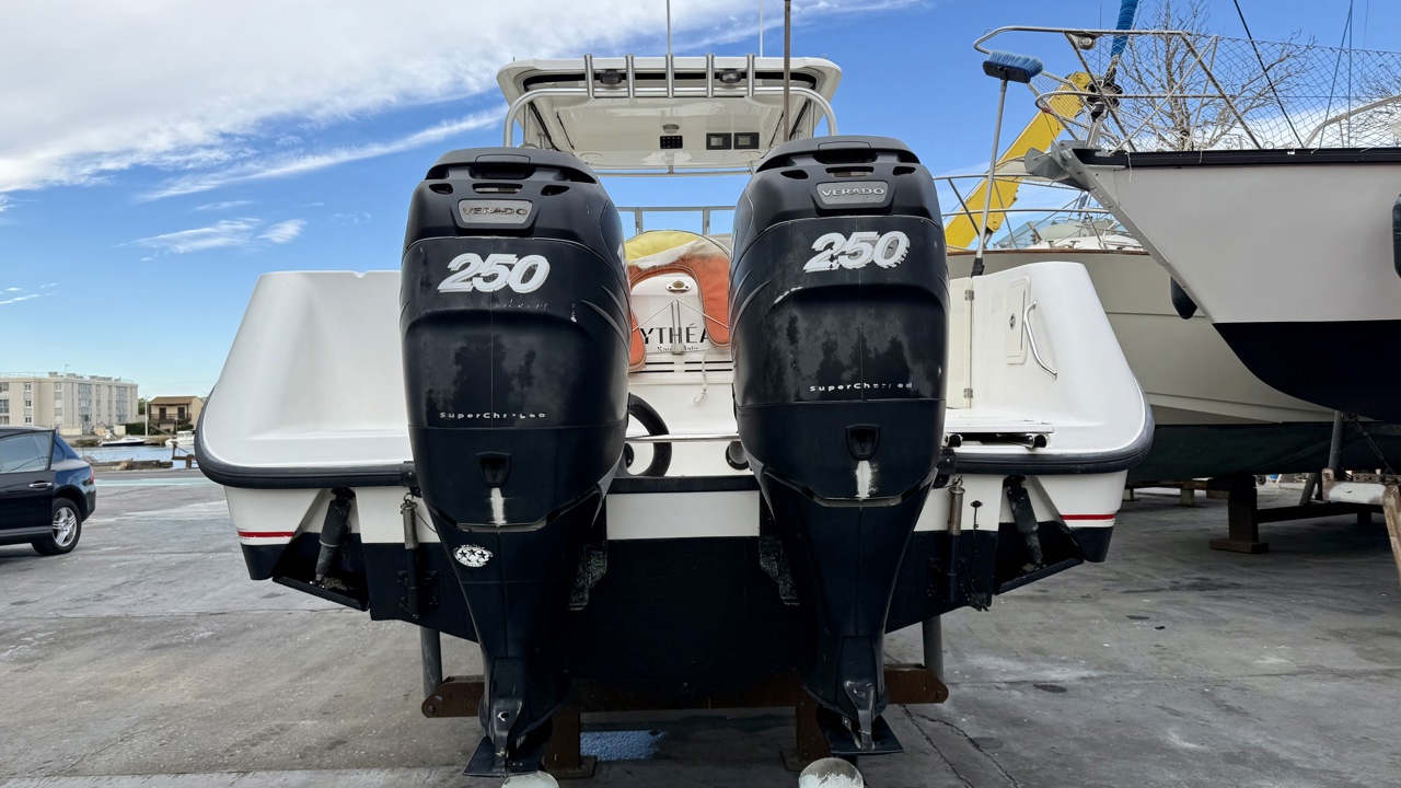 Plongez dans l’univers de la navigation haut de gamme avec ce Boston Whaler 305 Conquest de 2005, un bateau reconnu pour sa robustesse, sa polyvalence et ses performances exceptionnelles en mer. Pensé pour les amateurs de pêche hauturière et les plaisanciers exigeants, il offre un confort optimal et une fiabilité à toute épreuve, même dans des conditions maritimes difficiles. Caractéristiques générales Avec une longueur de 9,78 mètres et une largeur de 3,23 mètres, ce modèle assure une excellente stabilité en mer, parfaite pour les longues sorties. Son design ergonomique permet une circulation fluide sur le pont et une utilisation optimisée des espaces. Catégorie B, il est conçu pour affronter des conditions de navigation exigeantes avec des vents pouvant atteindre 40 nœuds et des vagues de 4 mètres. Motorisation et performances Équipé de deux moteurs Mercury de 250 CV, ce Boston Whaler 305 Conquest garantit une puissance remarquable et une maniabilité optimale. Ses moteurs hors-bord offrent une accélération fluide et une vitesse de croisière confortable, idéale pour rejoindre rapidement vos spots de pêche ou explorer des côtes lointaines. La capacité de carburant de 1 135 litres permet de longues navigations sans contrainte, offrant une belle autonomie pour les passionnés de la mer. Équipements à bord Ce bateau est conçu pour offrir un maximum de confort aux navigateurs : Cabine spacieuse, parfaite pour des séjours prolongés en mer. Couchages pour passer des nuits reposantes à bord. Cuisine équipée, avec réchaud, évier et réfrigérateur, idéale pour préparer vos repas en mer. WC et douche pour un confort optimal lors de vos escapades. Cockpit bien aménagé, avec des sièges confortables et un espace convivial pour les passagers. Électronique et sécurité Naviguez en toute tranquillité grâce à un équipement moderne : GPS et sondeur, essentiels pour une navigation précise et sécurisée. VHF, permettant de communiquer facilement en mer. Système de feux de navigation, garantissant une visibilité optimale même de nuit. Batteries entretenues, assurant un fonctionnement fiable de tous les systèmes embarqués. Ce Boston Whaler 305 Conquest de 2005 est en bon état, toujours entretenu avec soin. Aucune réparation majeure à prévoir, il est prêt à naviguer immédiatement.Marque Boston Whaler