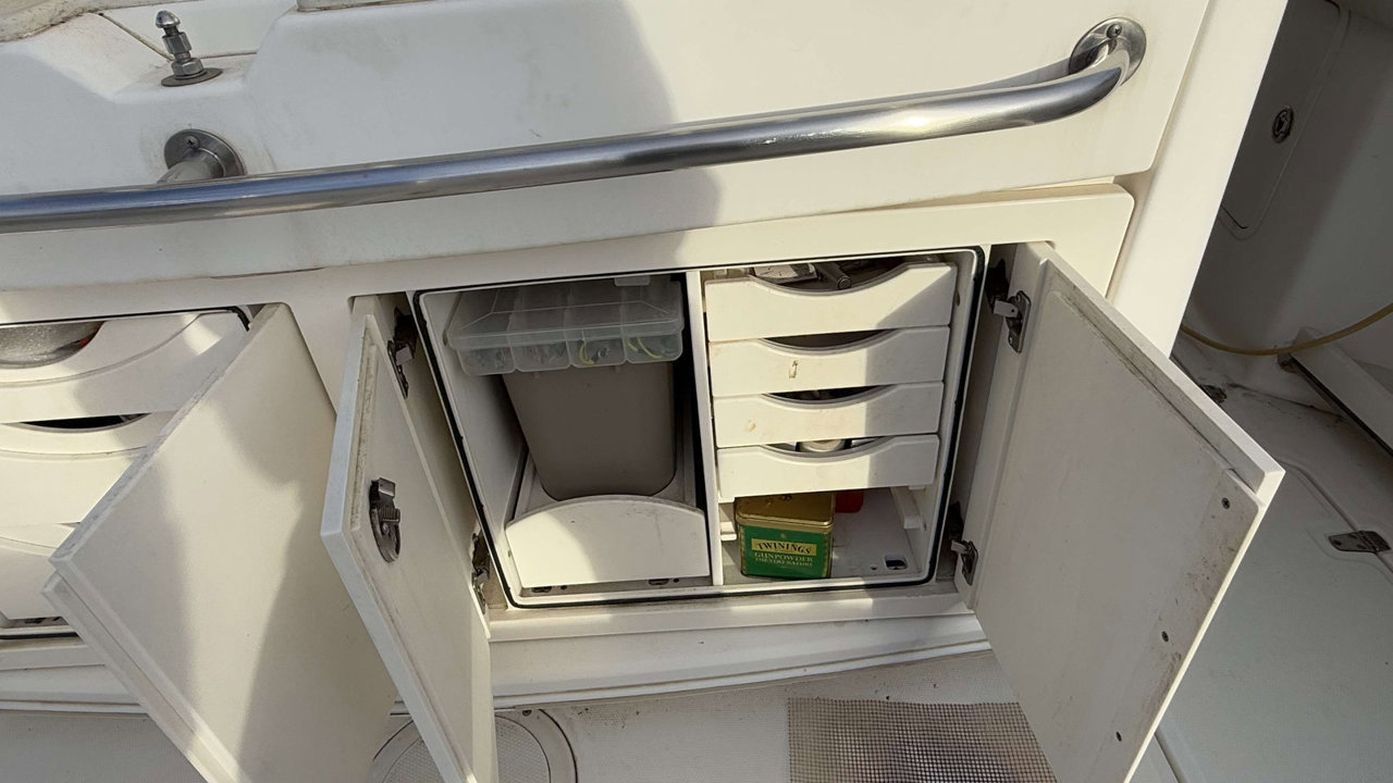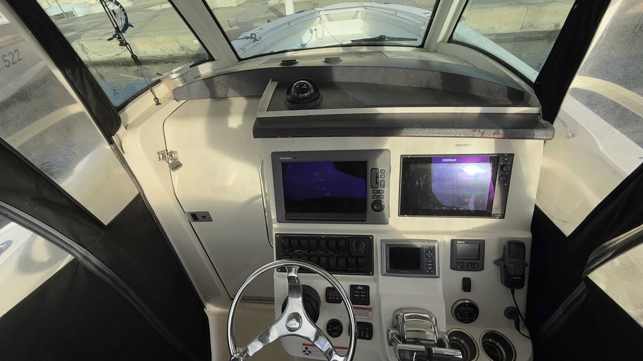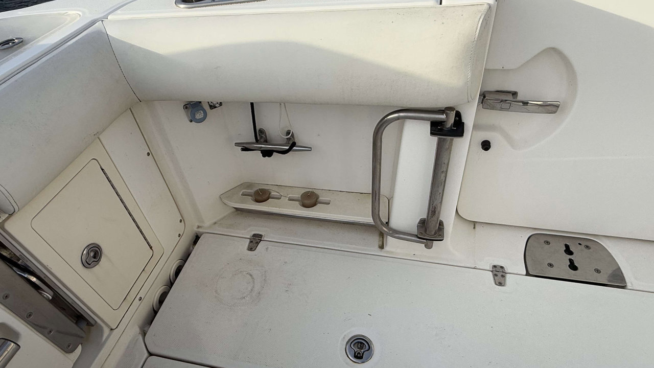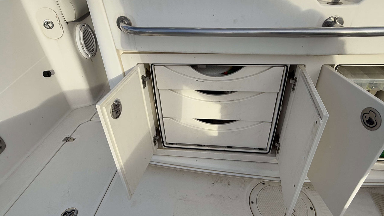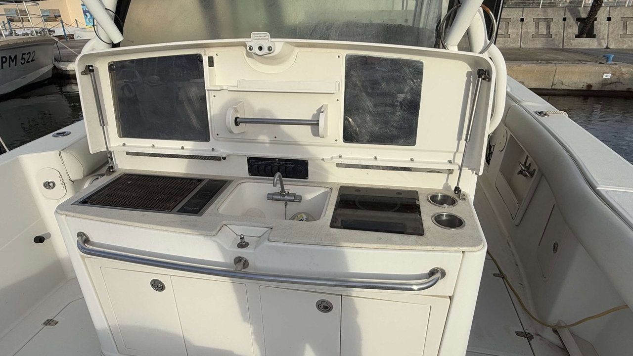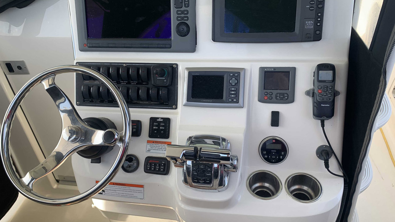 Avec ses 11,40 mètres de long et sa proue pointue comme le nez d’une fusée, le 370 Outrage est plutôt du genre imposant. Outre sa ligne tendue, ce bateau propose également un espace généreux, un haut franc-bord et un T-Top lui aussi impressionnant. A l’intérieur, si la thématique est globalement axée vers la pêche, le confort et l’aspect familial n’a pas été oublié avec notamment un petit carré avant, un solarium ou encore pas mal de places assises sur l’arrière. Comble du luxe pour un open, le Boston Whaler offre un vrai couchage double et même un lavabo ! Côté carène, on frise une fois encore l’excellence avec un bateau incisif, puissant dans la vague et très sécurisant.Marque Boston Whaler
