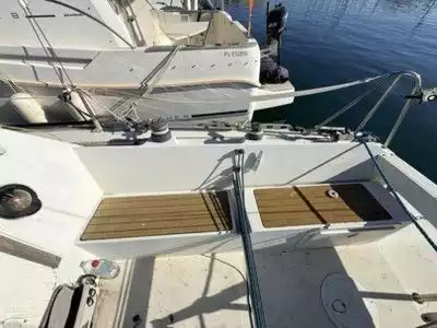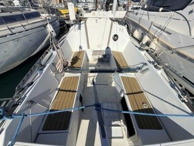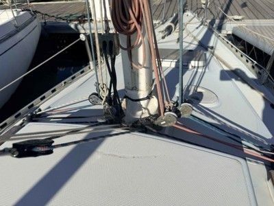 Chariot de grand voileRail d'écoute de grand voileRenvoi de drisse au cockpitWinchManivelle de winchTangon de spiGréement de spiBarre francheEnrouleur de génoisGénoisBande anti-UVGrand voileGrand voile full battenSpi ASSYMETRIQUE ET SYMETRIQUESolentTrinquetteInterLazy bagLazy jack