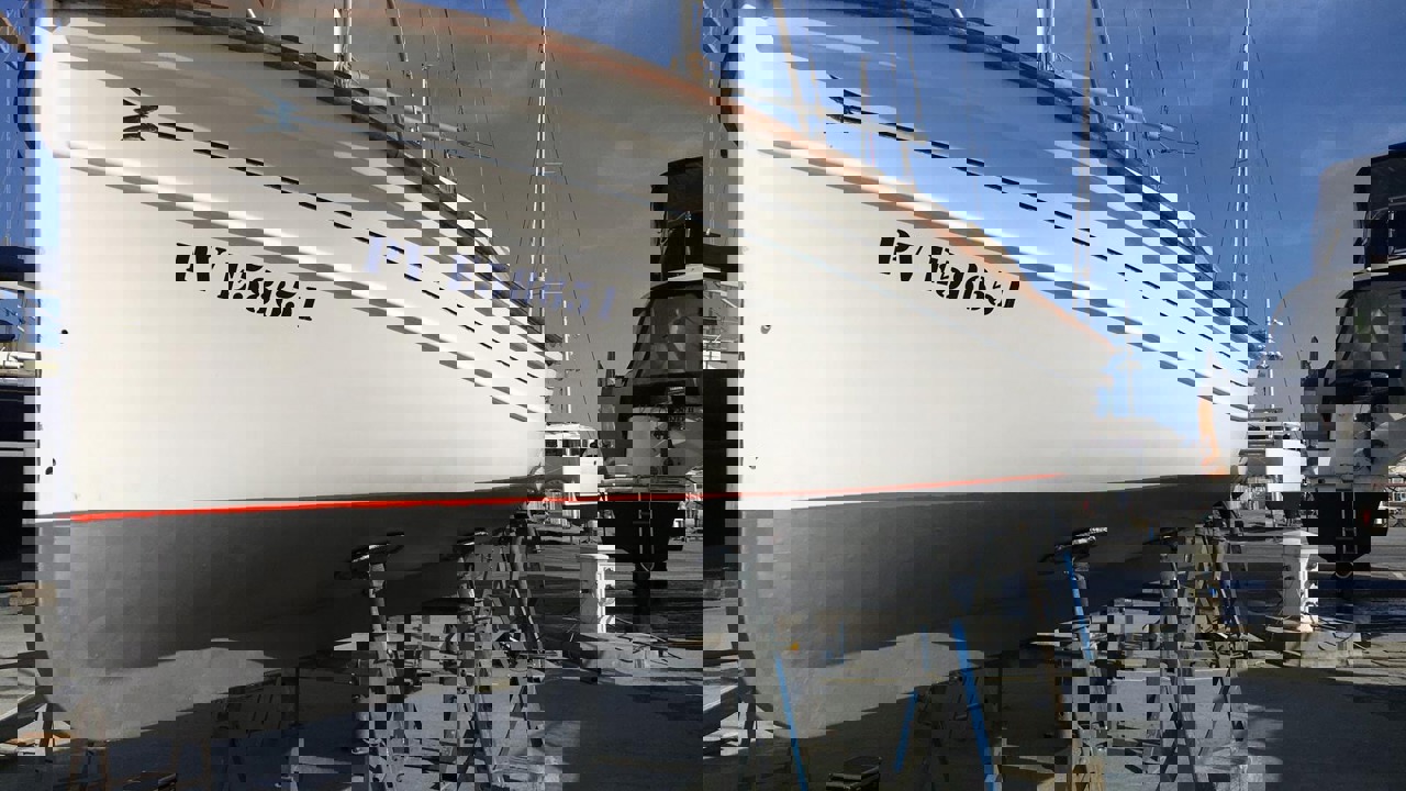 antifoulingpompe de calebarre franchedouchette cockpitbatteriesbatteries de servicechargeurcircuit 12Vcircuit 220Vprise de quaipilote autoVHFéchelle de bainplateforme de bainglacièrehi-firéfrigérateurWC marinsancreguindeau électriquecapacité eau froidegenoisgrand voile
