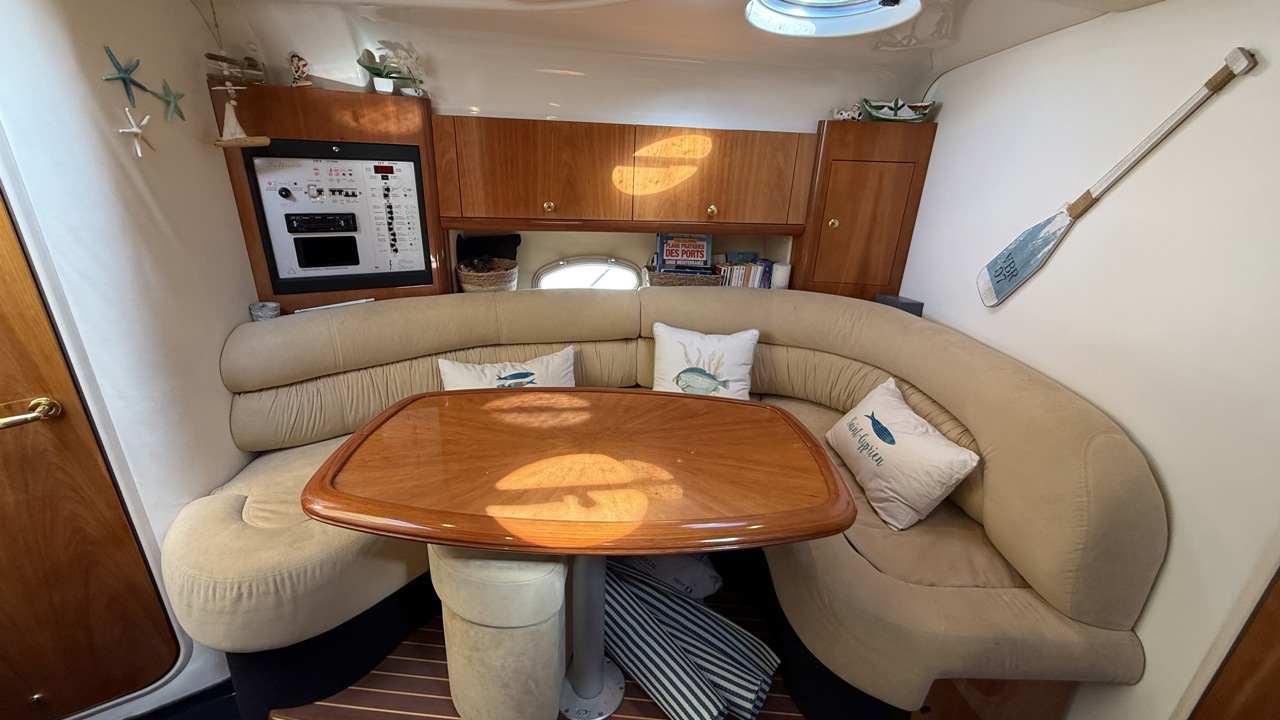 coussin cockpitdouchette cockpitéclairage cockpittable cockpitbain de soleil arrièrebain de soleil avantéchelle de bainflapspasserelle hydrauliqueplateforme de baintaud fermeture arrièretaud de soleilancreguindeau électrique