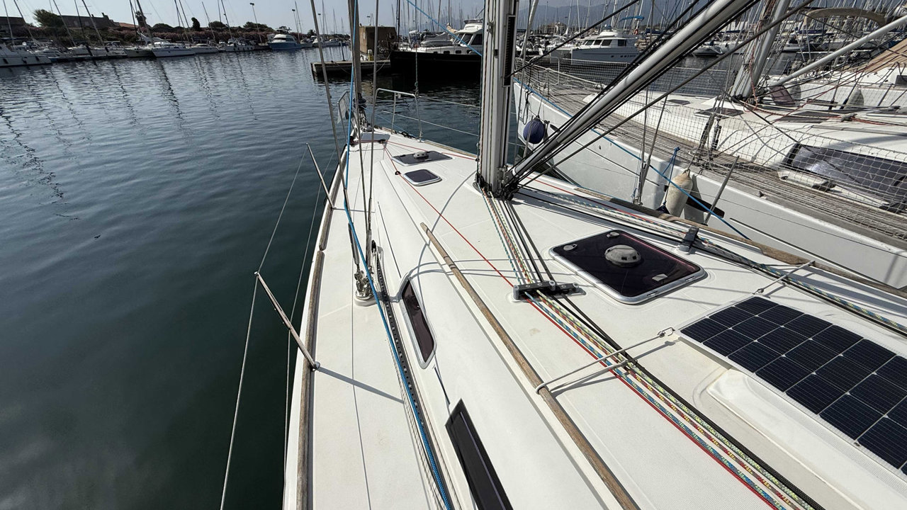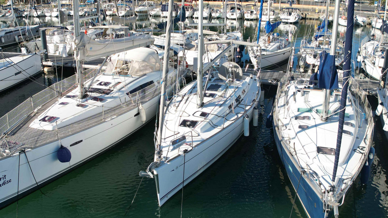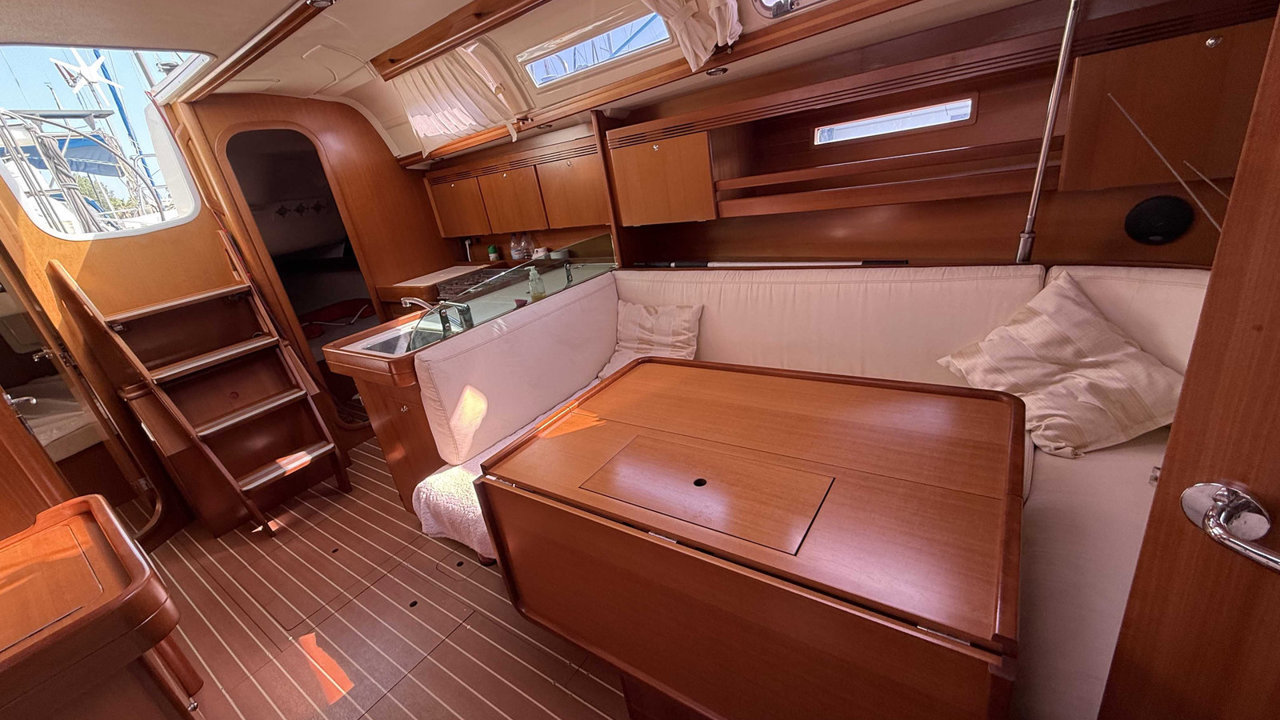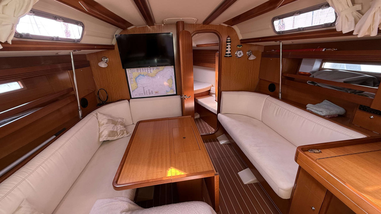 Le Dufour 40 de 2007, conçu par Umberto Felci et produit par Dufour Yachts, est un voilier de croisière-régate apprécié pour ses performances et son confort. Mesurant 12,32 mètres de longueur avec une largeur de 3,89 mètres et un tirant d'eau d'environ 2,10 mètres, il affiche un déplacement d'environ 7,9 tonnes. Équipé d'un moteur Volvo Penta de 55 chevaux, il offre une surface de voile d'environ 87 m². Le cockpit spacieux, avec une table pliante, et l'intérieur lumineux, garantissent confort et praticité. La cuisine est bien équipée, incluant plaques de cuisson, four et réfrigérateur. Ses performances en navigation sont remarquables, alliant vitesse et stabilité, ce qui le rend adapté aussi bien à la croisière qu'à la régate. Le Dufour 40 se distingue par ses matériaux de haute qualité, ses finitions élégantes en bois, et une conception optimisée pour une navigation efficace. C’est un choix idéal pour les plaisanciers exigeants.Marque Dufour