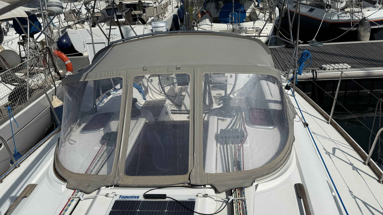 propulseur d'étravebiminicapote descentetaud de soleiléchelle de baincockpit teckdouchette cockpittable cockpitbarre à roueancreguindeau électriqueportes cannescouleurmatériau de constructionantifoulingannexemoteur annexe