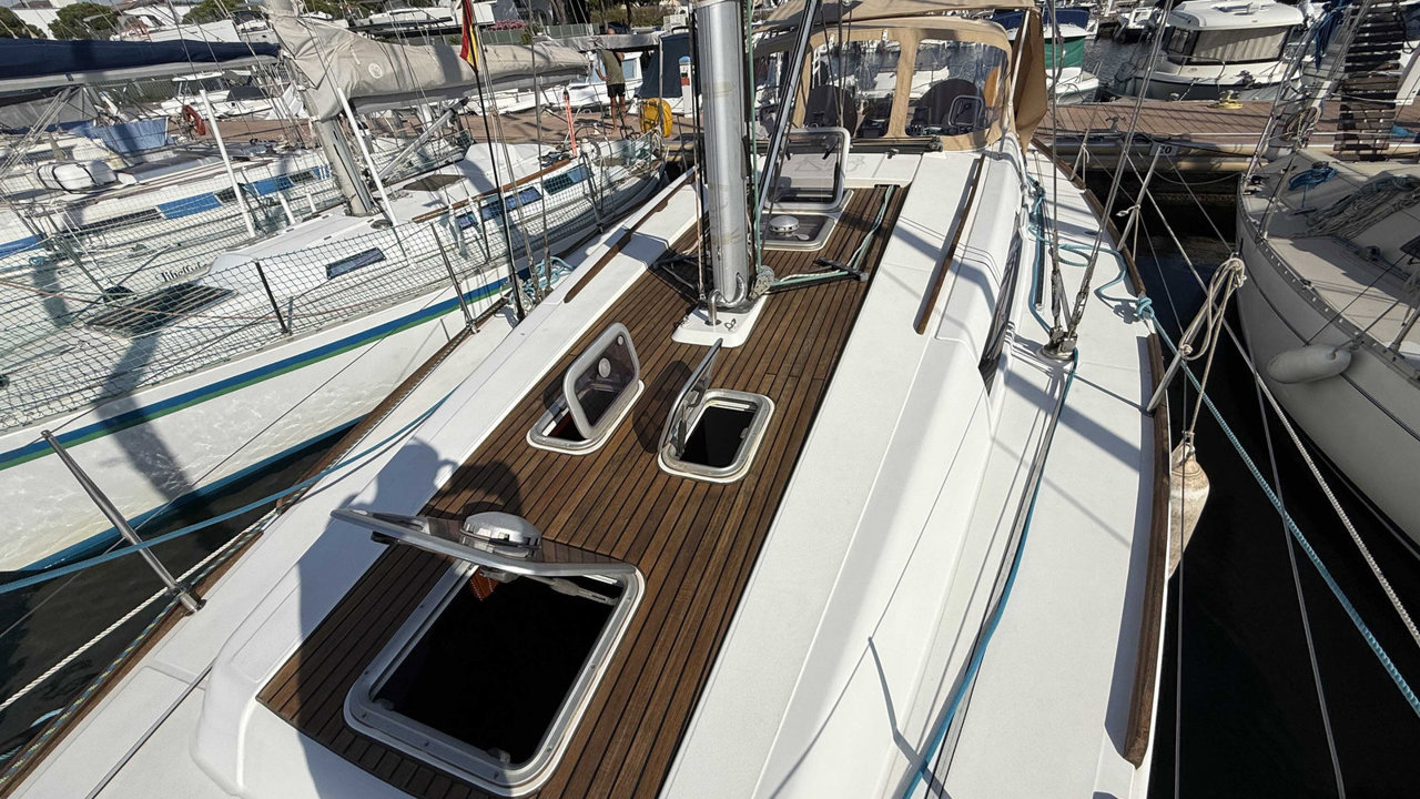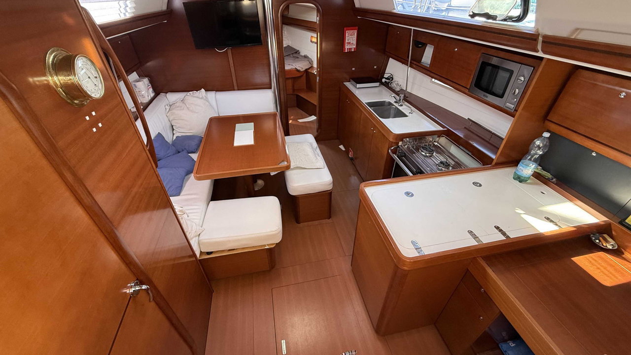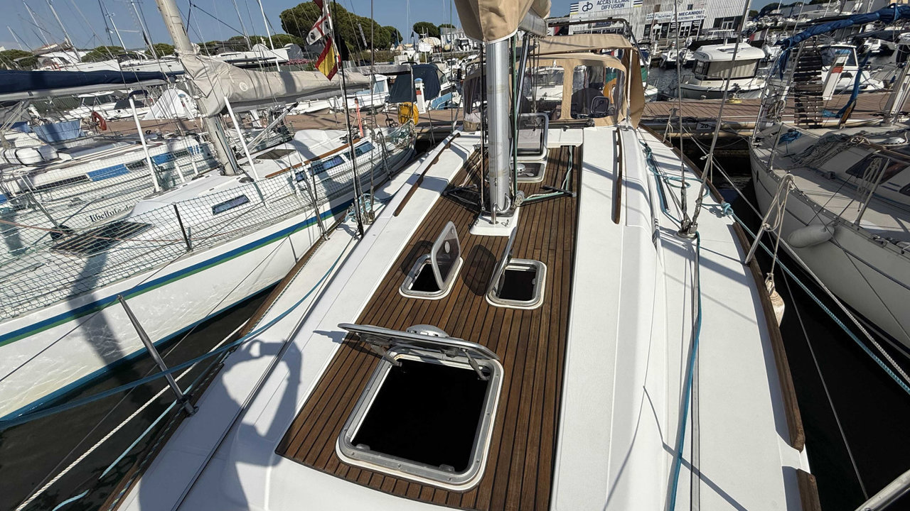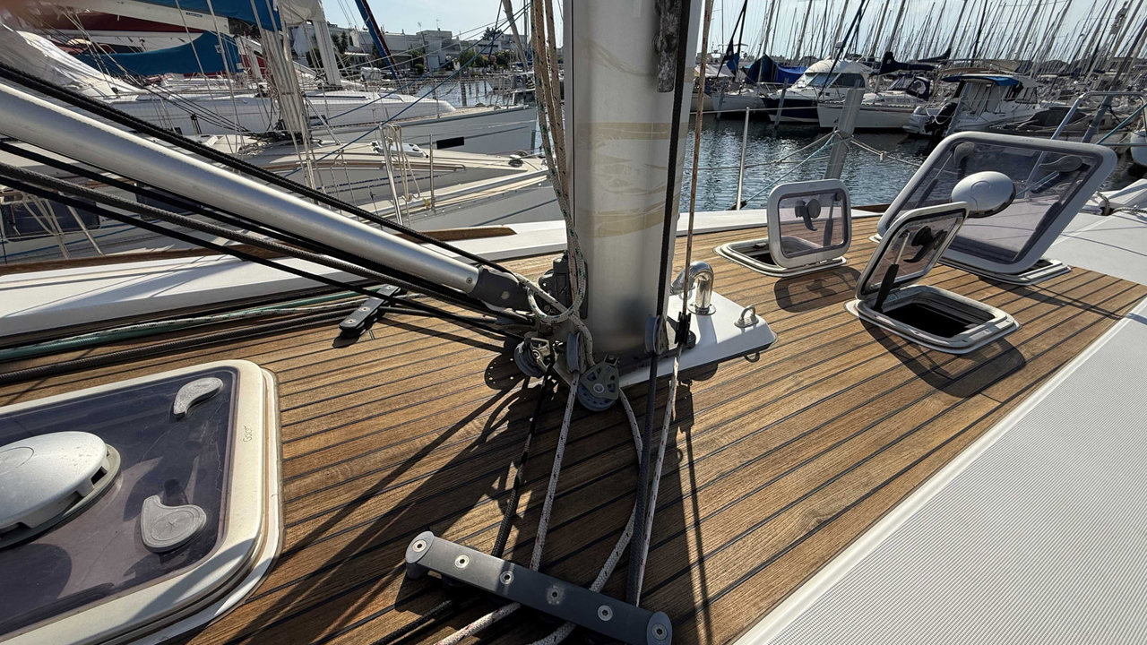 antifoulingcouleurheures bateaumatérieau constructionpompe de calesurviebarre à rouecockpit teckcoussin cockpitdouchette cockpitéclairage cockpittable cockpitalternateurbatterieschargeurcircuit 12Vcircuit 220Vpanneau solaireprise de quaiantennecompasgirouetteGPSloch speedopilote autosondeurVHFbiminicapote descenteéchelle de bainplateforme de bainpont teckpropulseur d'étravechauffe-eaucuisinièrefourhi-fimicro ondesréfrigérateurtable à cartestélévisionWC marinsancreguindeau électriquecapacité eau froidebande anti UVchariot grand voileenrouleurgenoisgrand voilelazy baglazy jackmanivelle de winchrail grand voilerenvoi de drissewinchwinch électrique