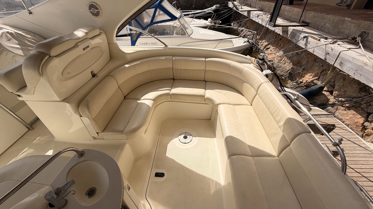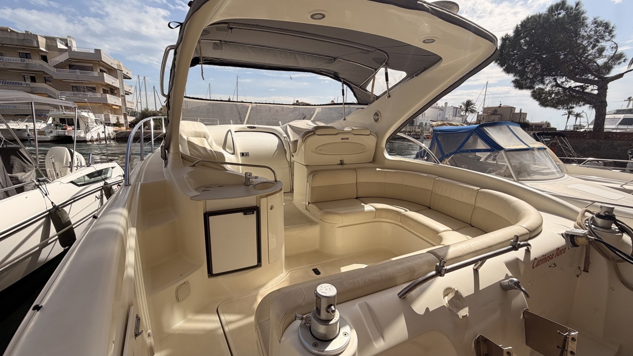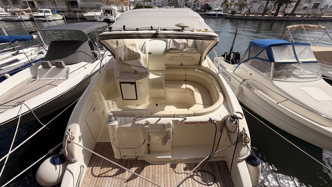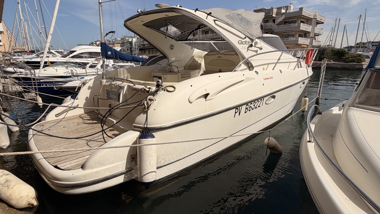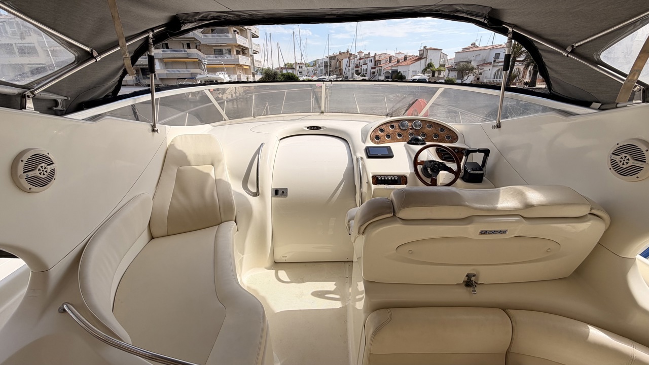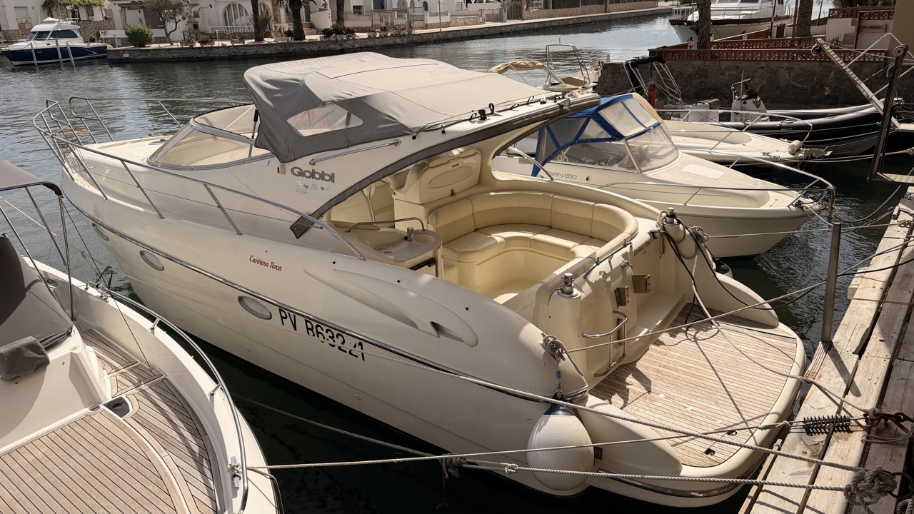 Gobbi 345 SC de 2001 équipé de deux moteurs Volvo Penta KAD43 pour un total de 460 CV, offrant confort et bonne tenue en mer. Ce cabin cruiser de 11,30 m dispose de 2 cabines avec 5 couchages, d’un cockpit spacieux, d’une cuisine équipée et d’une salle d’eau avec WC. Bateau entretenu avec factures à l’appui : révisions moteurs, interventions mécaniques, antifouling régulier et entretien transmission. Équipements : bains de soleil avant et arrière, plateforme de bain en teck, guindeau électrique, table cockpit, douchette cockpit, bimini, tauds, réfrigérateur, cuisinière, micro-ondes, GPS, sondeur, VHF, circuit 12V / 220V. Idéal pour les sorties à la journée comme pour les croisières. Visible à Empuriabrava (Costa Brava). Prix : 74 900 €Marque Gobbi