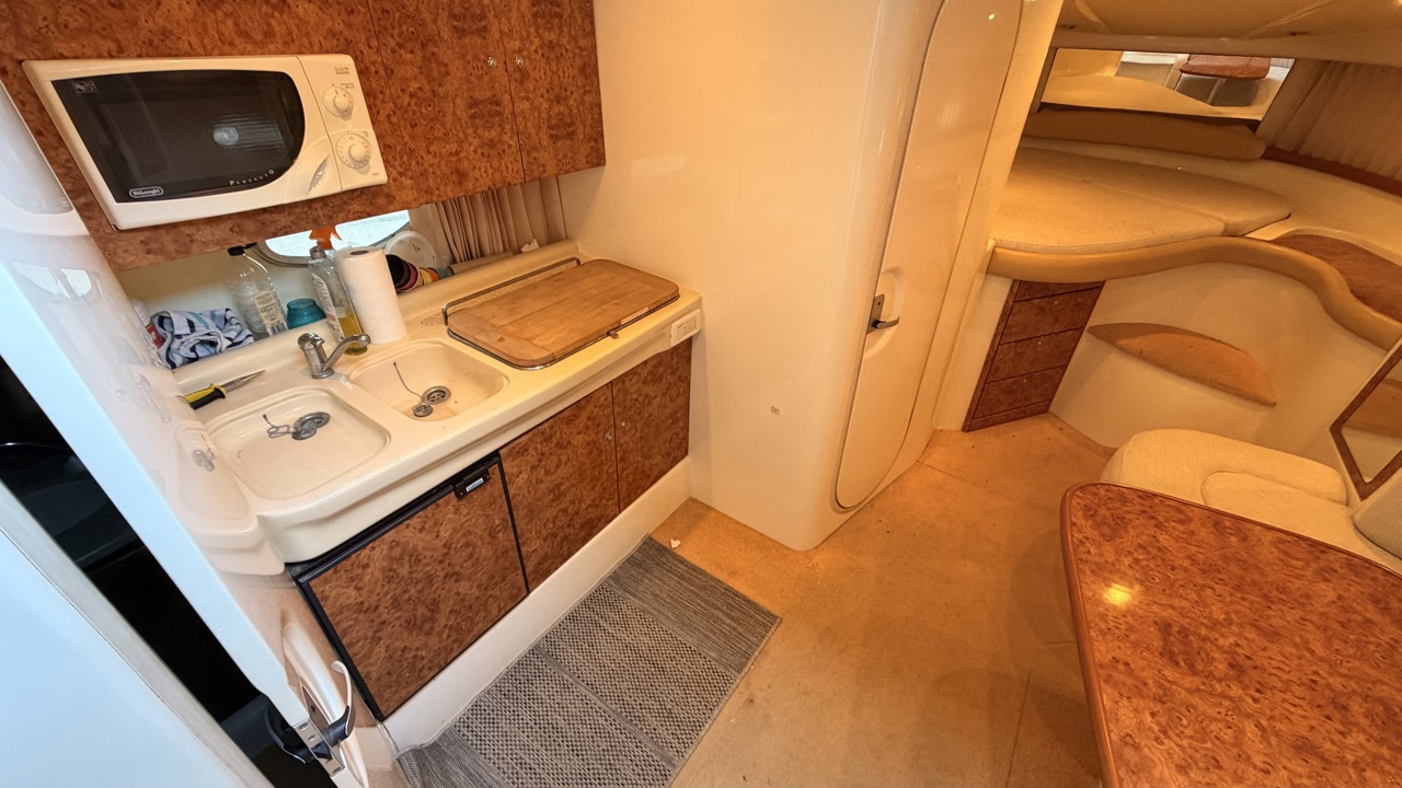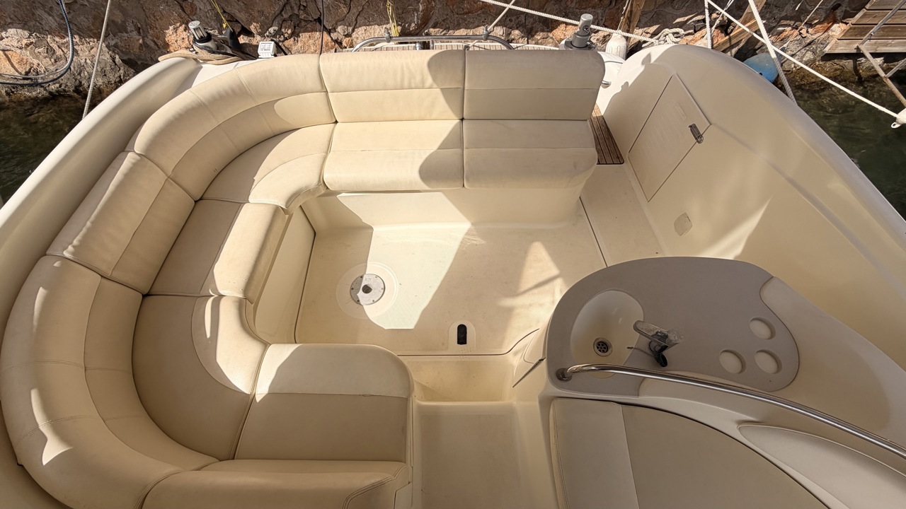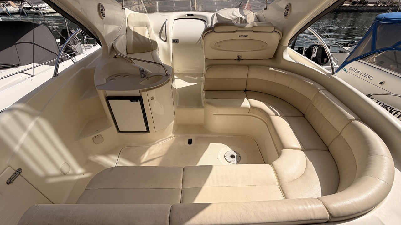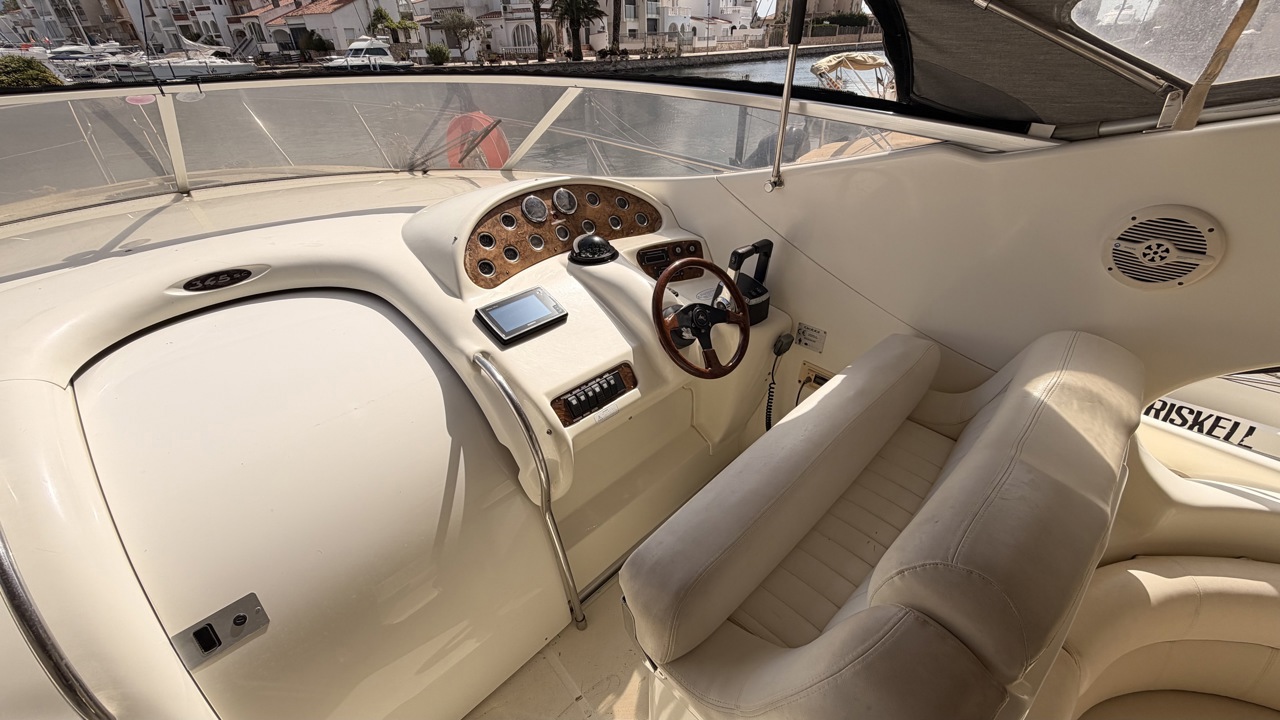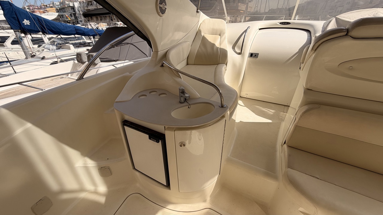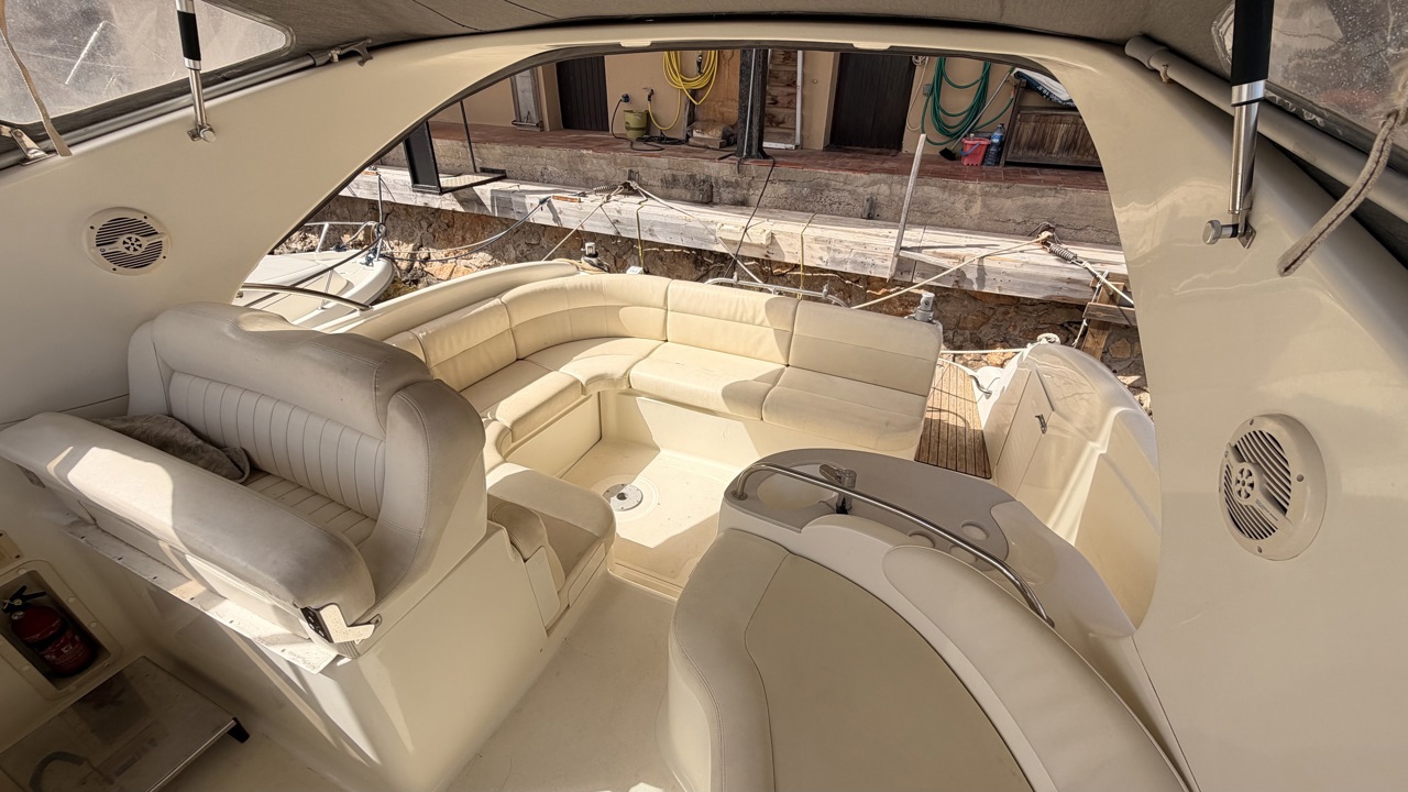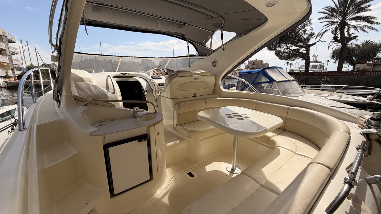 Gobbi 345 SC de 2001 équipé de deux moteurs Volvo Penta KAD43 pour un total de 460 CV, offrant confort et bonne tenue en mer. Ce cabin cruiser de 11,30 m dispose de 2 cabines avec 5 couchages, d’un cockpit spacieux, d’une cuisine équipée et d’une salle d’eau avec WC. Bateau entretenu avec factures à l’appui : révisions moteurs, interventions mécaniques, antifouling régulier et entretien transmission. Équipements : bains de soleil avant et arrière, plateforme de bain en teck, guindeau électrique, table cockpit, douchette cockpit, bimini, tauds, réfrigérateur, cuisinière, micro-ondes, GPS, sondeur, VHF, circuit 12V / 220V. Idéal pour les sorties à la journée comme pour les croisières. Visible à Empuriabrava (Costa Brava). Prix : 74 900 €Marque Gobbi