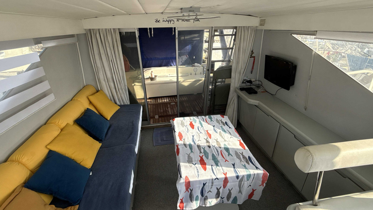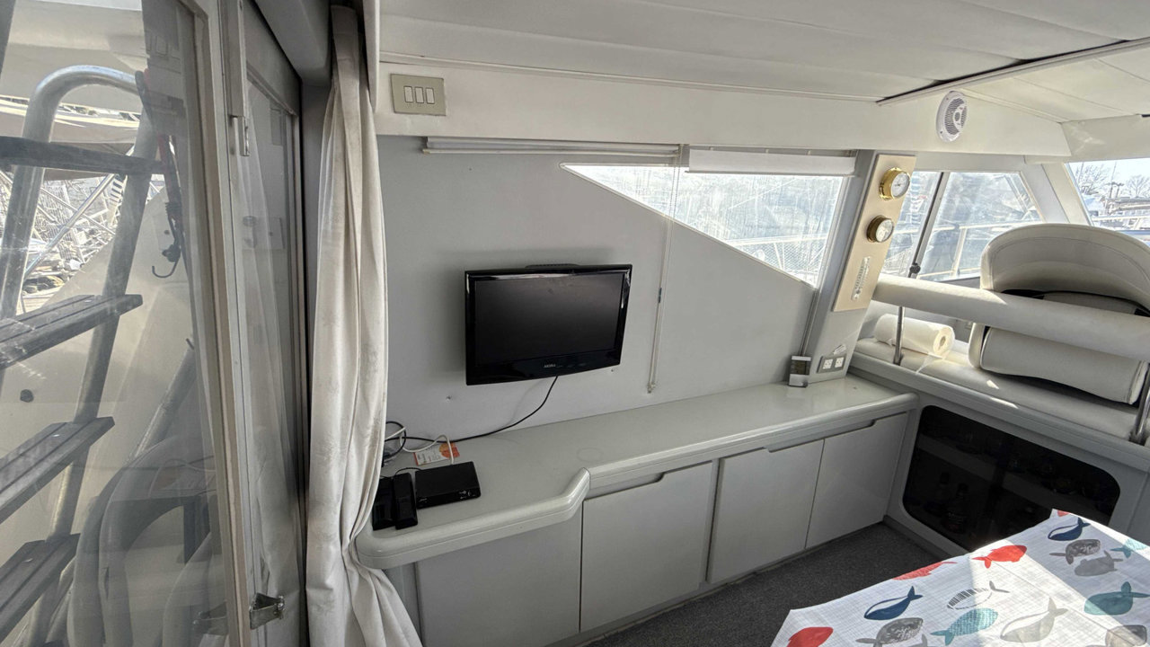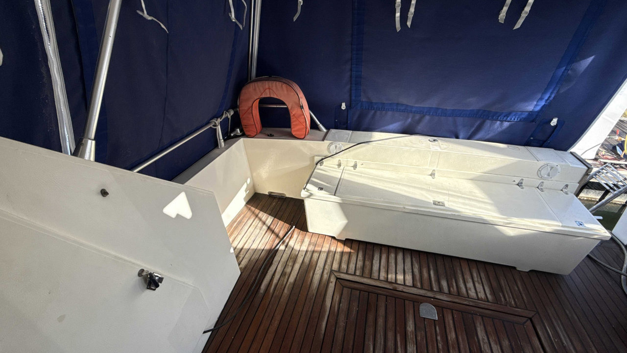cockpit teckdouchette cockpitéclairage cockpittable cockpitbain de soleil avantbiminibossoirséchelle de bainflapsfly bridgepasserelle hydrauliqueplateforme de baintaud fermeture arrièreancreguindeau électrique