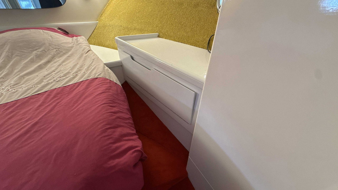 Le Guy Couach 1201 Fly de 1988 est un yacht de luxe, combinant performance et confort. Avec ses lignes élégantes et son flybridge spacieux, ce modèle est idéal pour les amateurs de navigation en haute mer. Il dispose de deux moteurs puissants, permettant une vitesse optimale tout en offrant une stabilité remarquable. L’intérieur, raffiné et bien agencé, comprend un salon lumineux, une cuisine équipée, et plusieurs cabines confortables pour accueillir jusqu’à six personnes. Ce bateau est aussi bien adapté pour les croisières longues que pour les sorties plus courtes. Son design intemporel et sa robustesse en font un choix prisé parmi les passionnés de yachts. Parfait pour ceux qui recherchent un équilibre entre luxe, performance et fiabilité, le Guy Couach 1201 Fly est un modèle d’exception sur le marché des yachts d'occasion.Marque Guy Couach