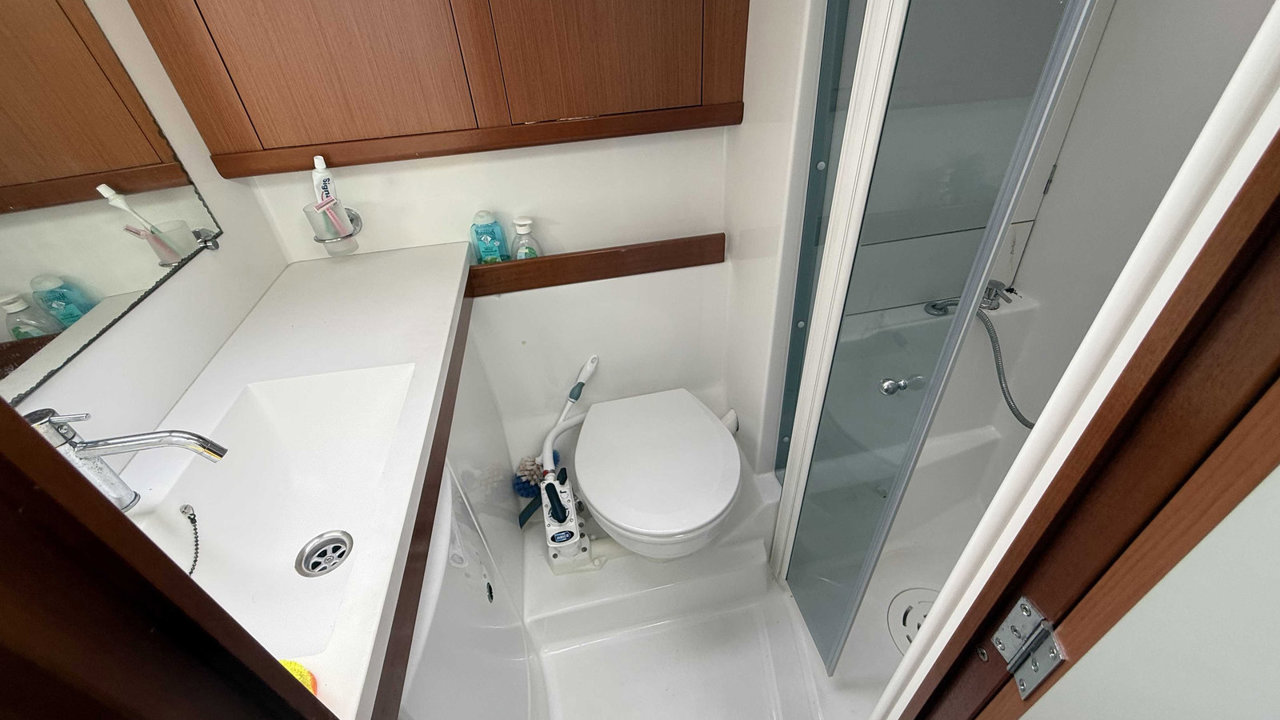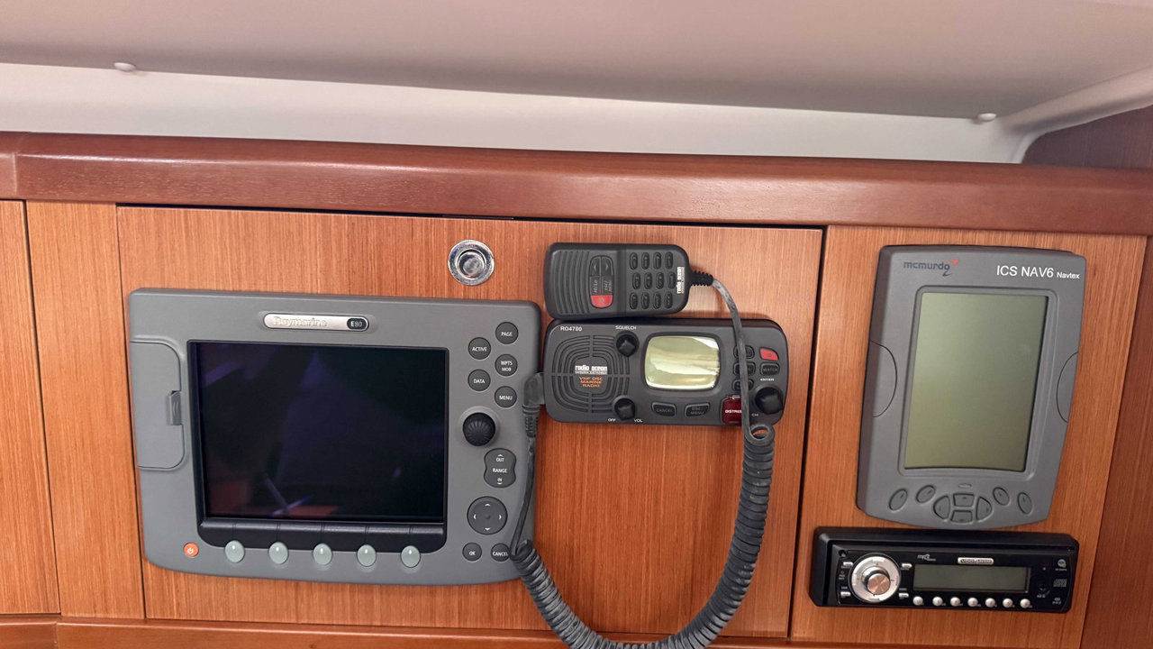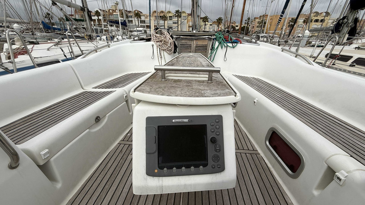 pont teckpropulseur d'étravebiminicapote descenteplateforme de bainéchelle de baincockpit teckdouchette cockpittable cockpitbarre à roueancreguindeau électriquegenoisgrand voilespichaussette de spigréement de spiwinchenrouleurenrouleur de grand voilecapacité eau froidecapacité eau noiresurviepompe de calecouleurmatérieau constructionantifoulingheures bateauannexemoteur annexecarré transformabletable à cartesréfrigérateurcongélateurréchaudfourclimatisationchauffagechauffe-eauradio-cdhi-fitélévisionWC marinspilote autocompasloch speedogirouetteVHFGPStraceursondeurrépetiteurradarchargeurbatteriesbatteries de servicecircuit 220Vcircuit 12Vprise de quai