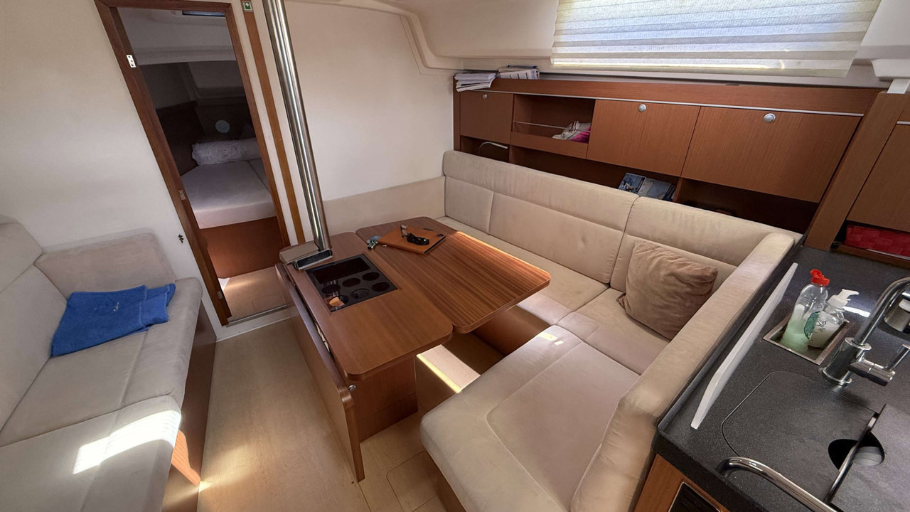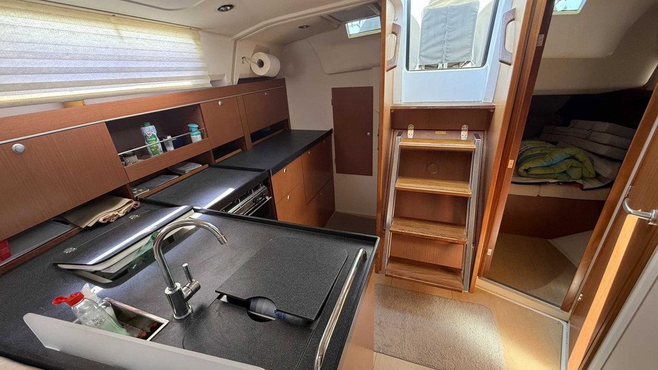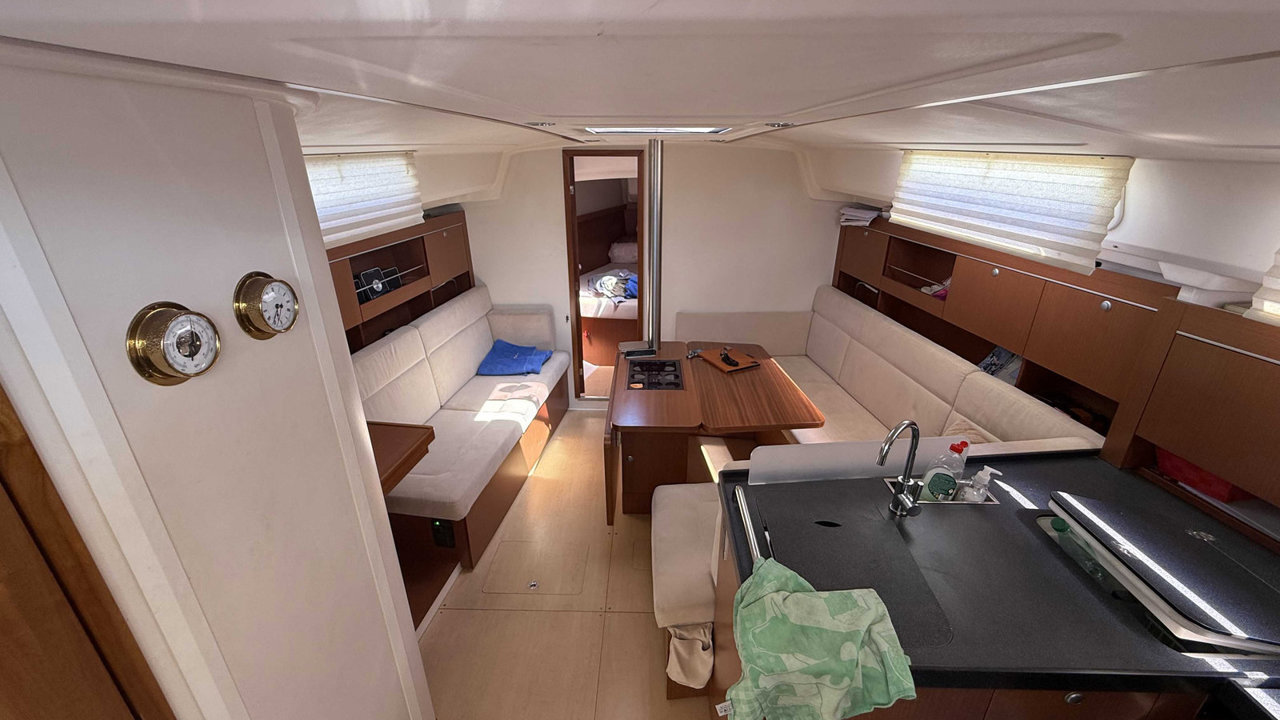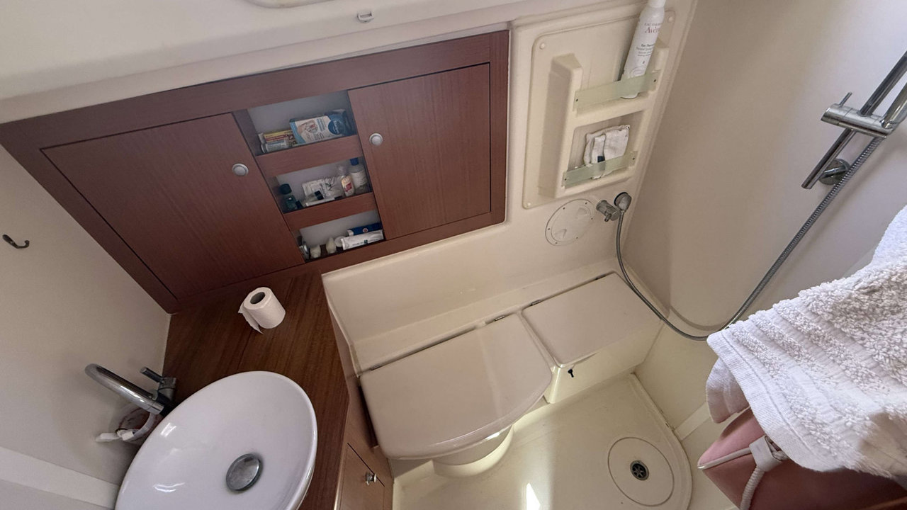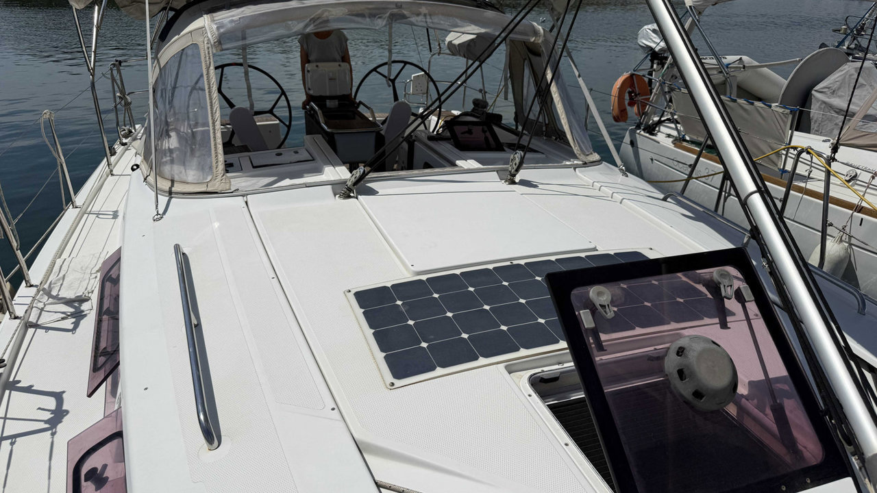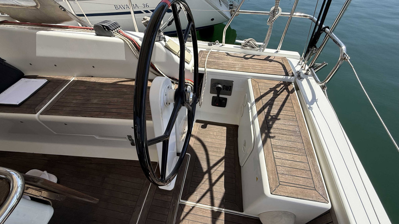propulseur d'étravebiminicapote descenteplateforme de bainéchelle de baindouchette cockpittable cockpitéclairage cockpitbarre à roueancreguindeau électriquegennakergrand voilegrand voile semi lattéechariot grand voilerail grand voilerenvoi de drissewinchmanivelle de winchbout dehorslazy baglazy jackcapacité eau froidepompe de calecouleurmatérieau constructionantifoulingbarbecueheures bateauannexemoteur annexetable à cartesréfrigérateurcuisinièrefourchauffe-eauradio-cdWC marinspilote autocompasloch speedogirouetteantenneVHFGPSsondeurréflecteur radarchargeuralternateurbatteriesbatteries de servicecircuit 220Vcircuit 12Vpanneau solaireprise de quai
