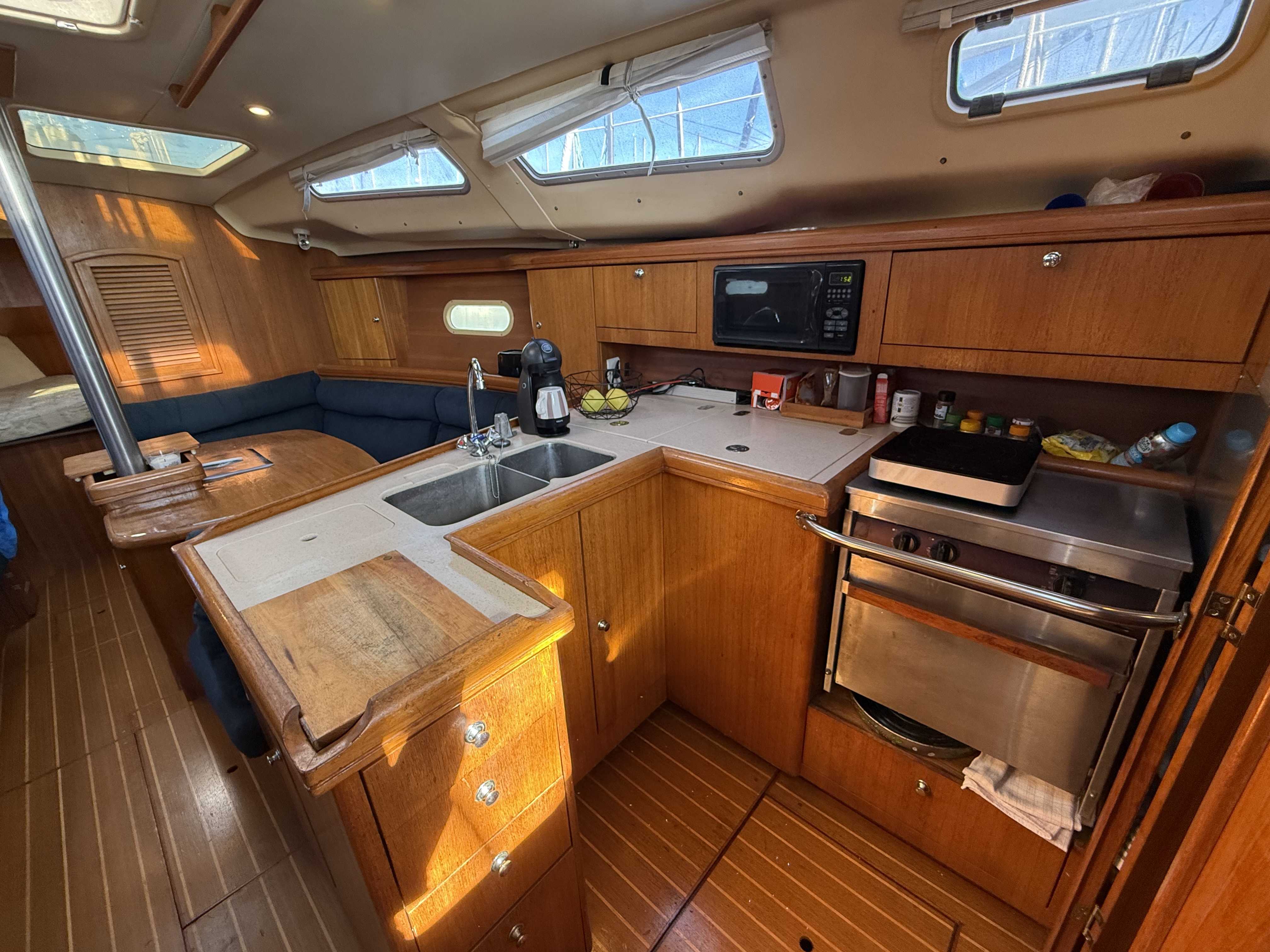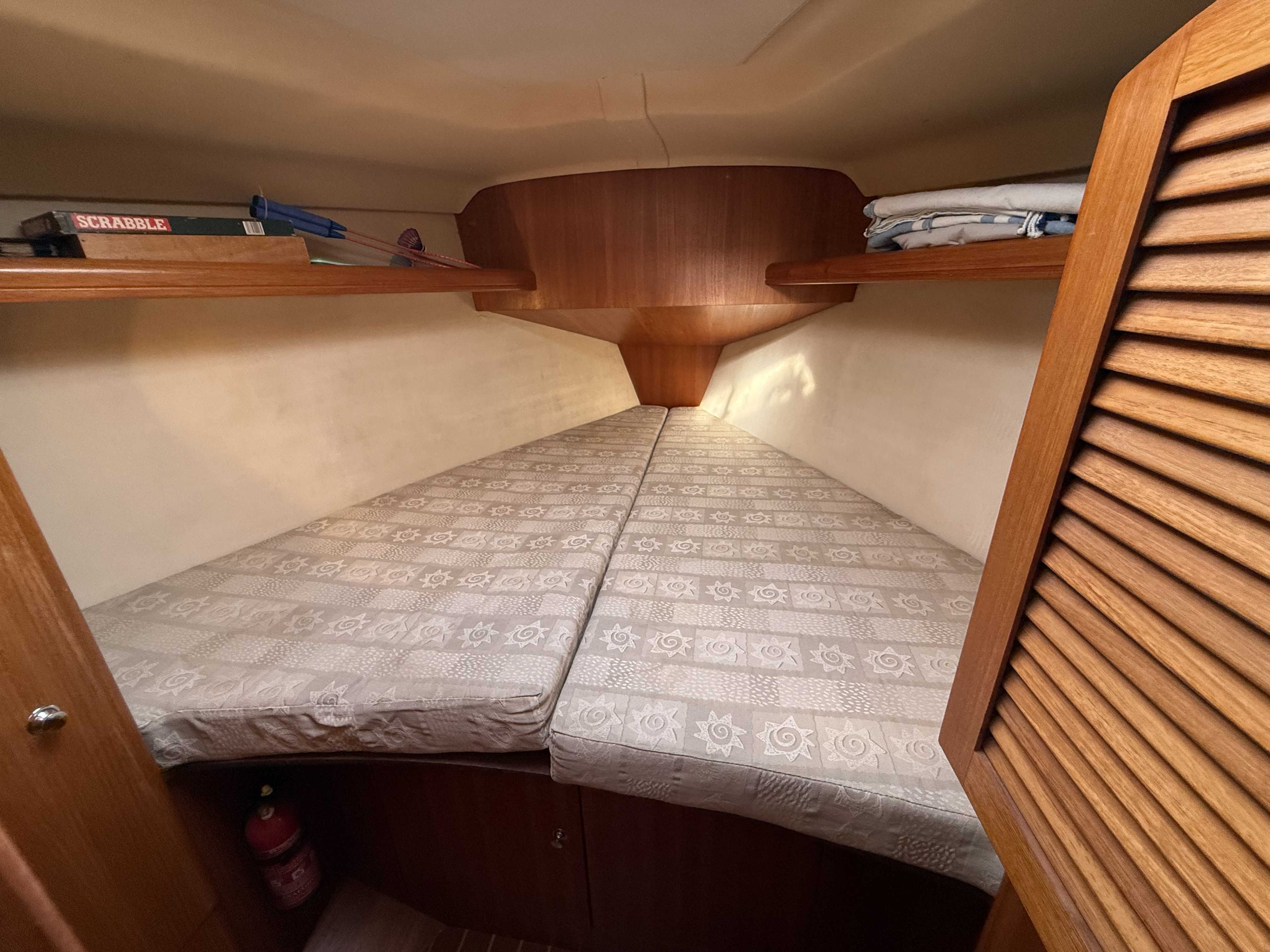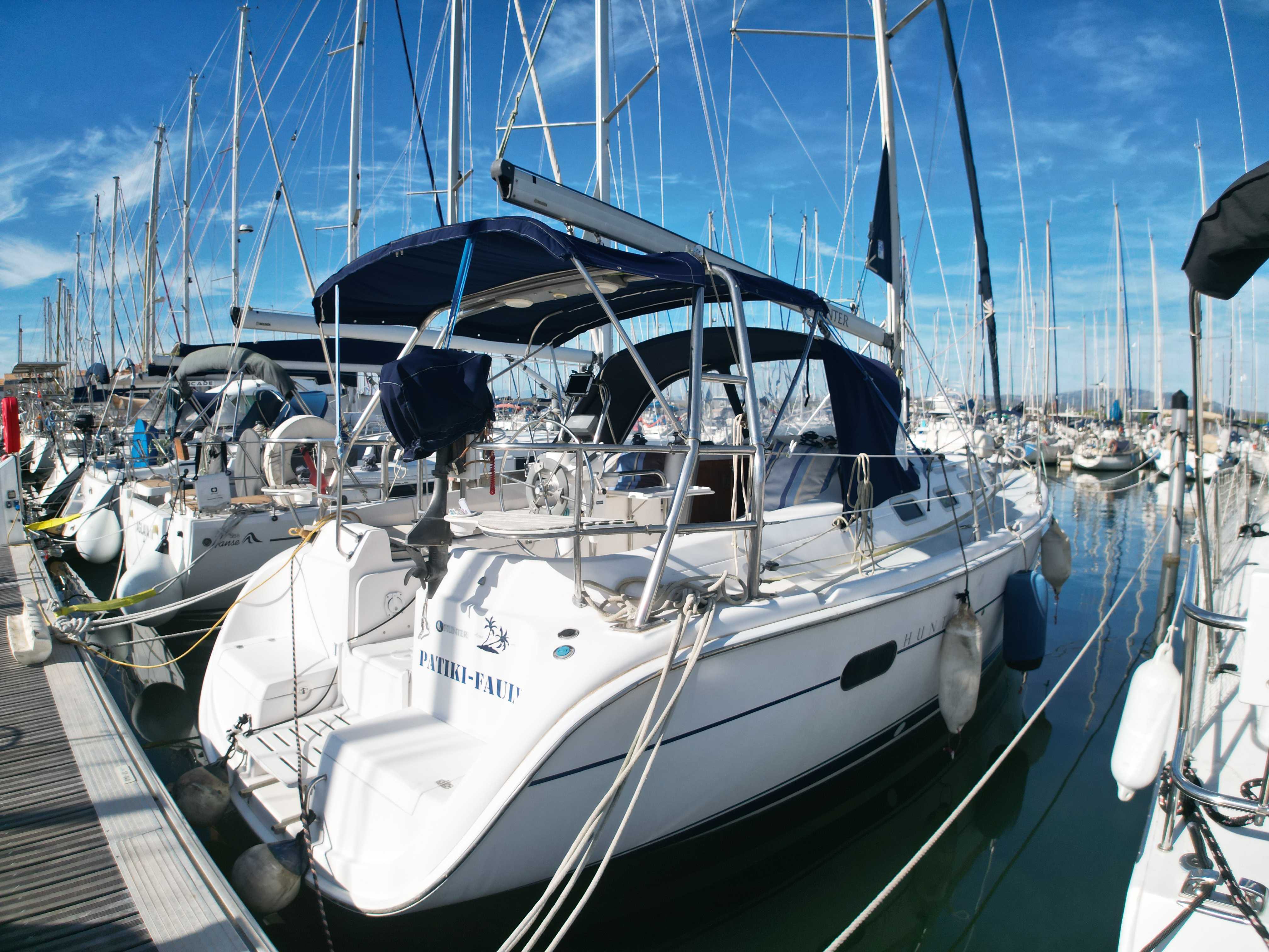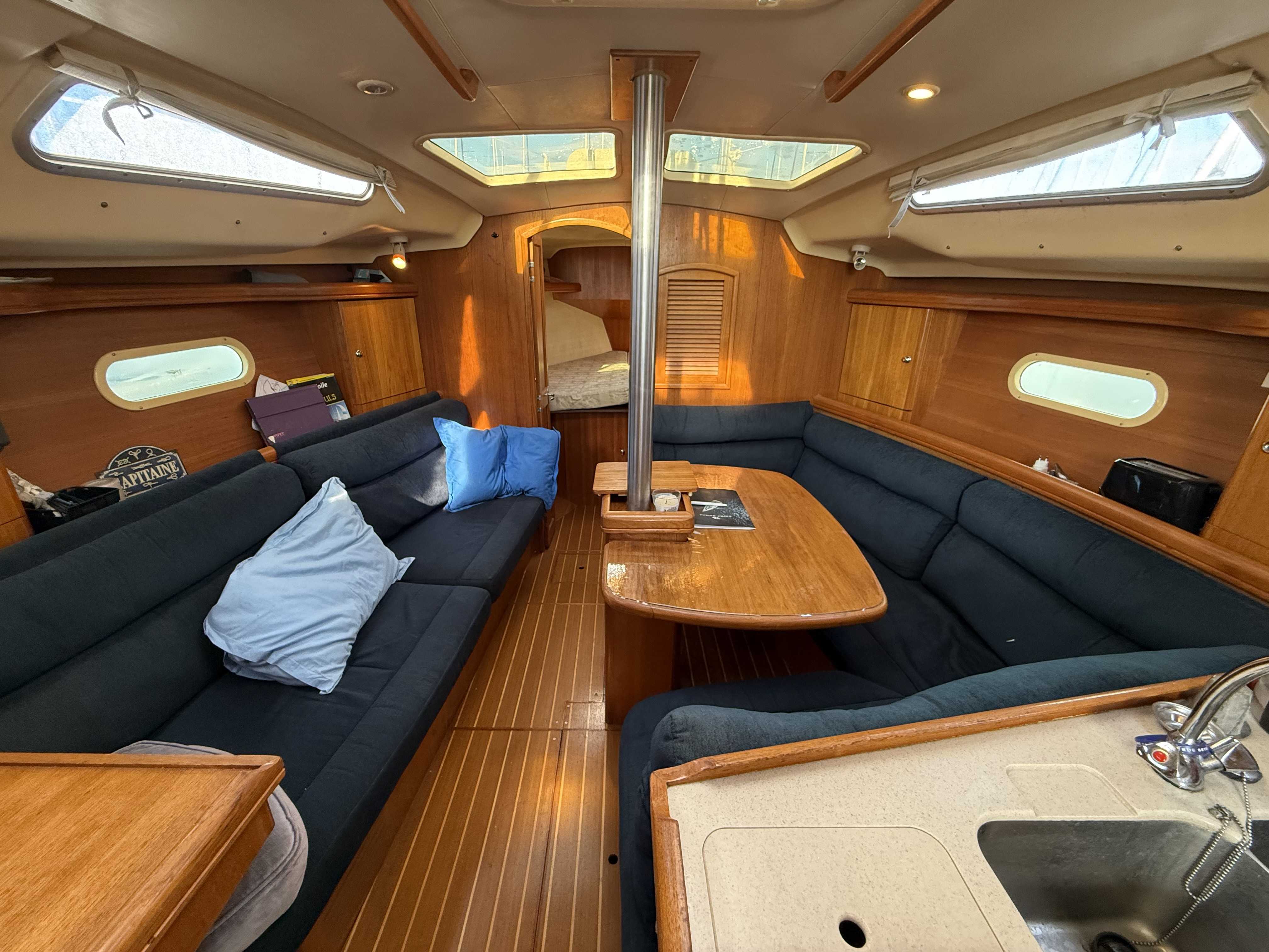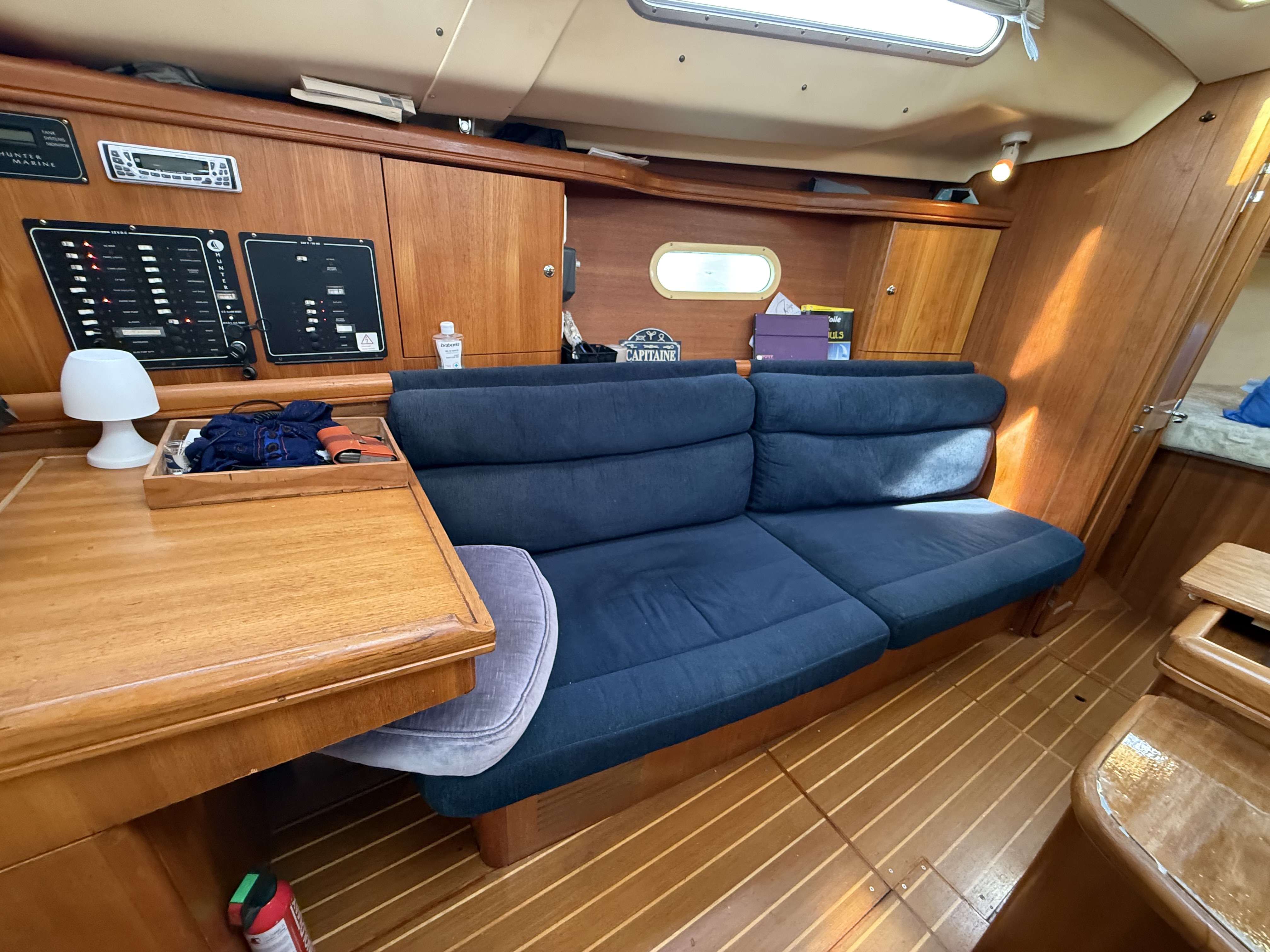 ??? Hunter 356 de 2003 – Confort, performance et fiabilité signés Hunter Marine Découvrez ce superbe voilier Hunter 356 de 2003, un modèle réputé pour son confort en croisière, sa facilité de manœuvre et la qualité de fabrication américaine du chantier Hunter Marine. Avec ses 10,82 mètres de long et son large cockpit sécurisé, ce voilier offre une expérience de navigation à la fois agréable, performante et conviviale, idéale pour les programmes côtiers ou hauturiers. Le Hunter 356 séduit par son plan de pont ergonomique, son gréement B&R sans pataras et son voilier très équilibré sous voile, assurant un pilotage fluide même en équipage réduit. Sa grand-voile sur enrouleur et son génois sur enrouleur facilitent toutes les manœuvres, tandis que son moteur Yanmar diesel 27 CV garantit fiabilité et consommation maîtrisée. À l’intérieur, le Hunter 356 offre un aménagement spacieux et lumineux, typique du design américain : une grande cabine arrière, une cabine avant confortable, un carré convivial et une cuisine en L parfaitement équipée. Les finitions en bois de teck clair et les nombreux rangements en font un voilier aussi agréable à vivre qu’à naviguer. Prêt à naviguer Entretien à jour Place de port possibleMarque Hunter